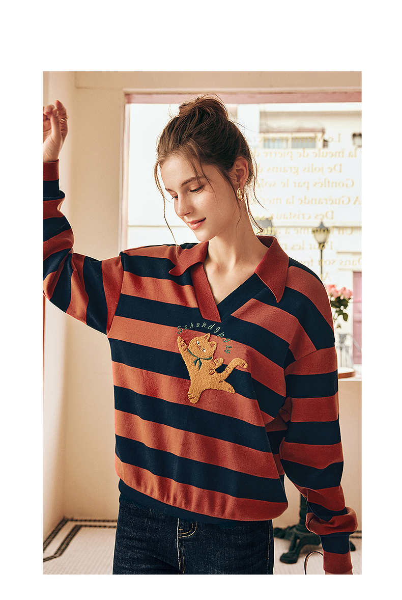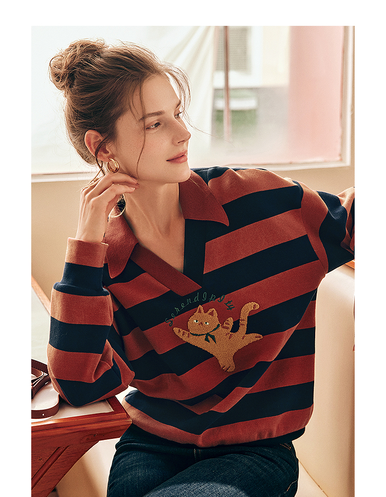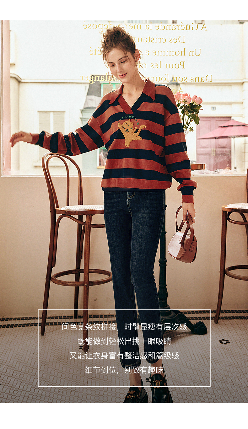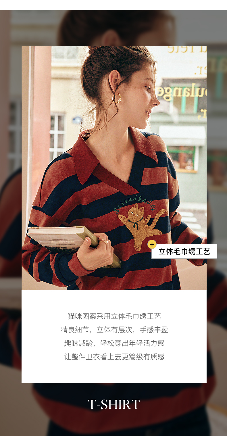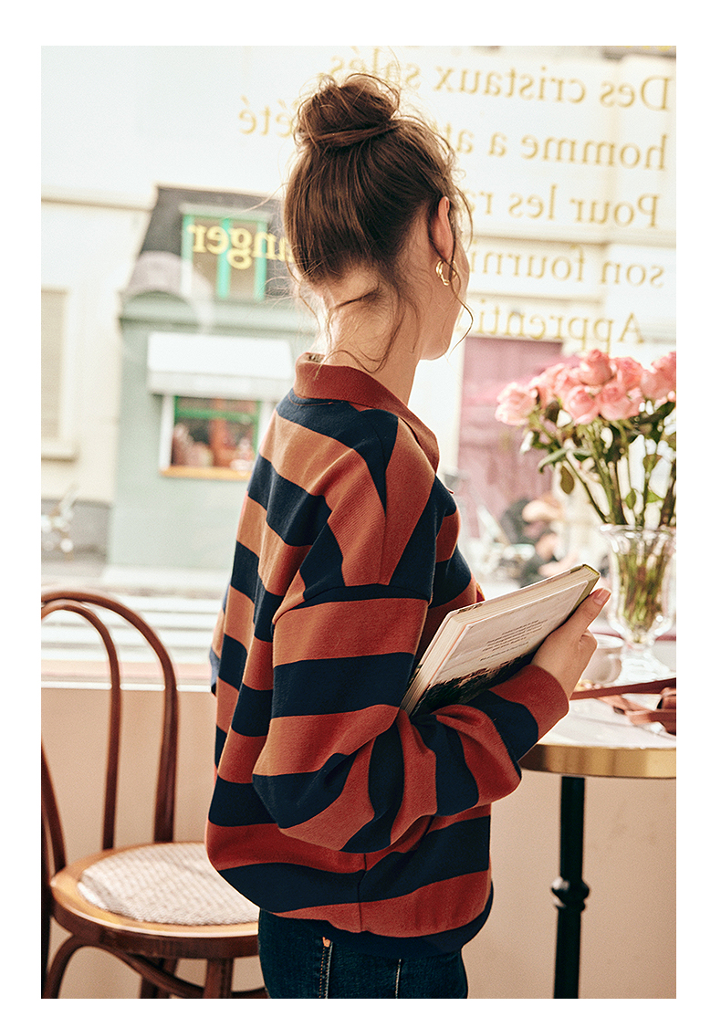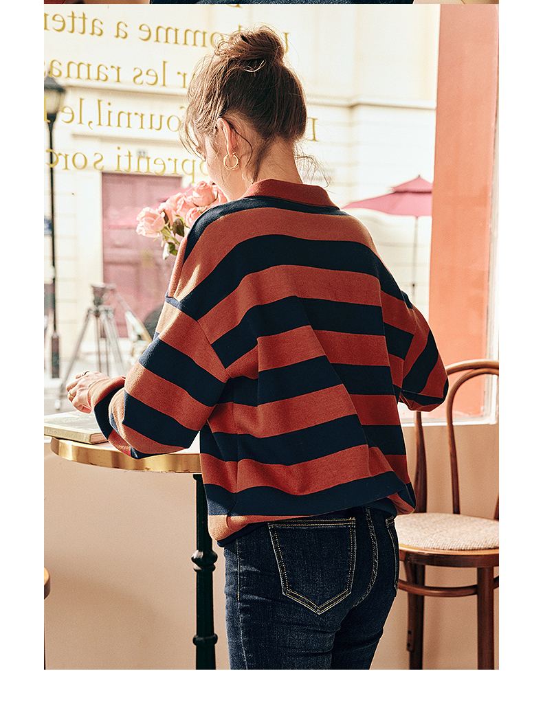 OLrain欧芮儿法式条纹卫衣女秋冬2022新款宽松慵懒风复古针织上衣