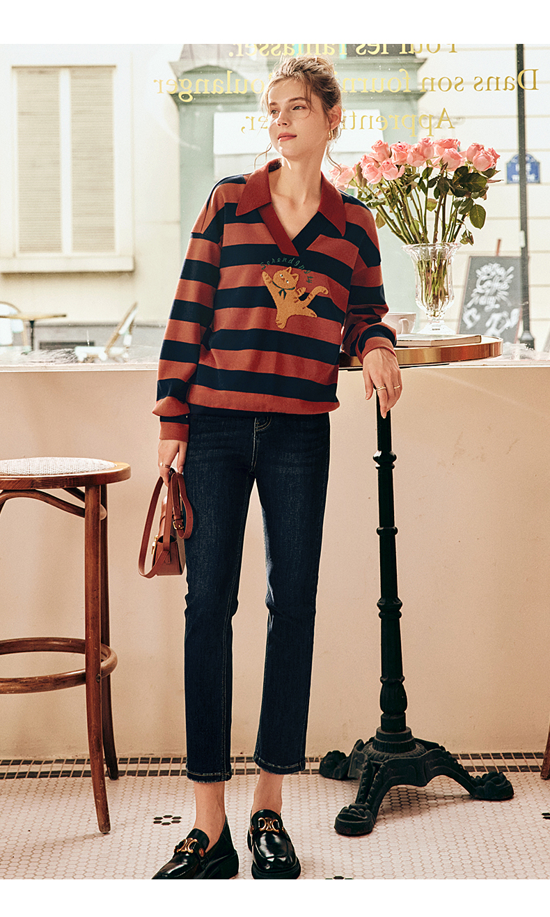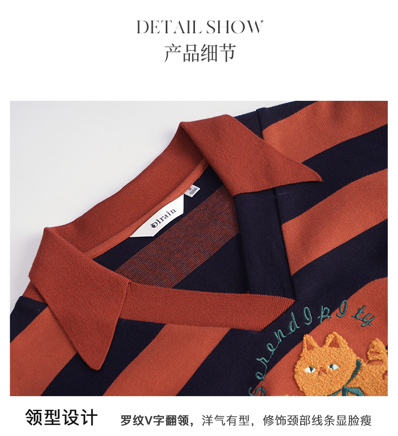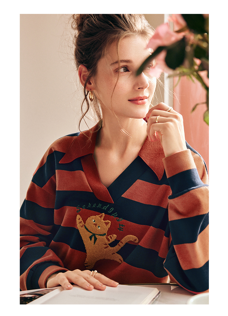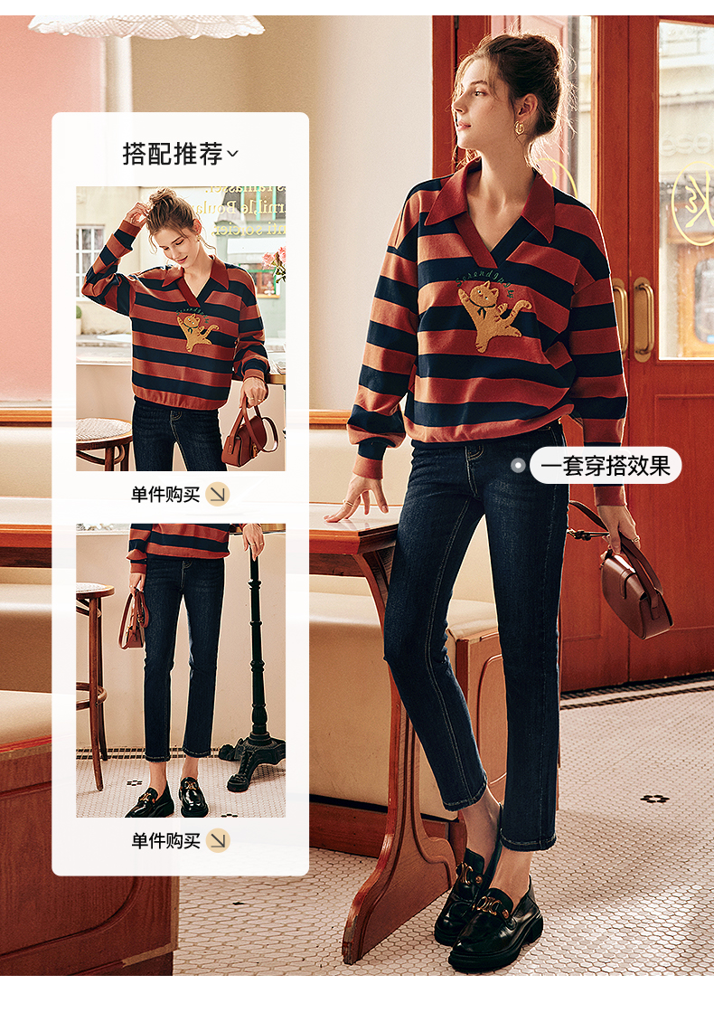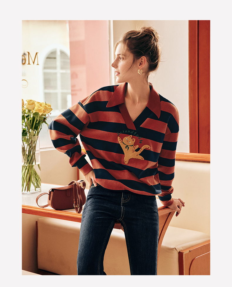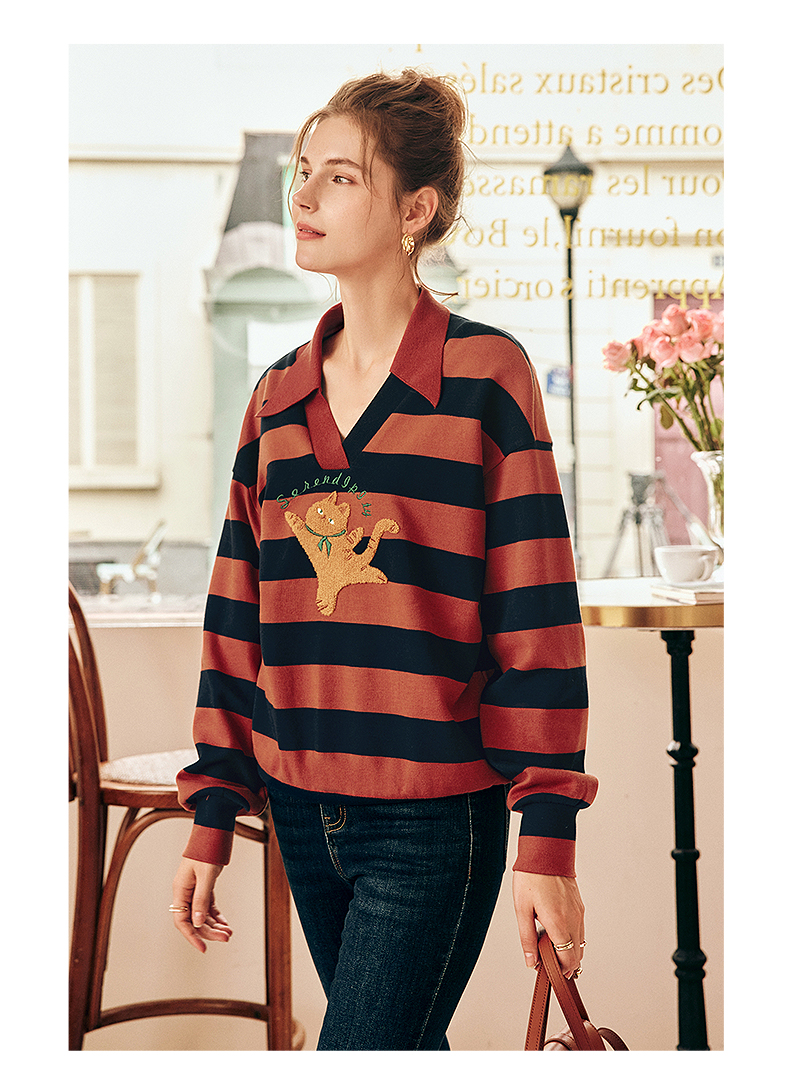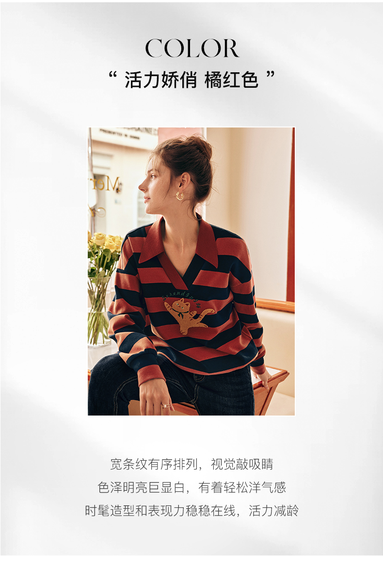 OLrain欧芮儿法式条纹卫衣女秋冬2022新款宽松慵懒风复古针织上衣