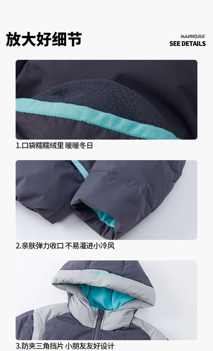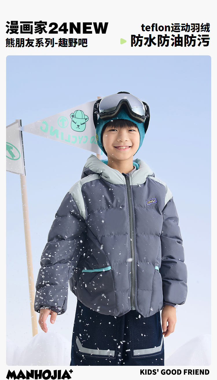 漫画家童装24年冬新款轻户外运动型teflon三防足球格易打理羽绒服