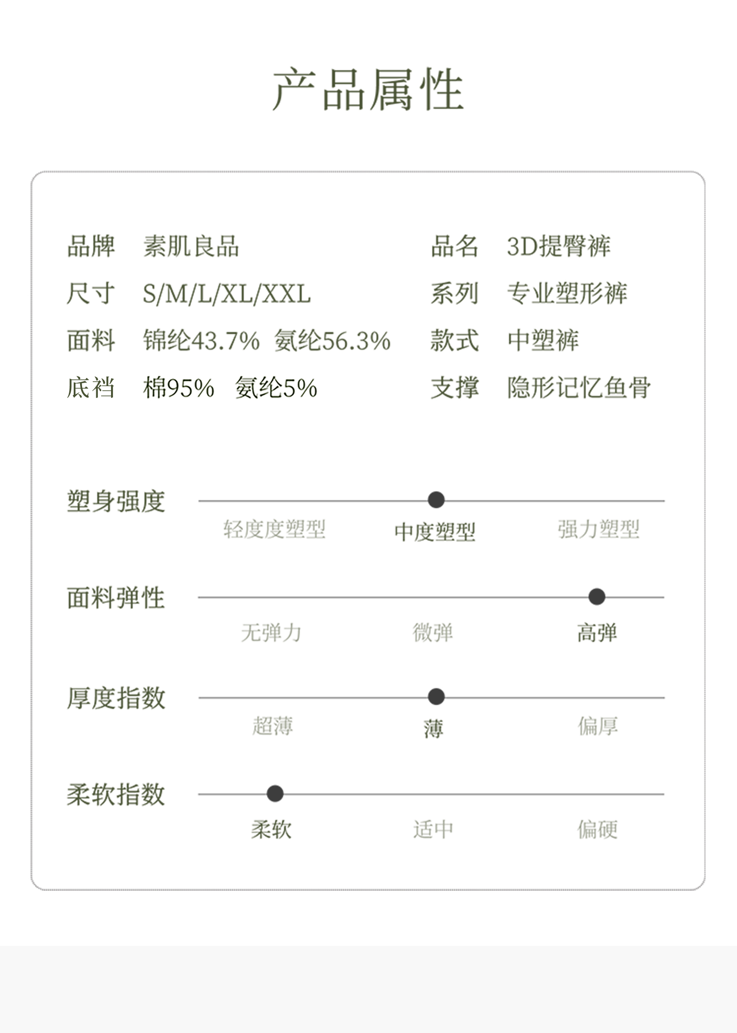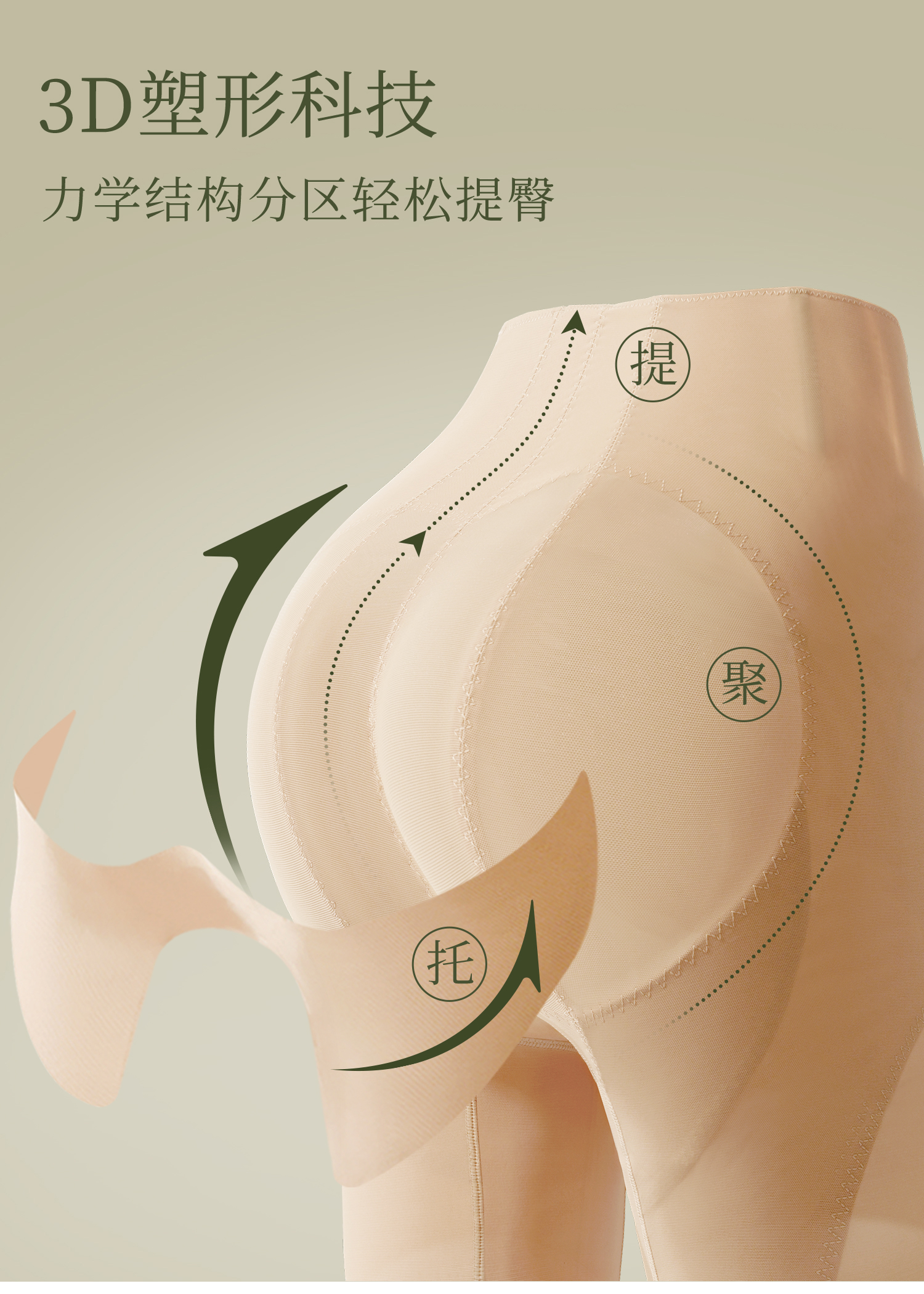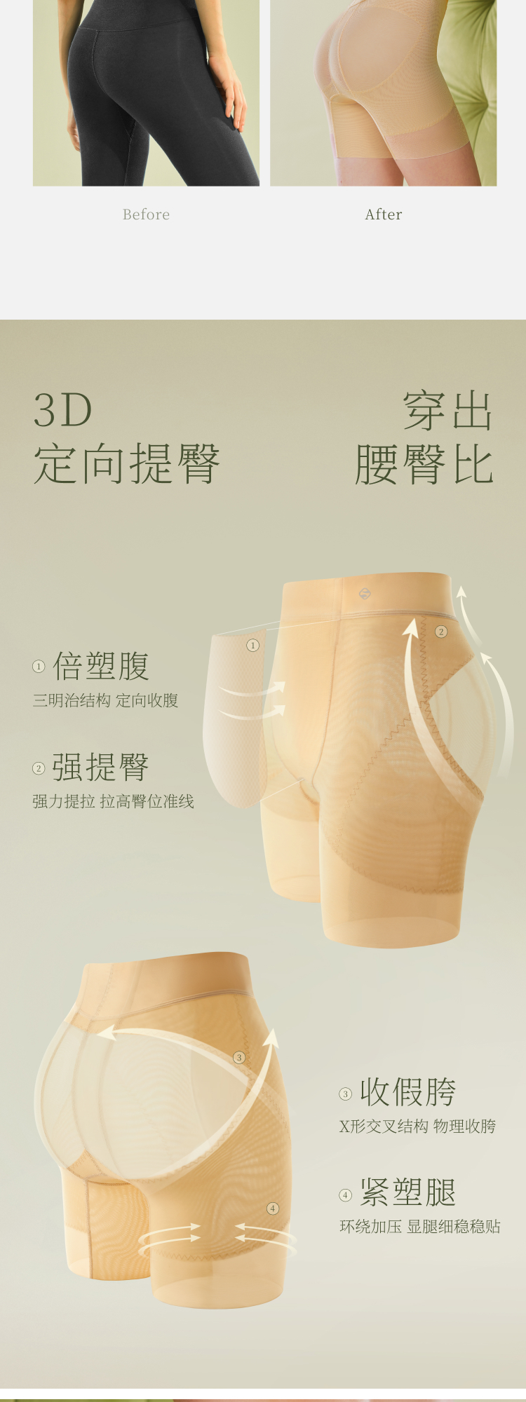 素肌良品3D悬浮收腹提臀裤女收小肚子束腰翘臀塑身裤产后塑形-N163-FX