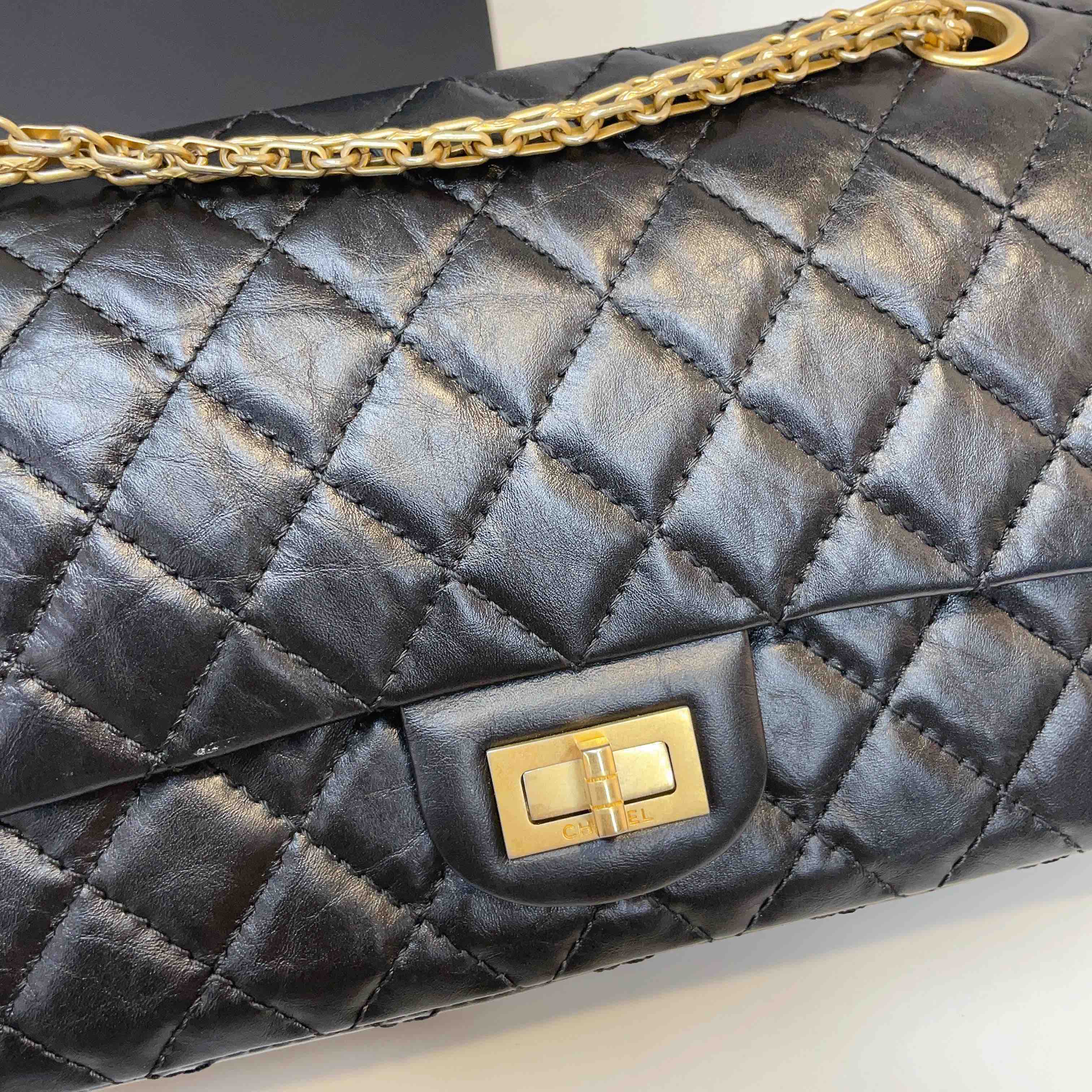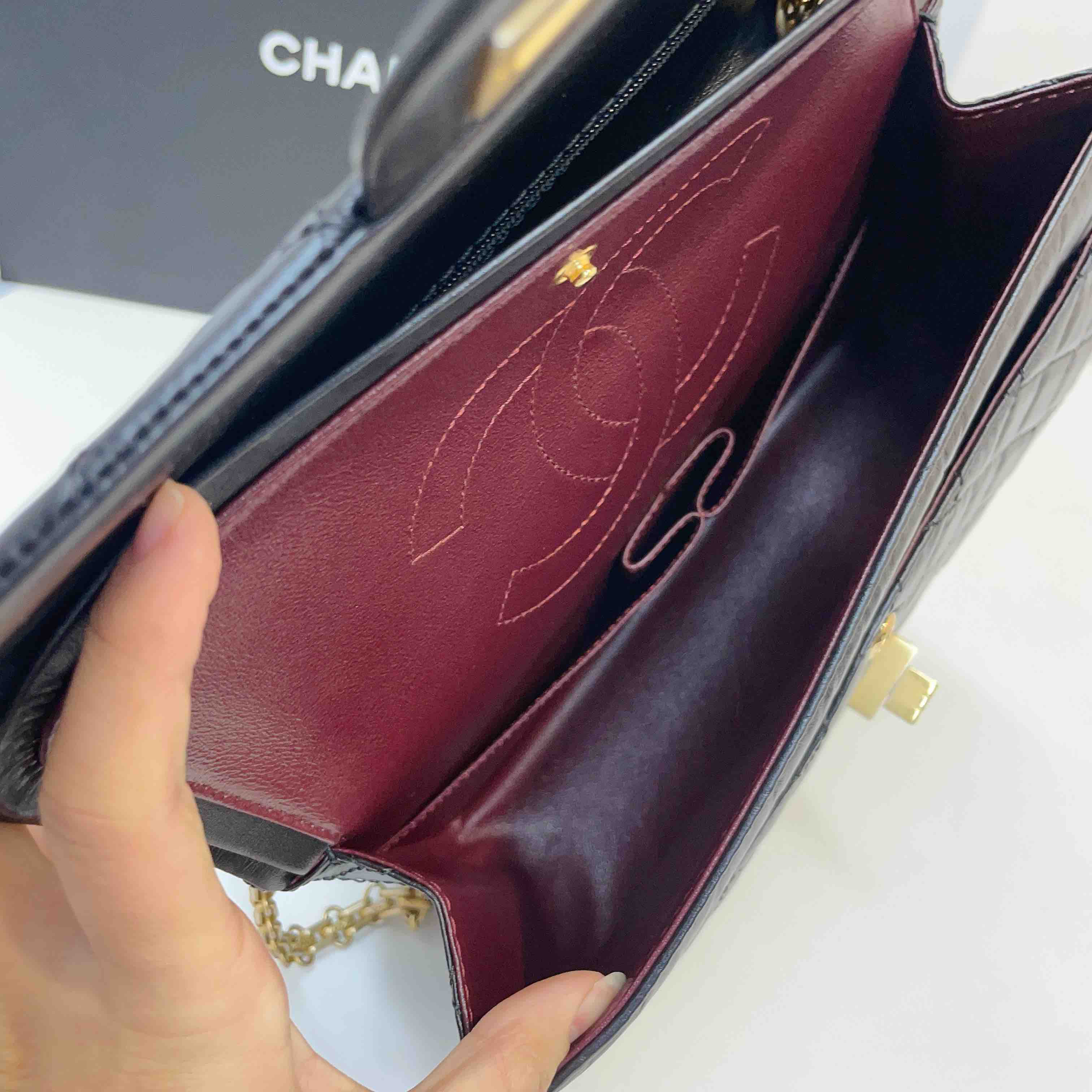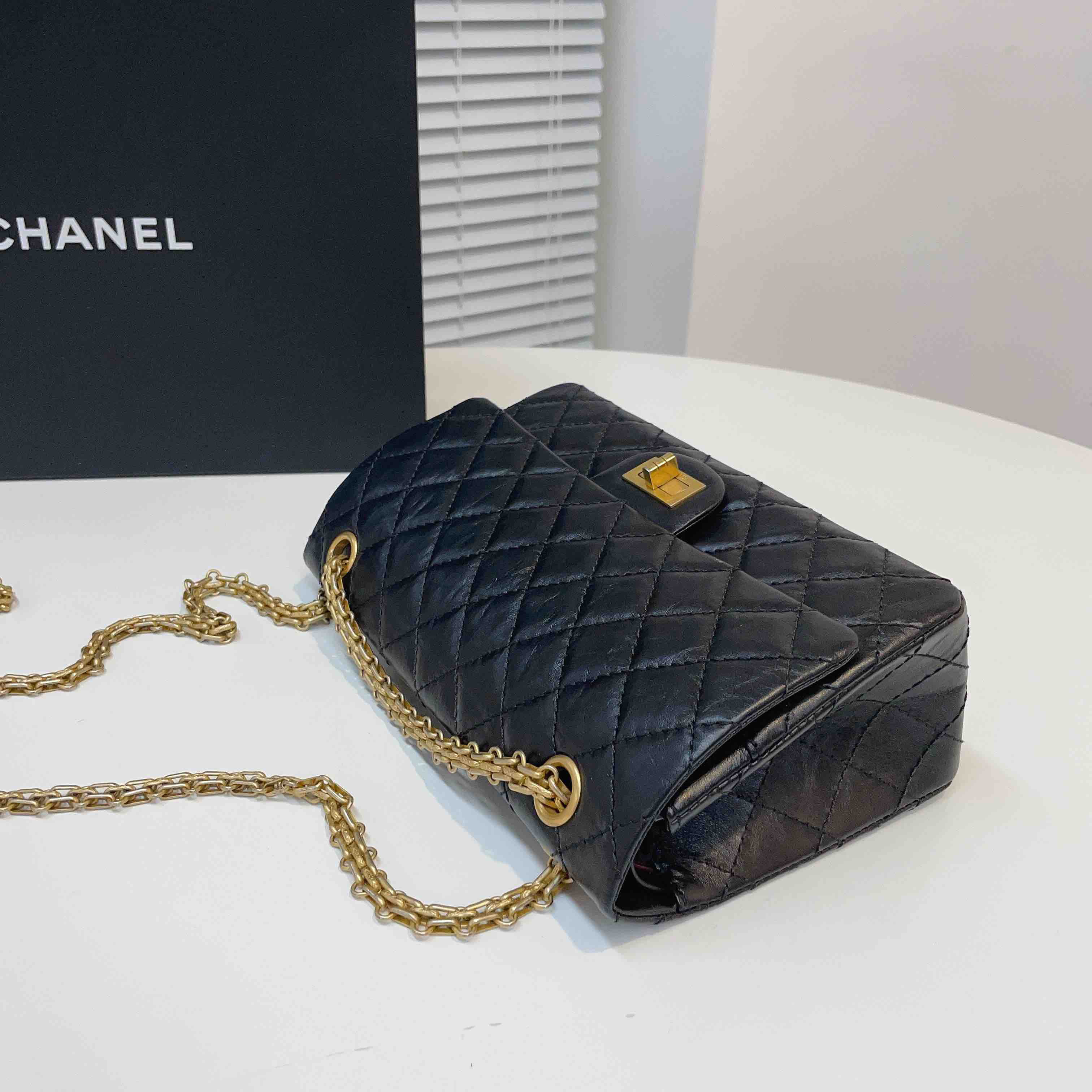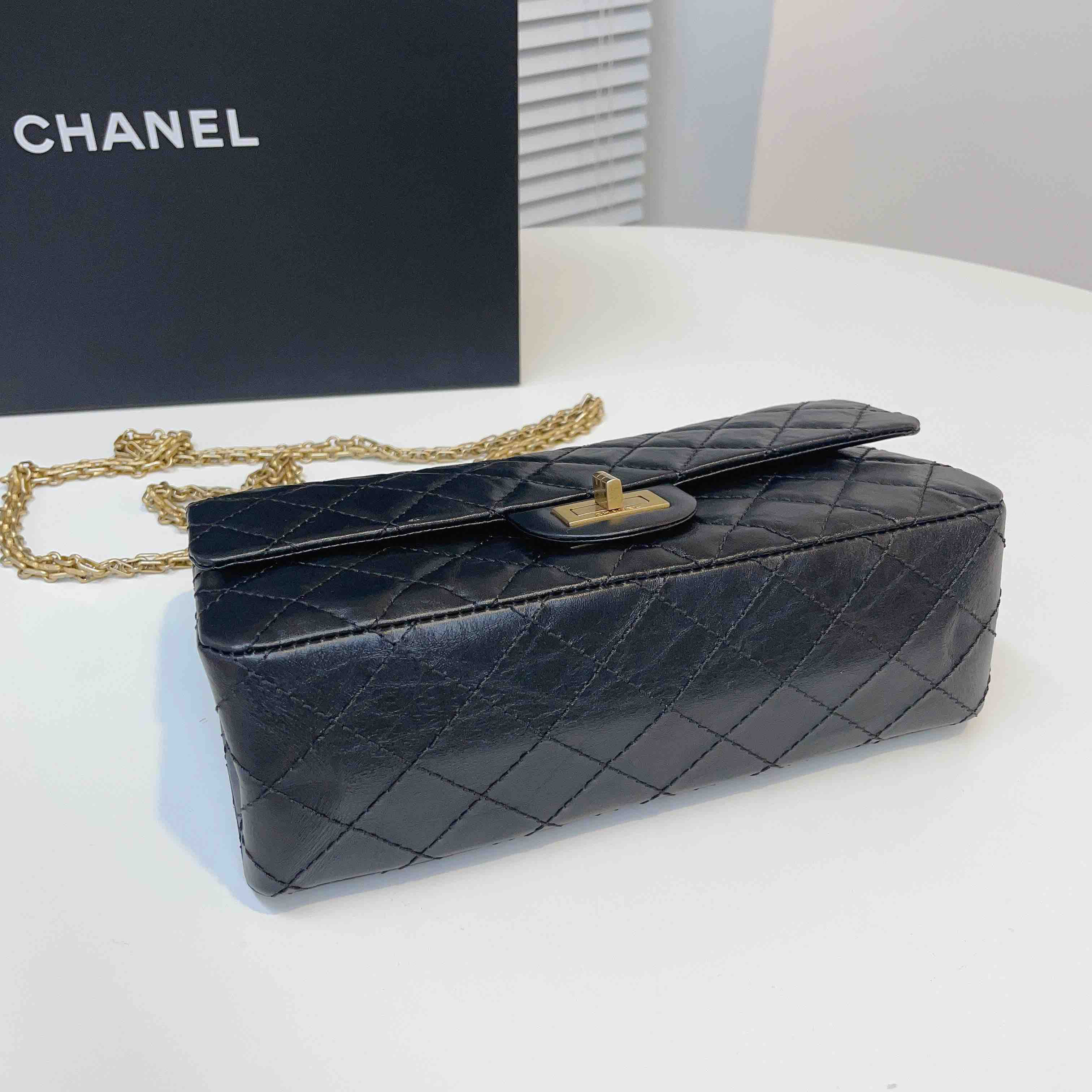 正品二手 Chanel 2.55 油蜡牛皮 黑金 小号 链条包 😎98新 24×15 镭射26开 大全套配件:卡、票、2本说明书、防尘袋、盒子。链条有轻微氧化,包身完好。