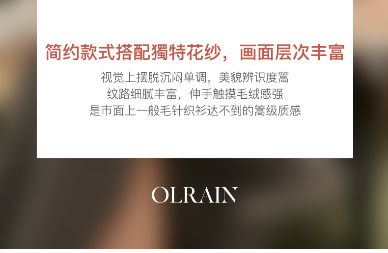 - “精致”是欧芮儿olrain品牌文化的核心,欧芮儿认为,精致的女人,不但要外在动人,更要内在迷人,内外兼修,有魅力、有气质、有内涵,自信而不自傲,优雅而不矫揉,自有万种风情而不轻浮,更不故作矜持。