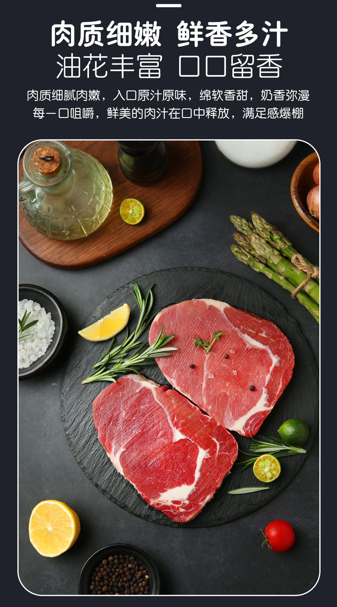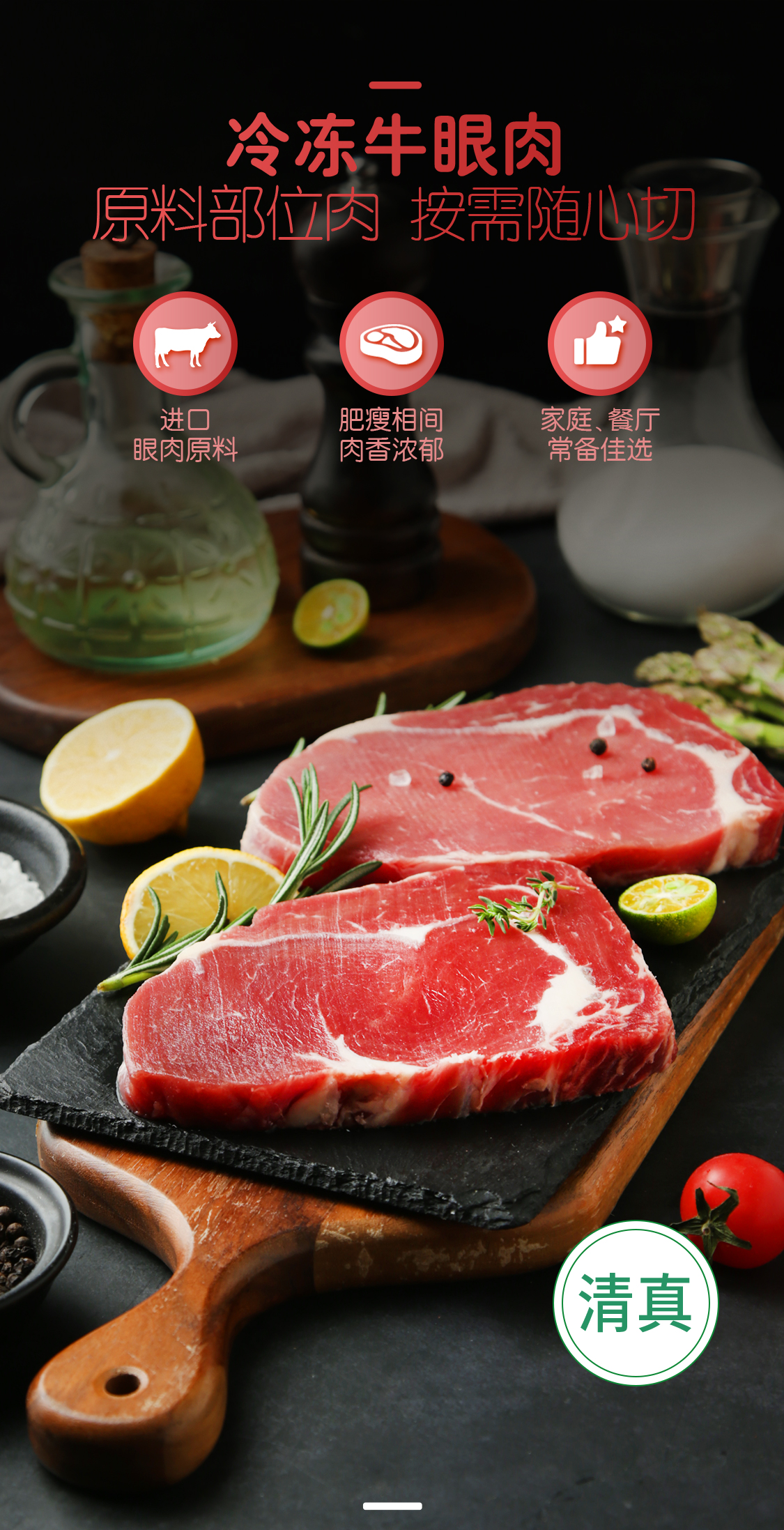 海企肉食原切进口眼肉牛排1000g(5片)