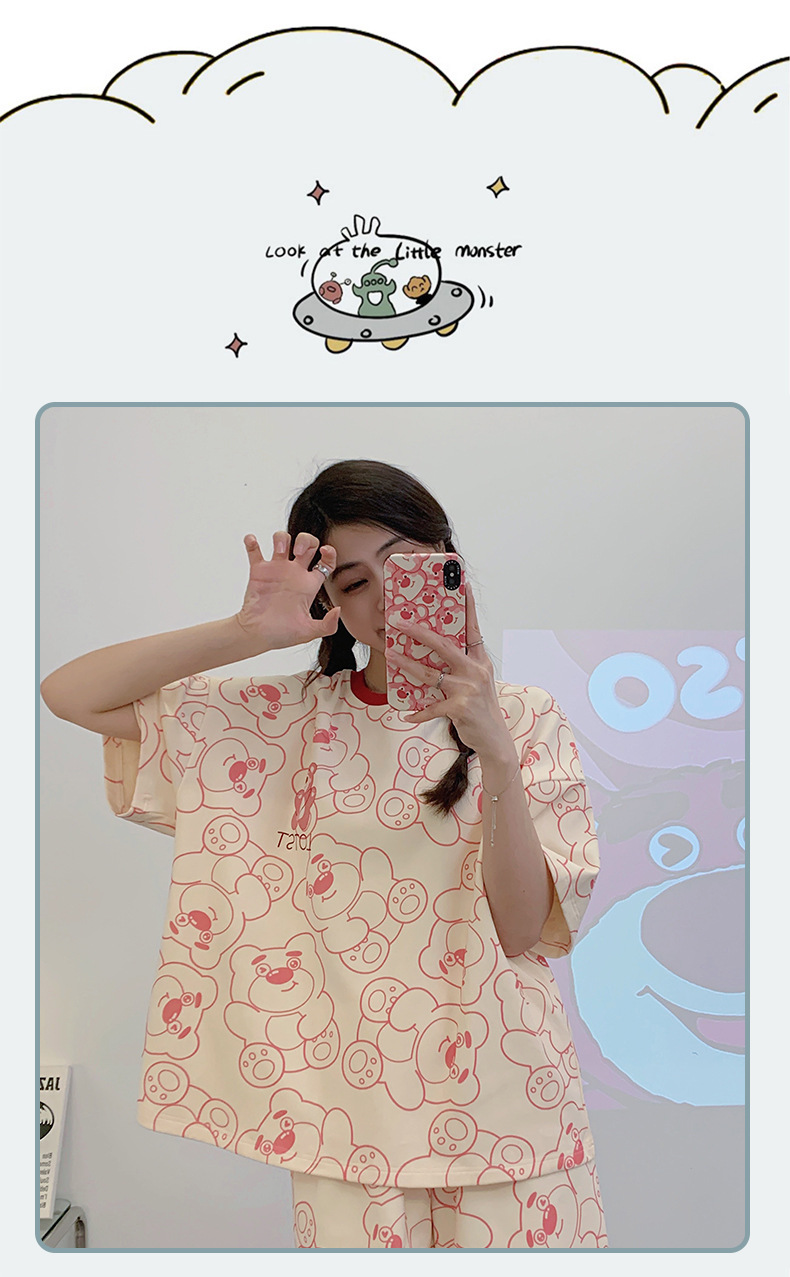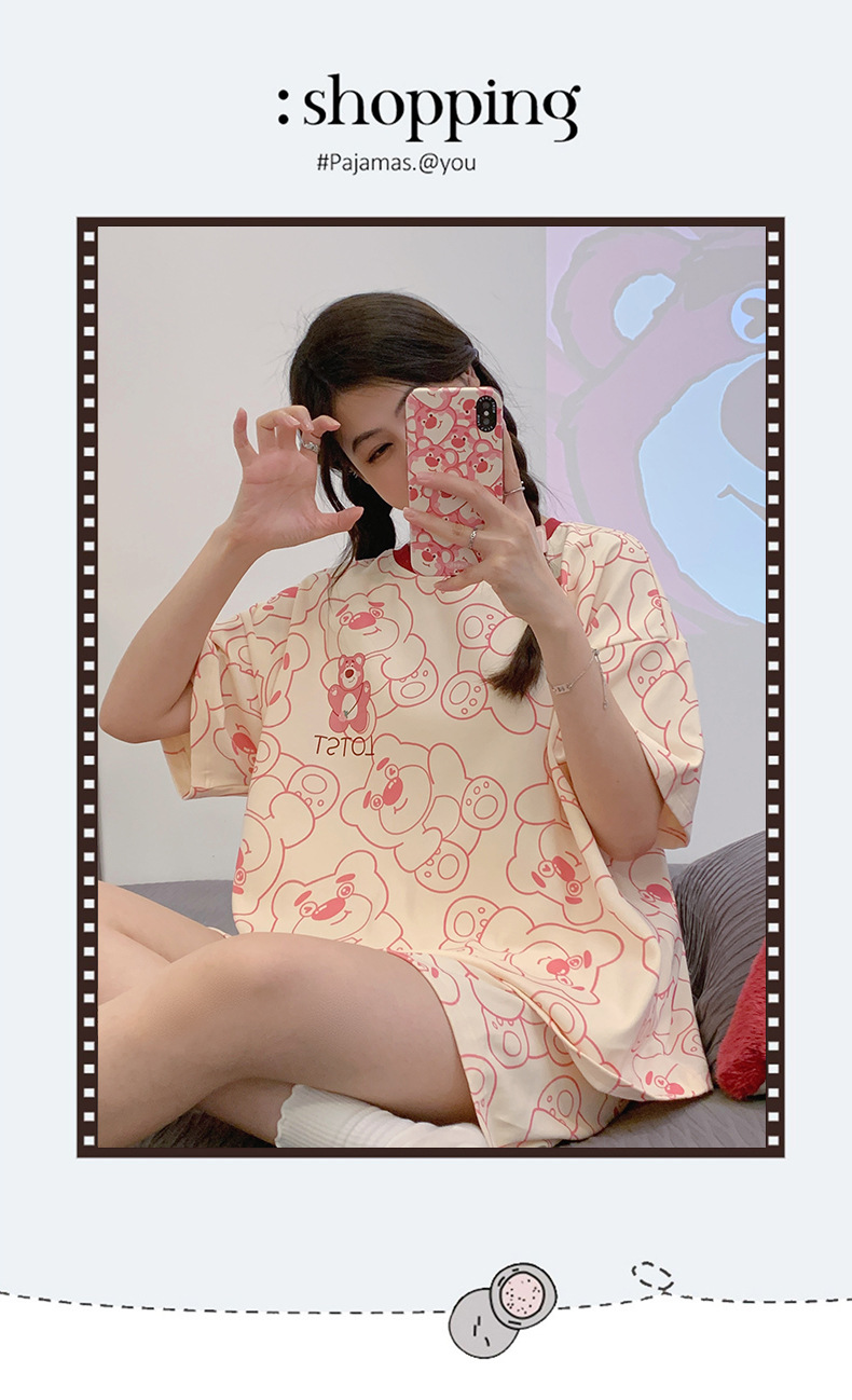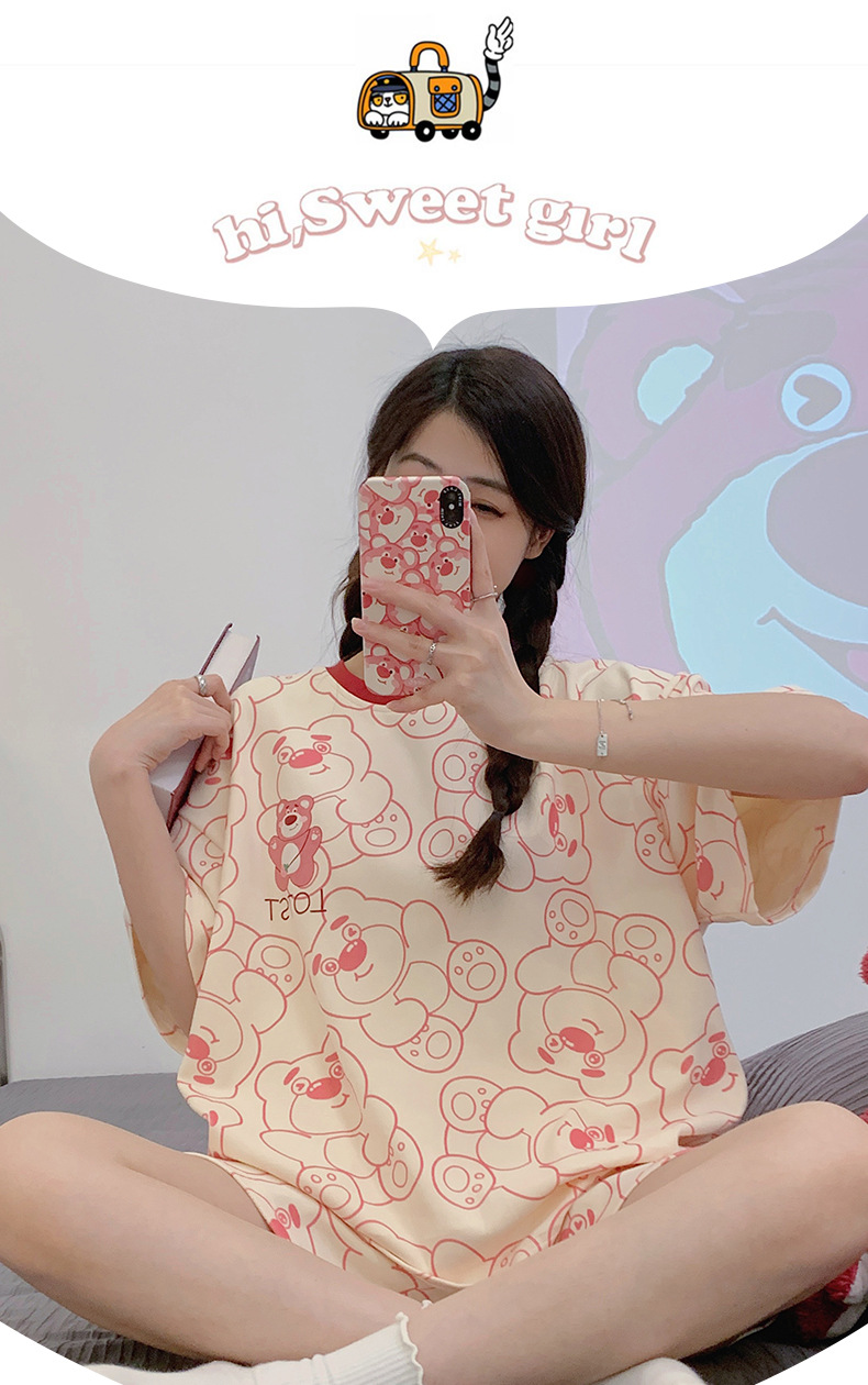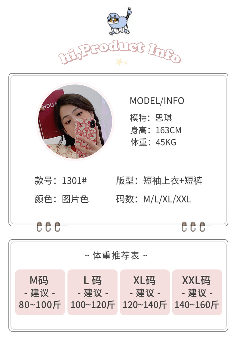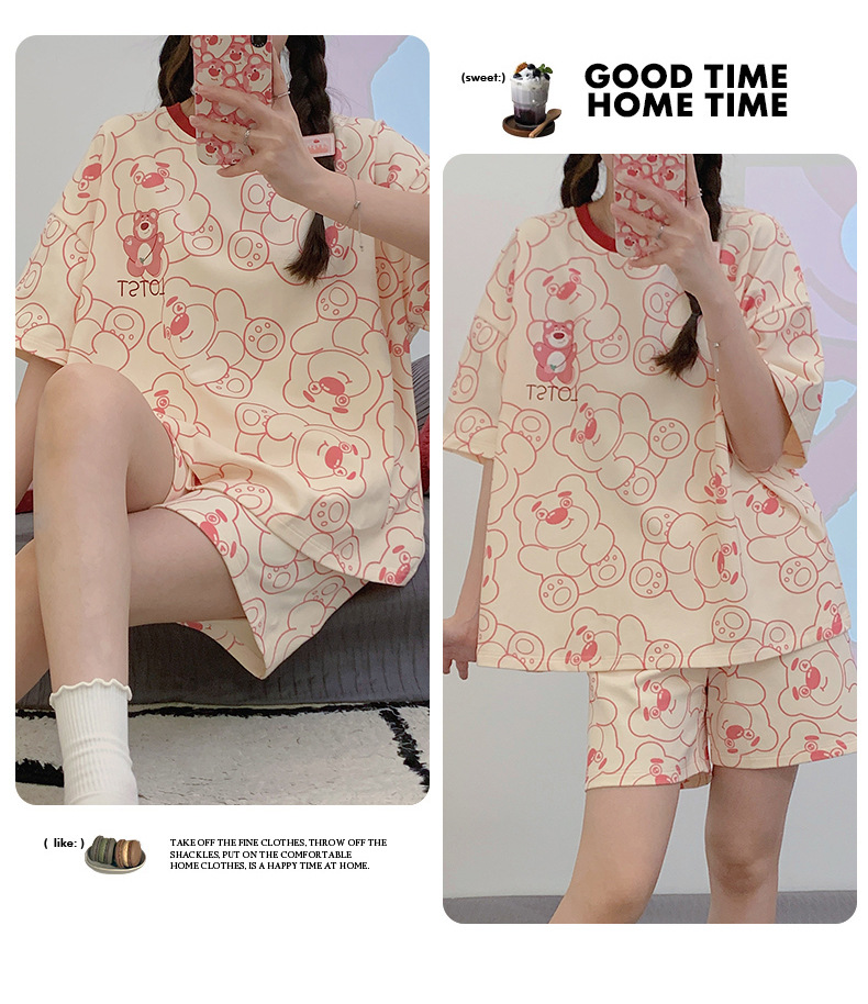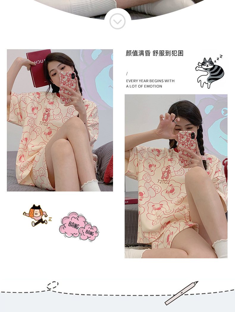 「数款可选!两件套」淳可儿新款睡衣女夏季可爱短袖短裤套头可外穿夏天套装内衣家居服