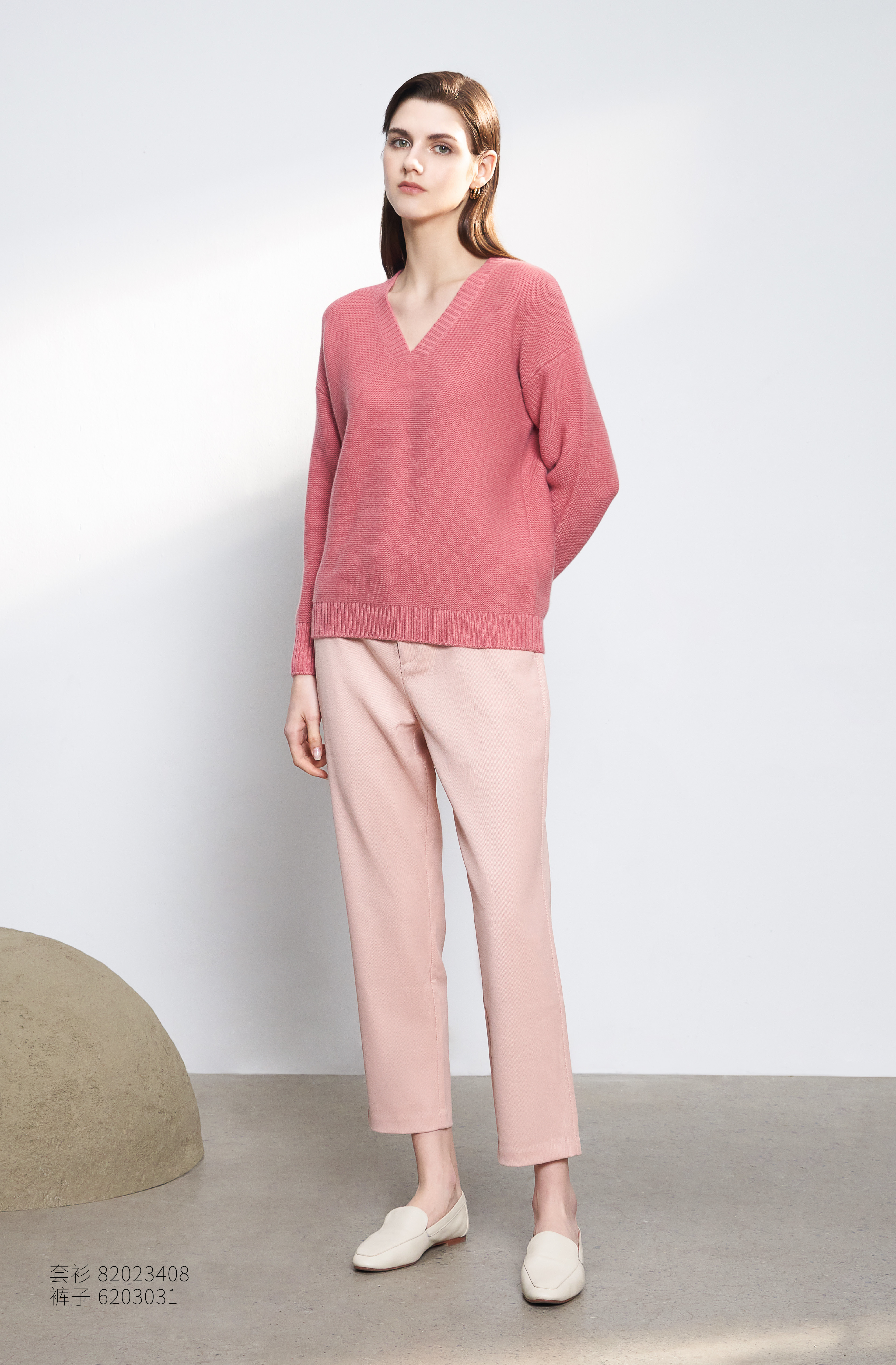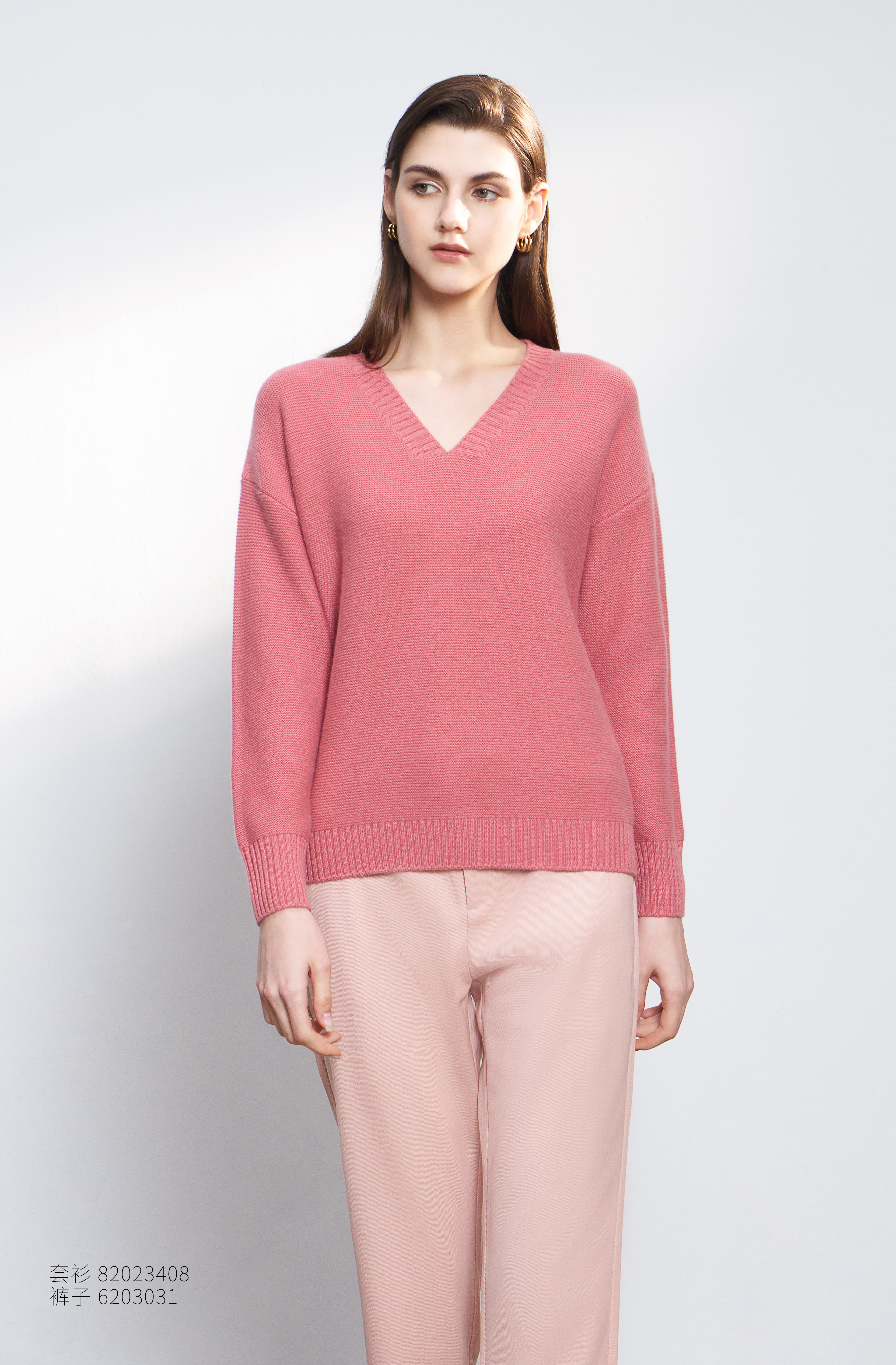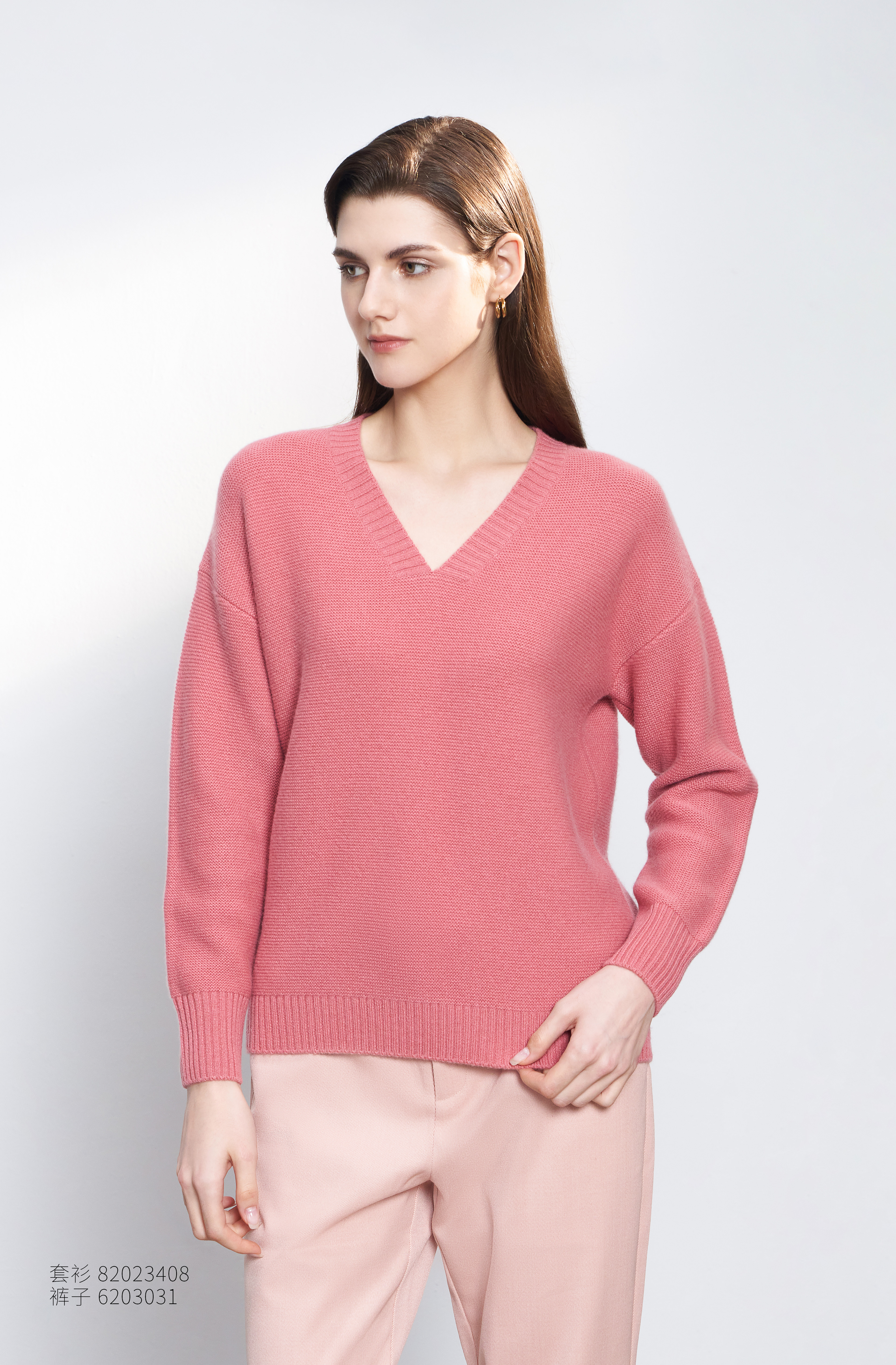 【100%山羊绒衫】23年秋冬新品女士V领山羊绒套衫时尚落肩袖保暖毛衣