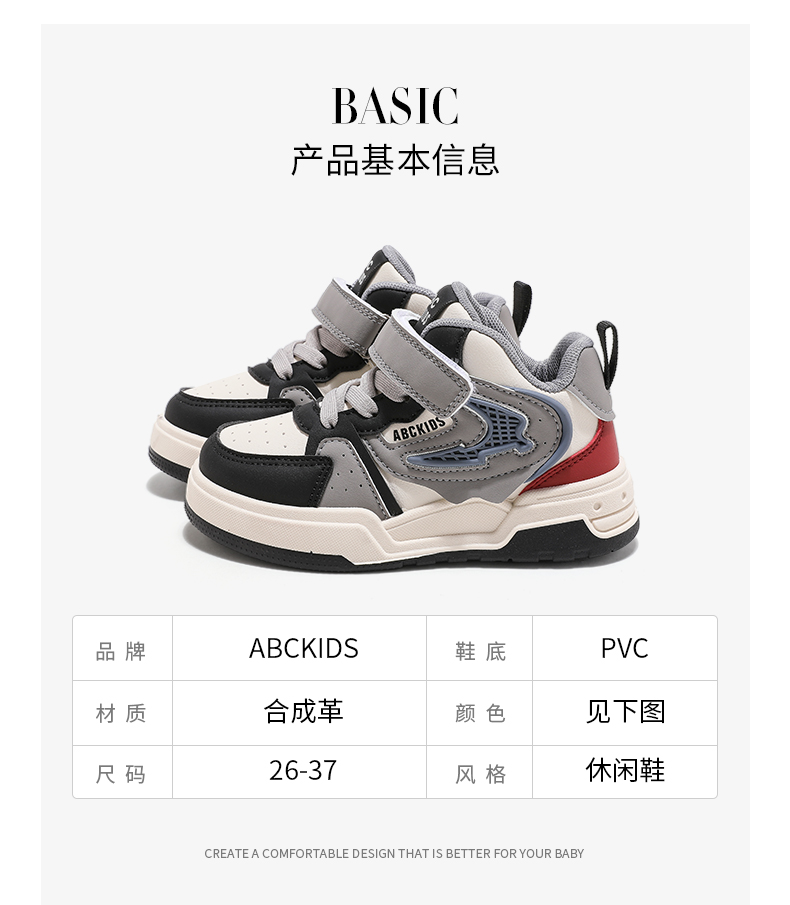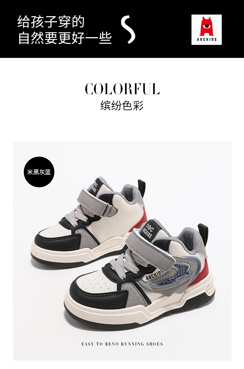 ABCkids儿童高帮板鞋2024秋季新款休闲鞋青少年学生运动鞋男童鞋