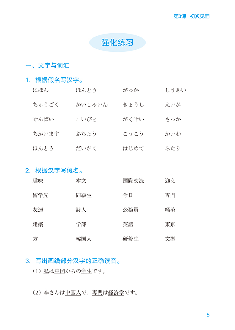 力题原文。其中,每课课后练习的练习1和练习2为单纯的单词替换练习,故没有参考答案,只给出练习3的参考答