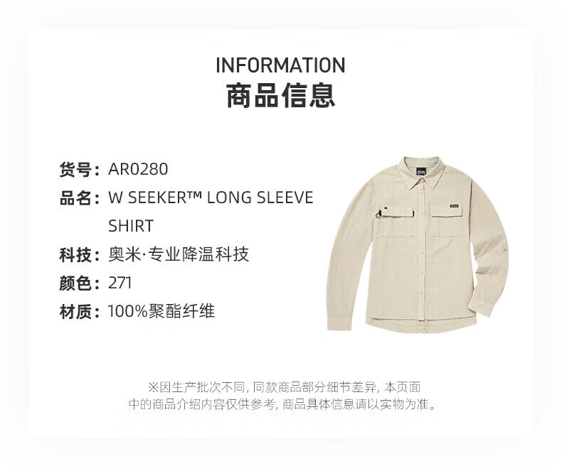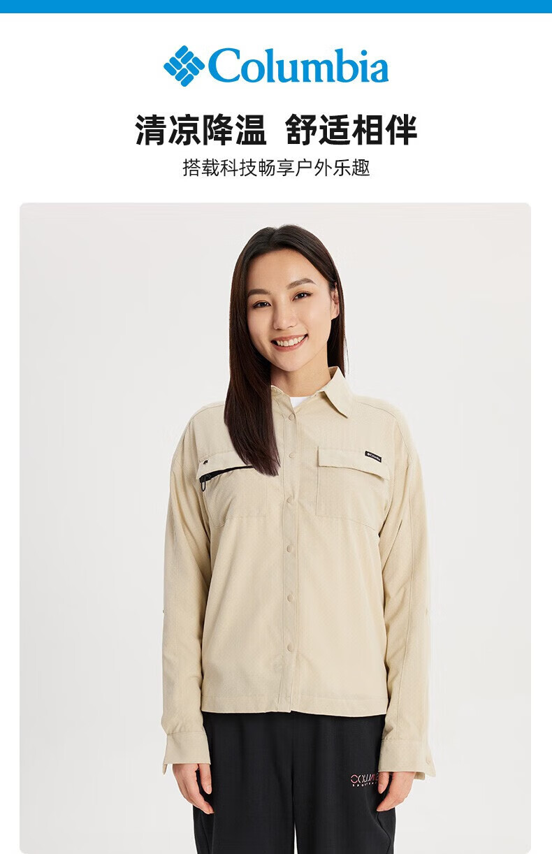 Columbia哥伦比亚衬衫女户外降温凉爽运动休闲通勤长袖开衫AR0280271