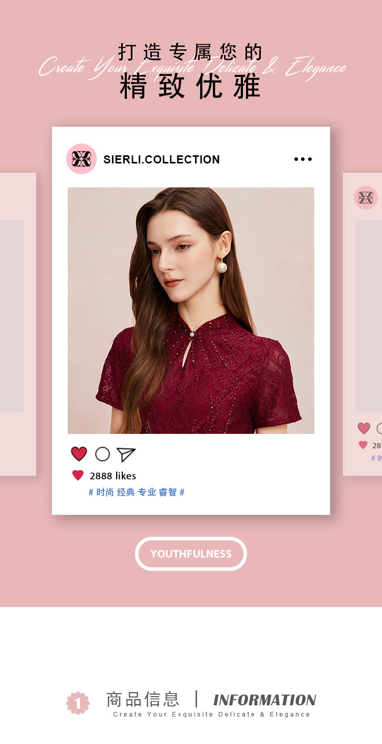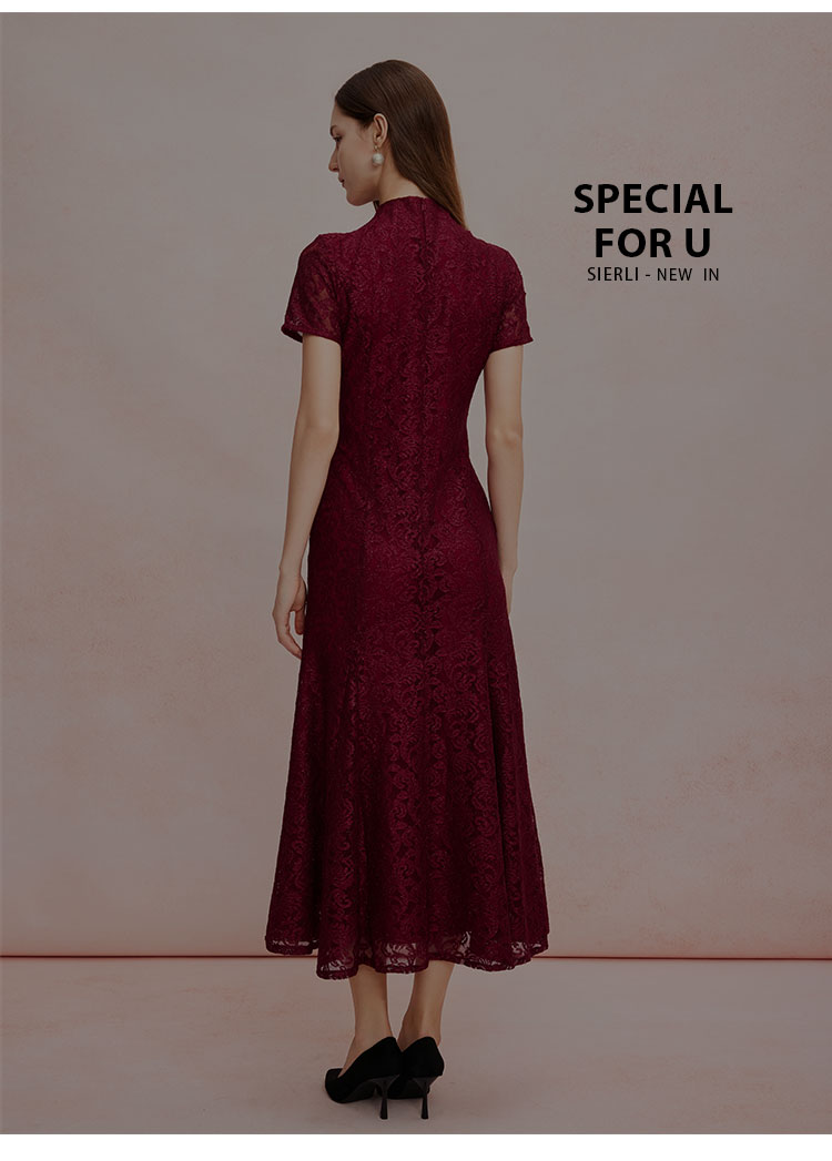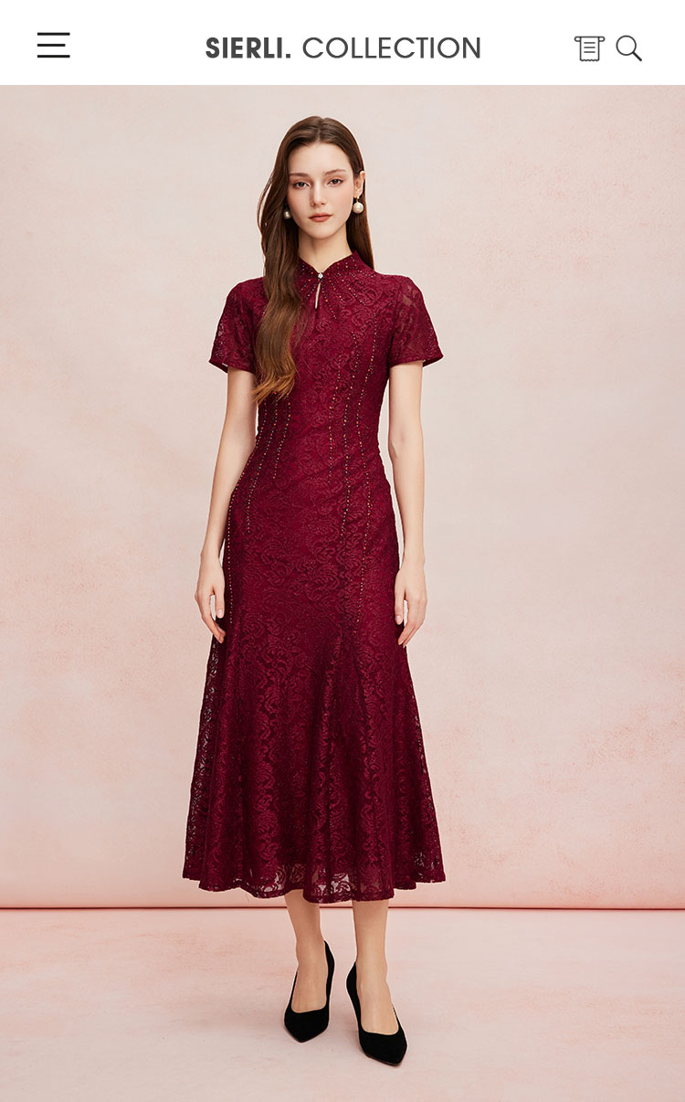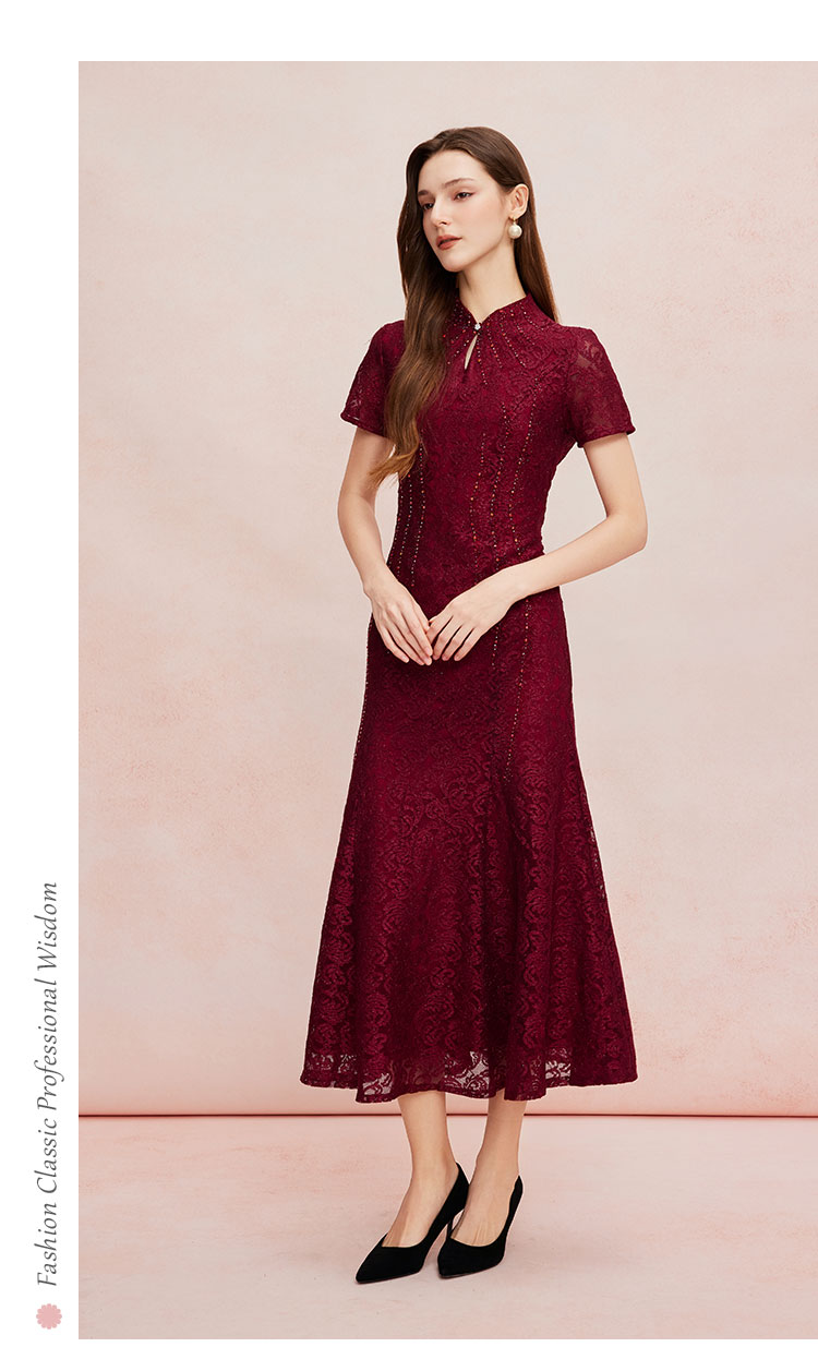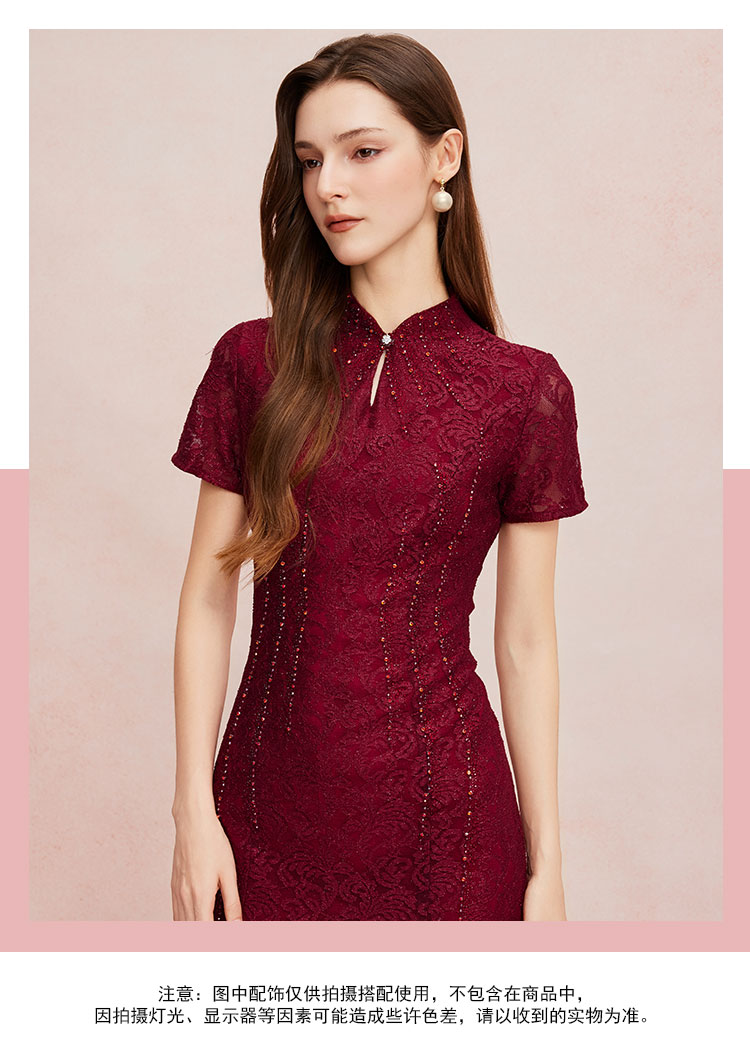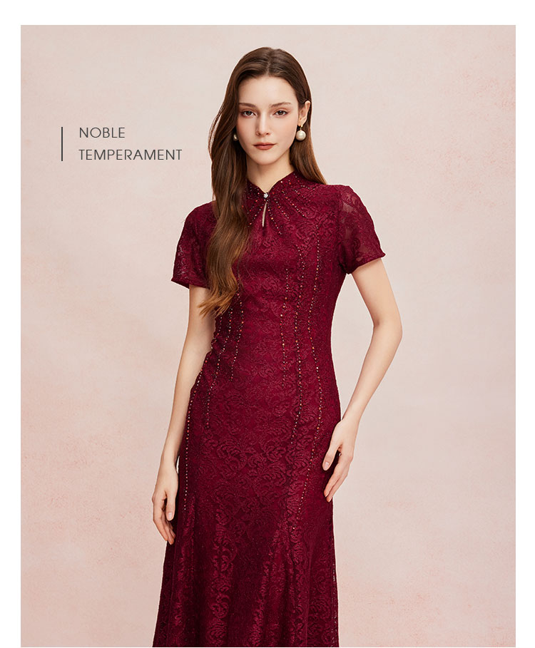 QF8C6斯尔丽25新款改良旗袍款刺绣蕾丝立体烫钻鱼尾长裙礼服宴会连衣裙