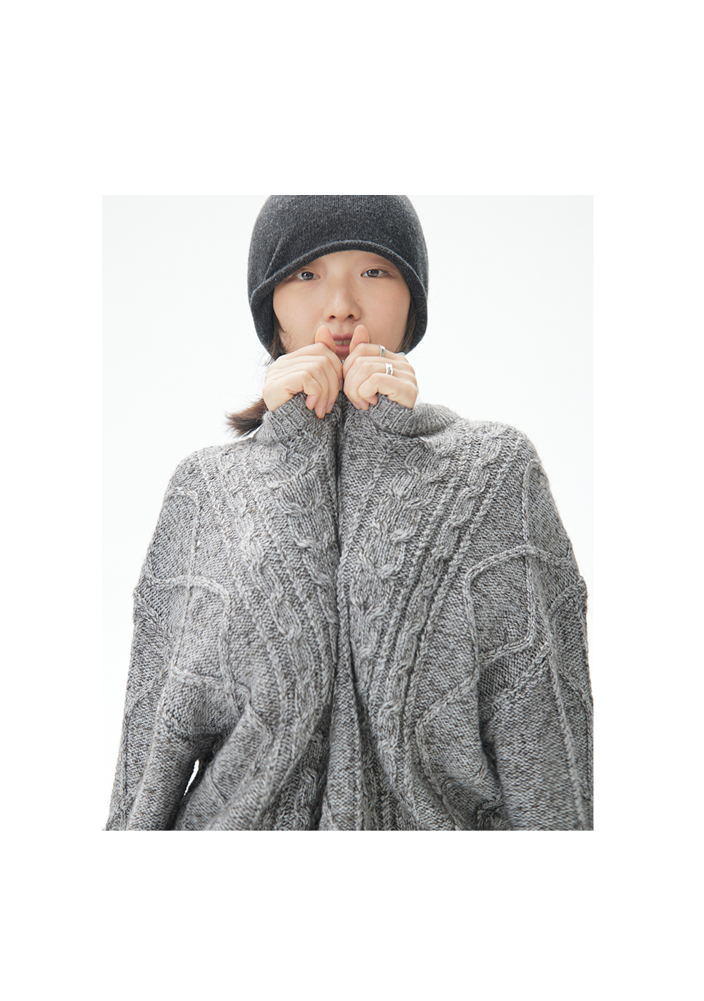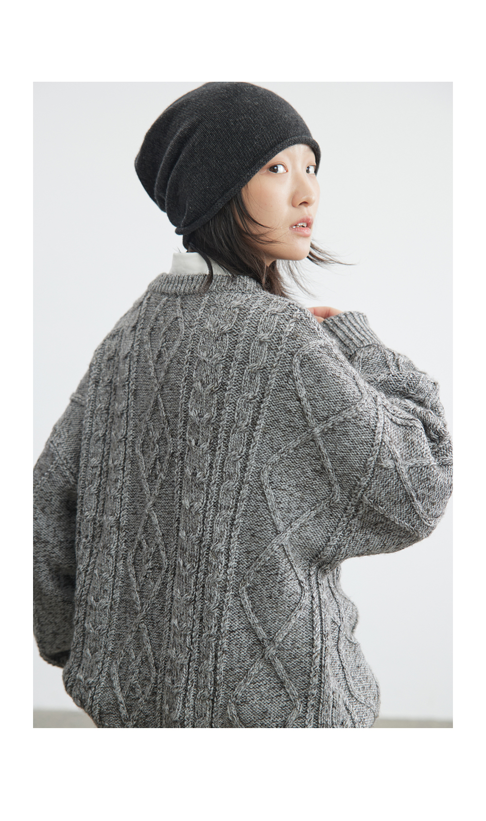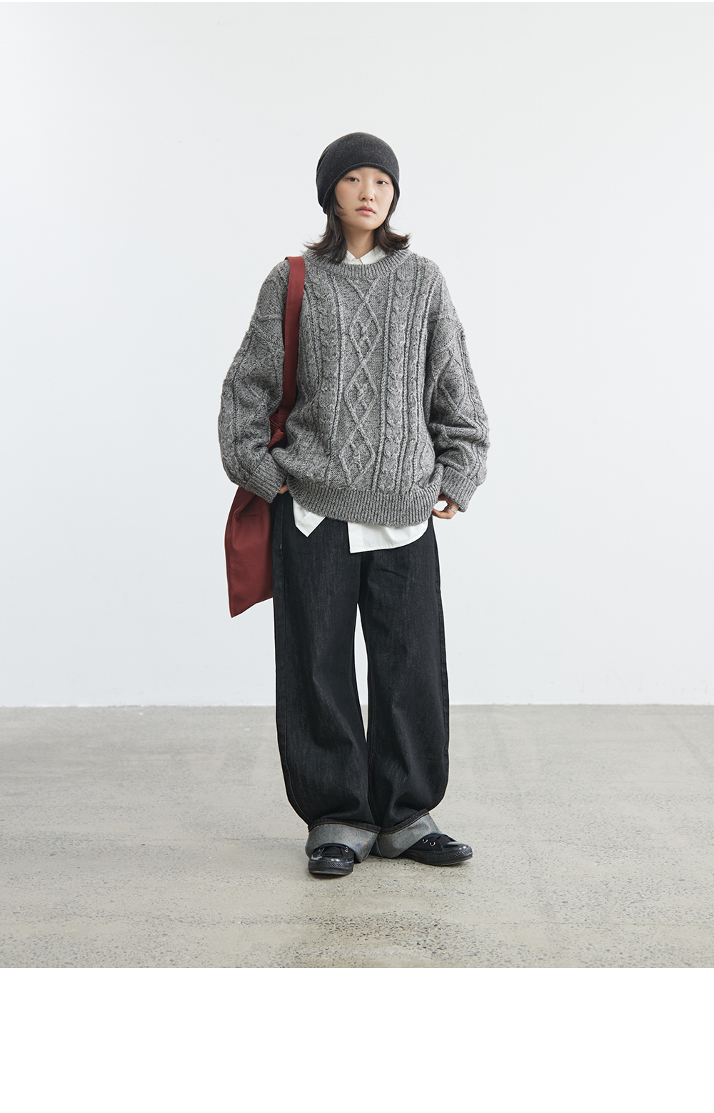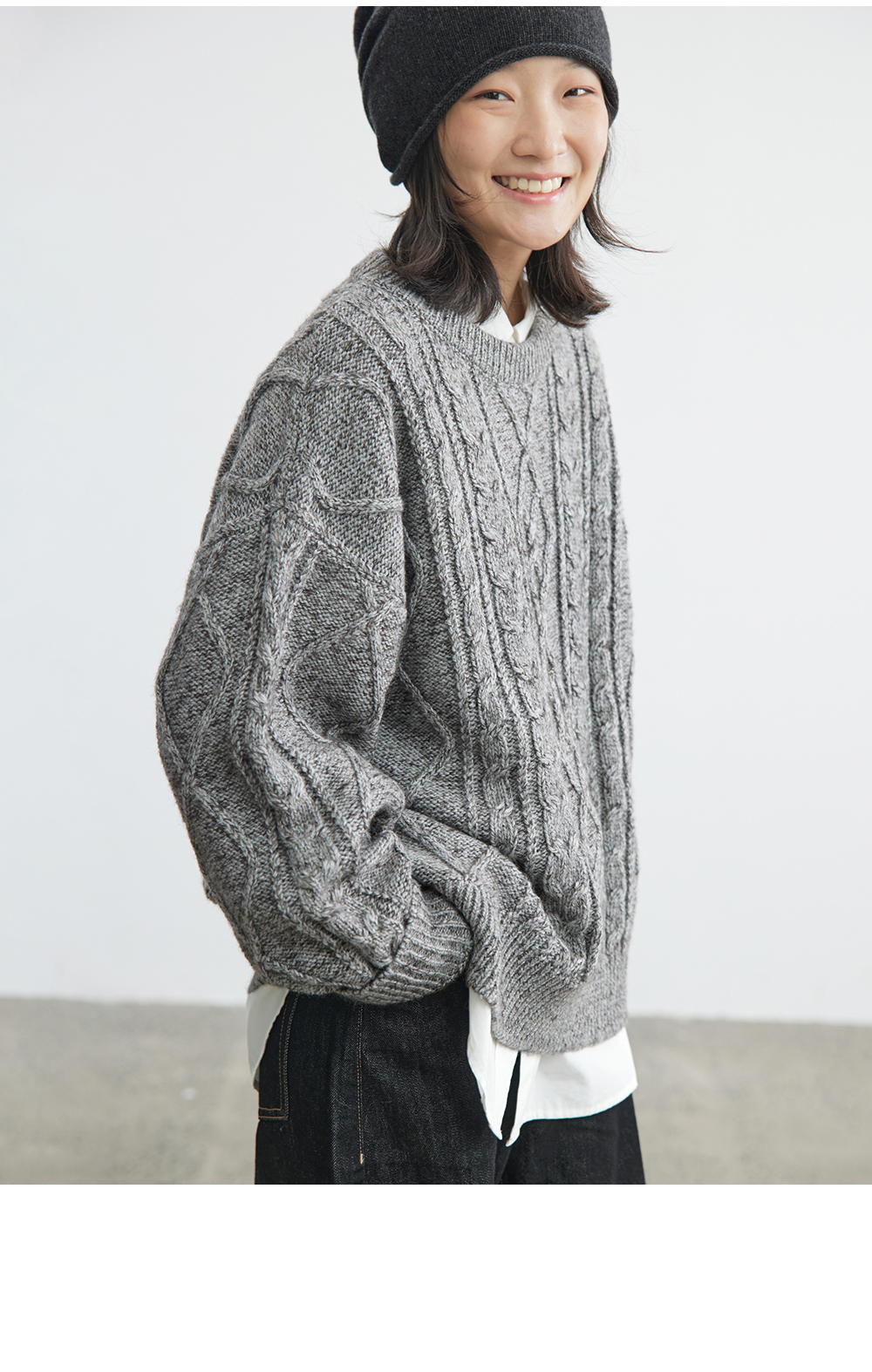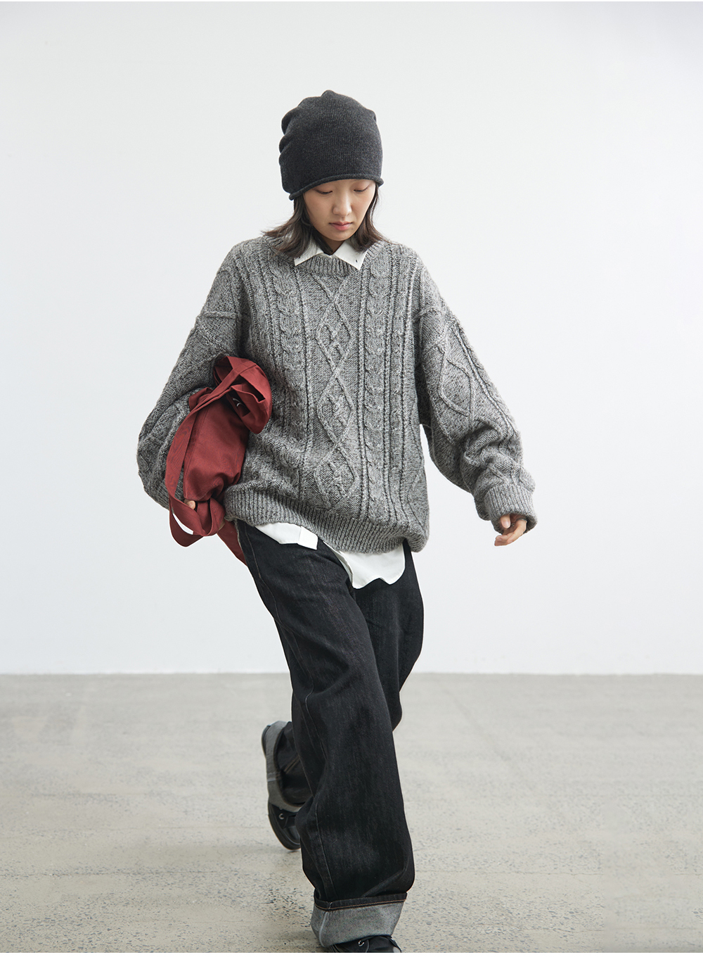 步履不停/4C13220C/复古麻花圆领杂灰色套头毛衣针织衫
