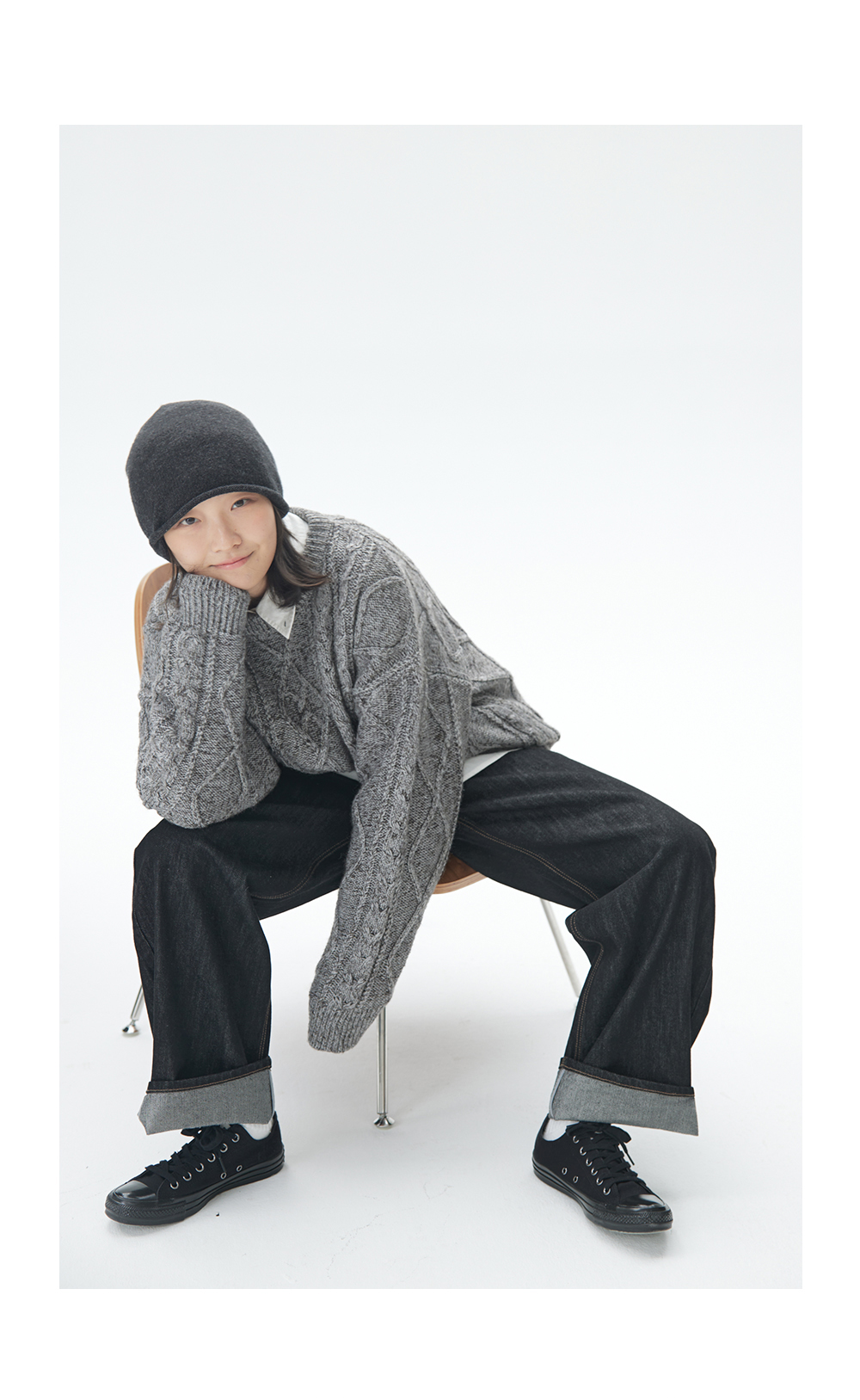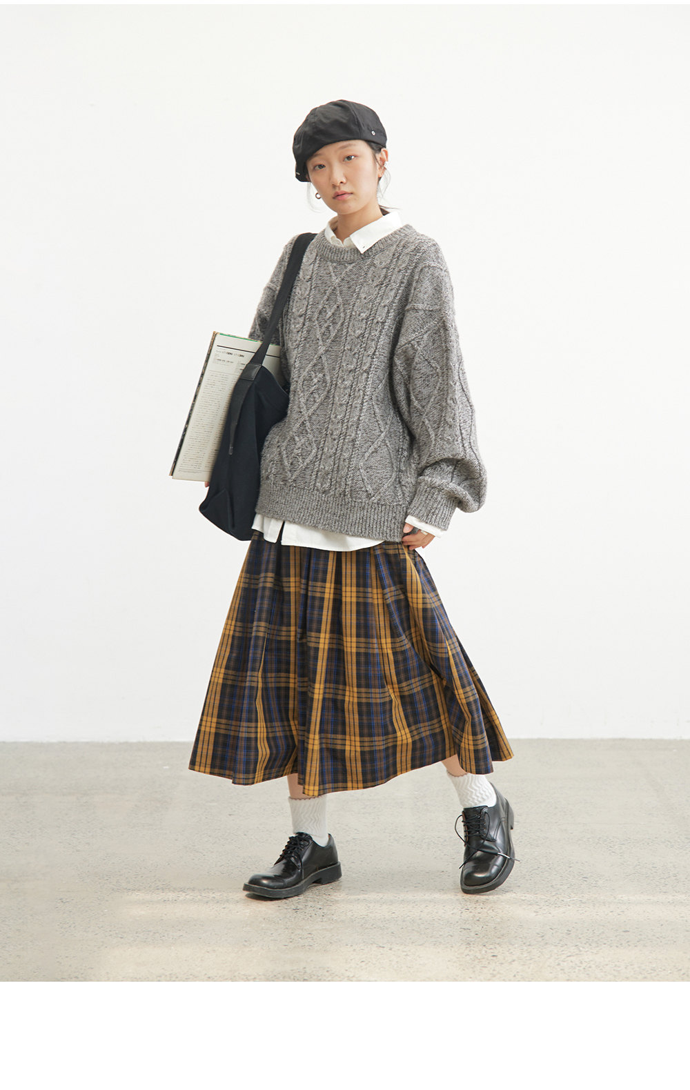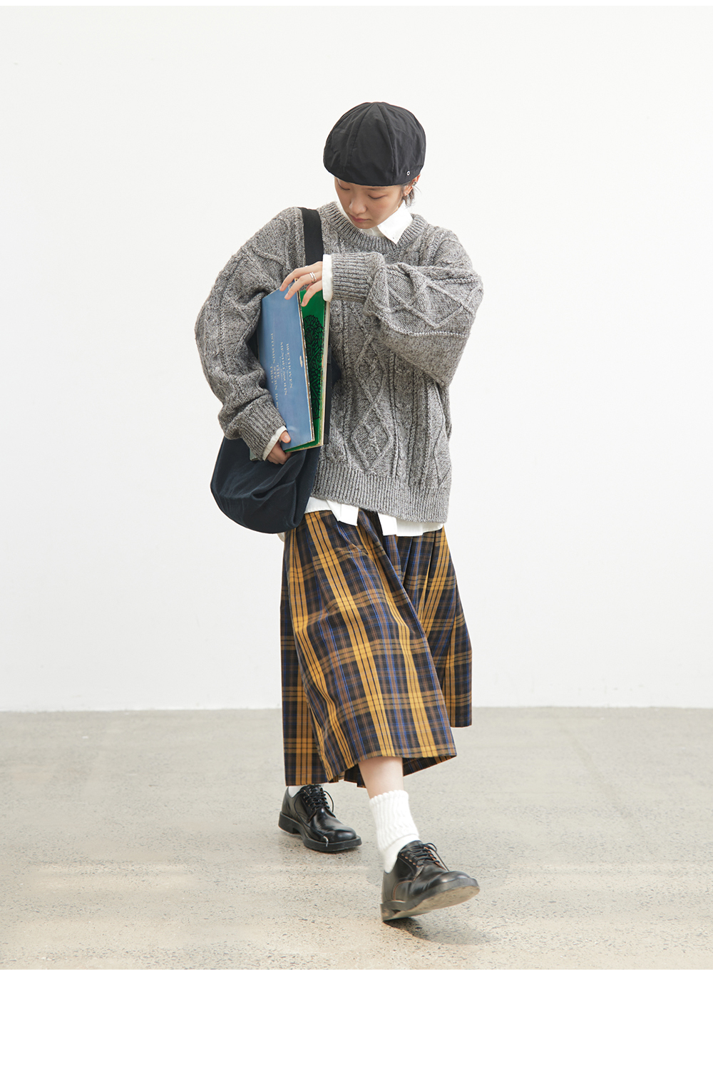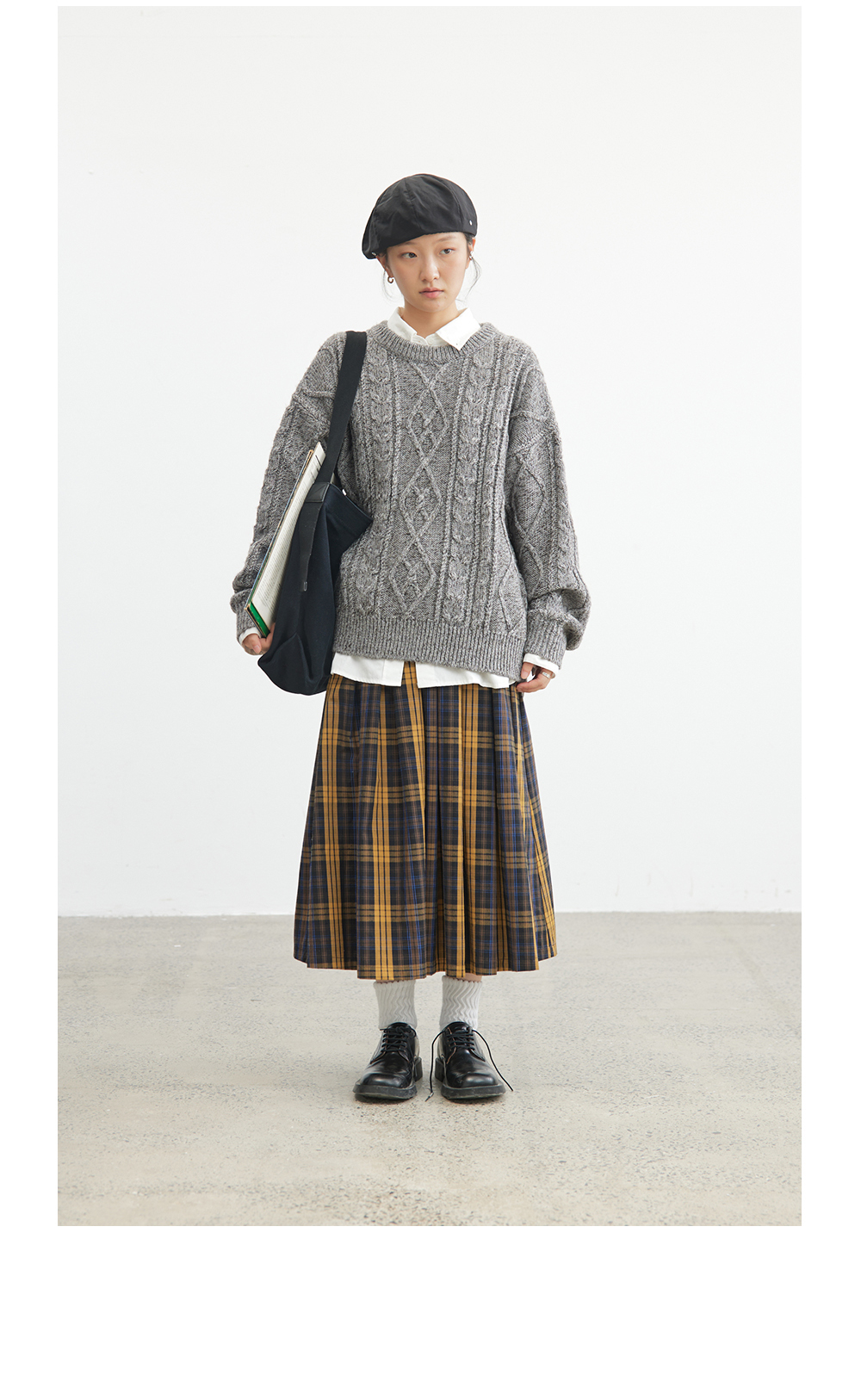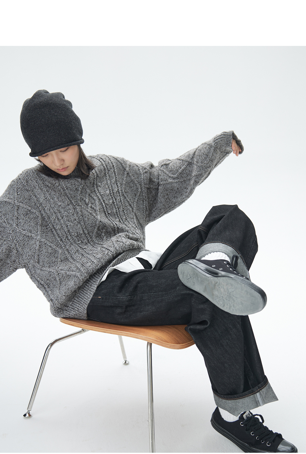 步履不停/4C13220C/复古麻花圆领杂灰色套头毛衣针织衫