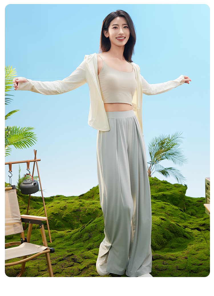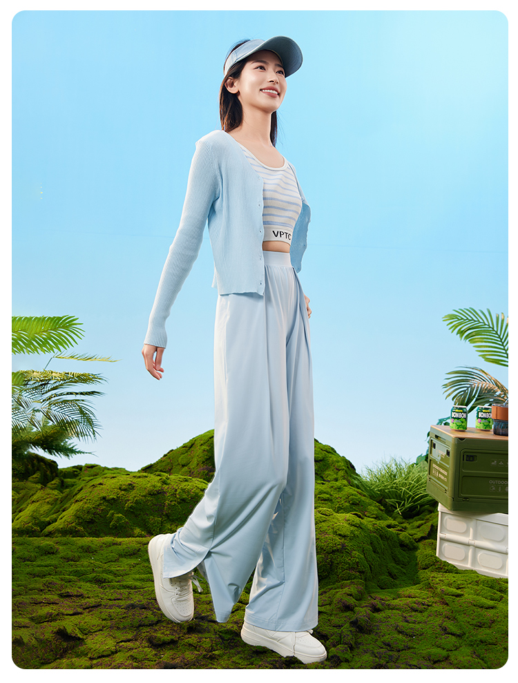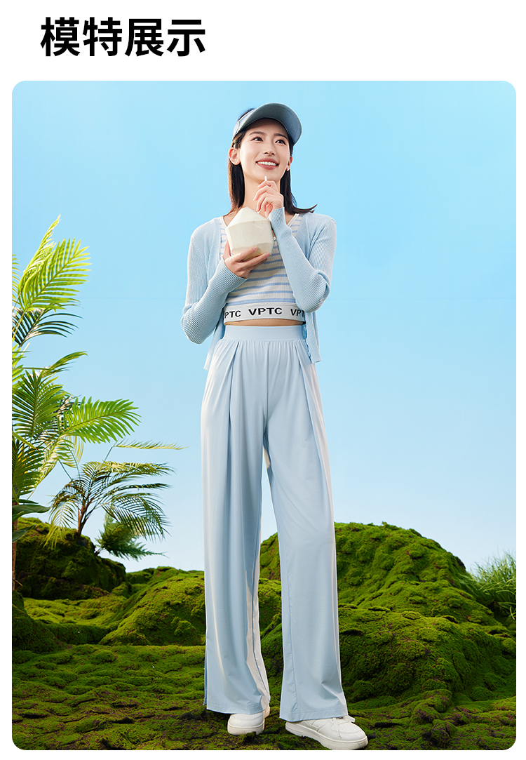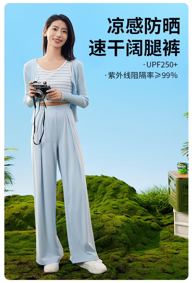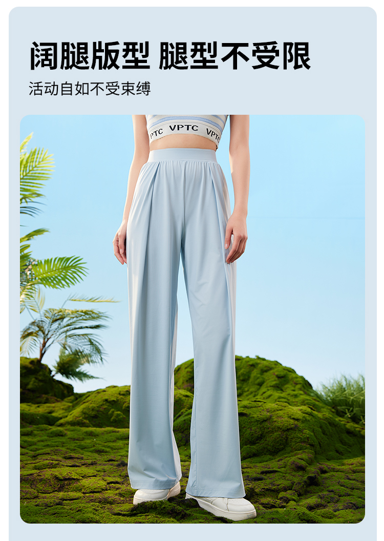 爱帝女士凉感防晒速干阔腿裤外穿宽松休闲直筒裤