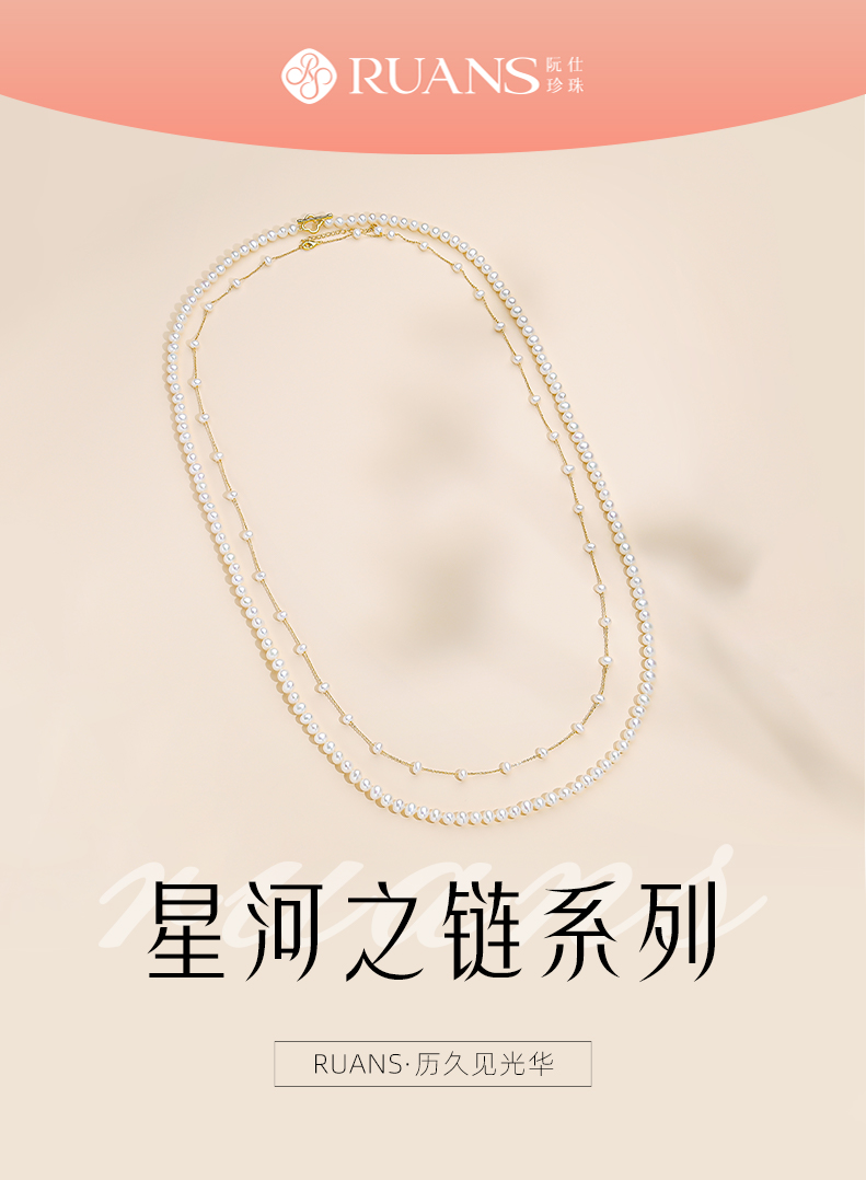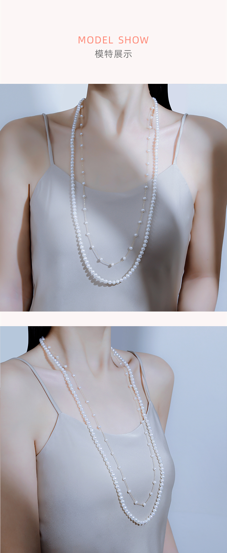 阮仕星河之链系列 合金淡水珍珠长链4-4.5/5.5-6mm 近圆 极微瑕,极强光