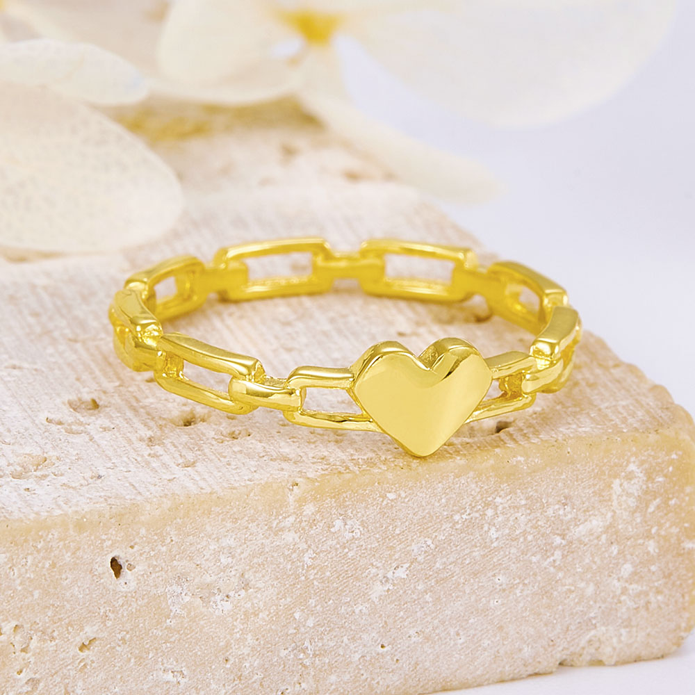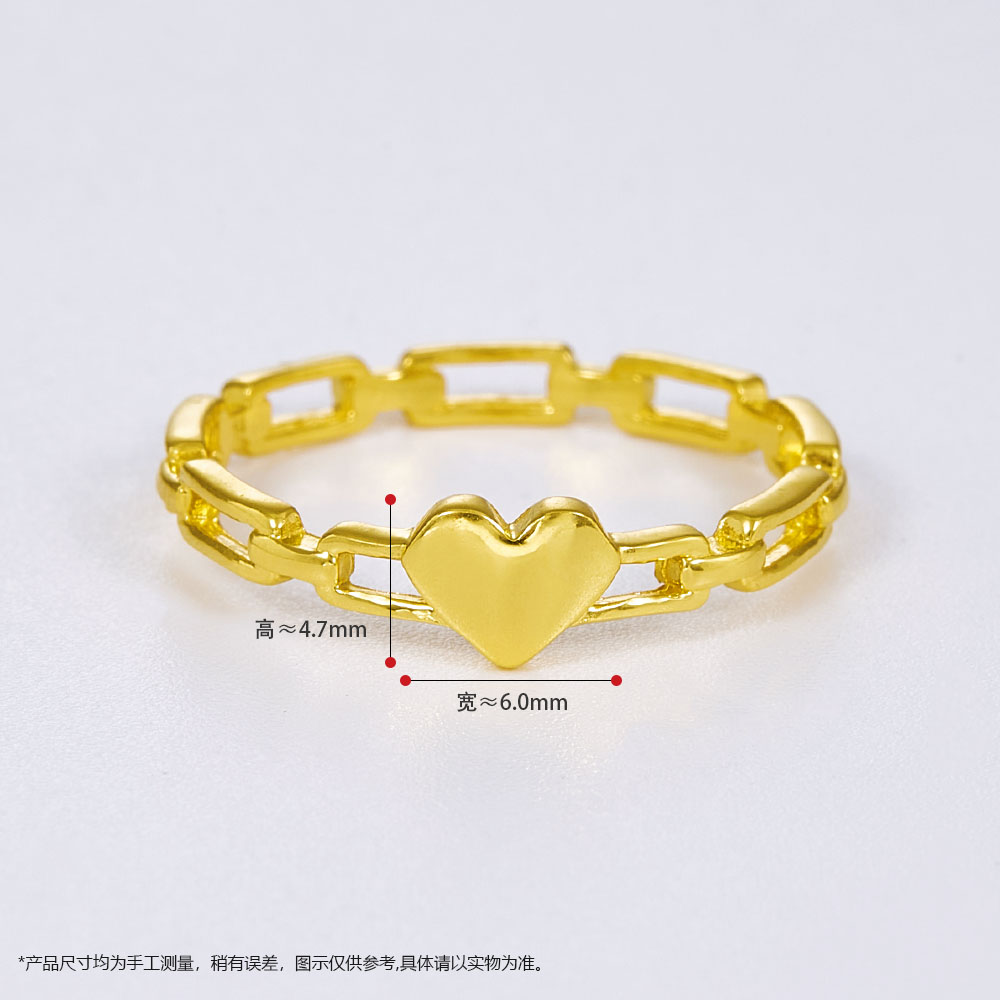 【限时克减150元】足金999 5G黄金光面爱心链条爱心戒指固口女戒(AG5GJZ00069-2)(预售产品下单后不退款不退货不换货不补差(预售产品下单后不退款不退货不换货不补差