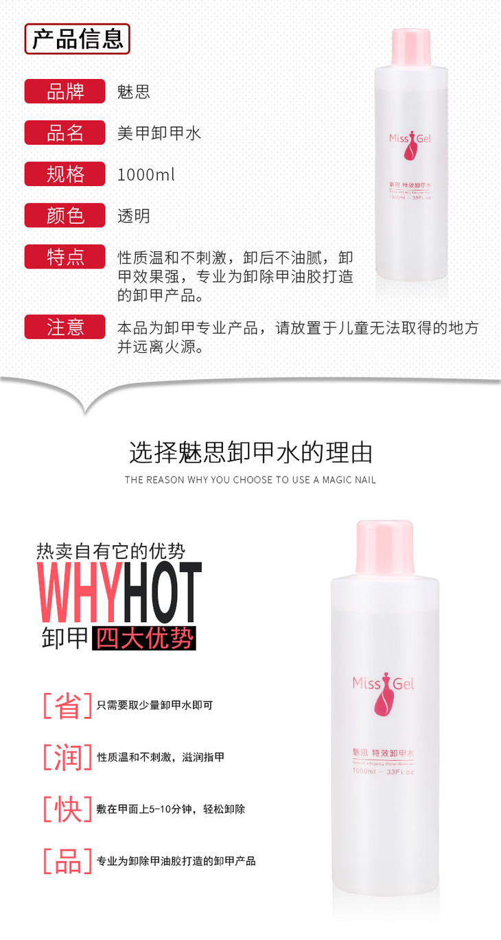 魅思卸甲水1000ml/索芙娜卸甲水,新旧包装随机发(赠送锡纸棉一包)