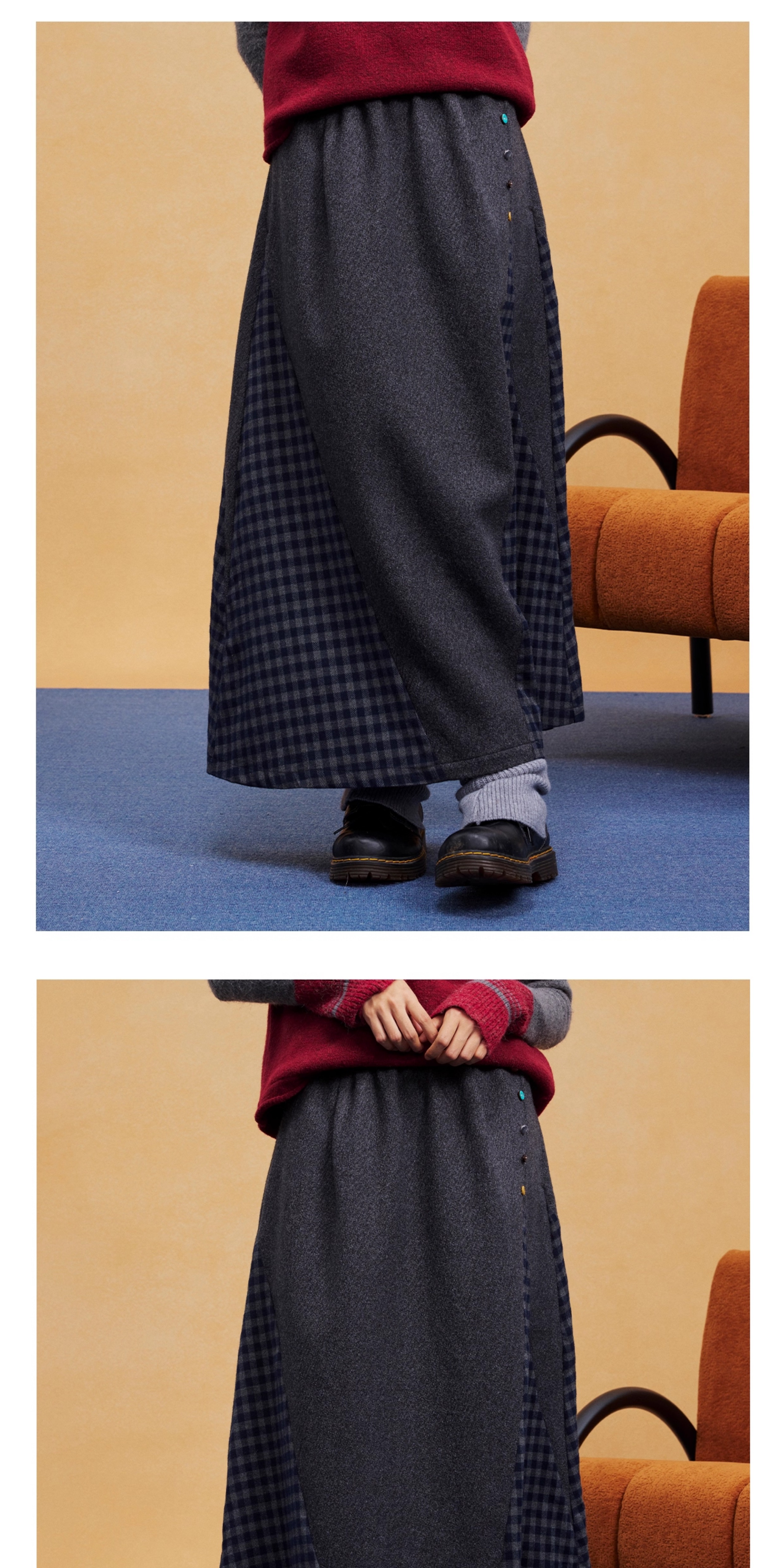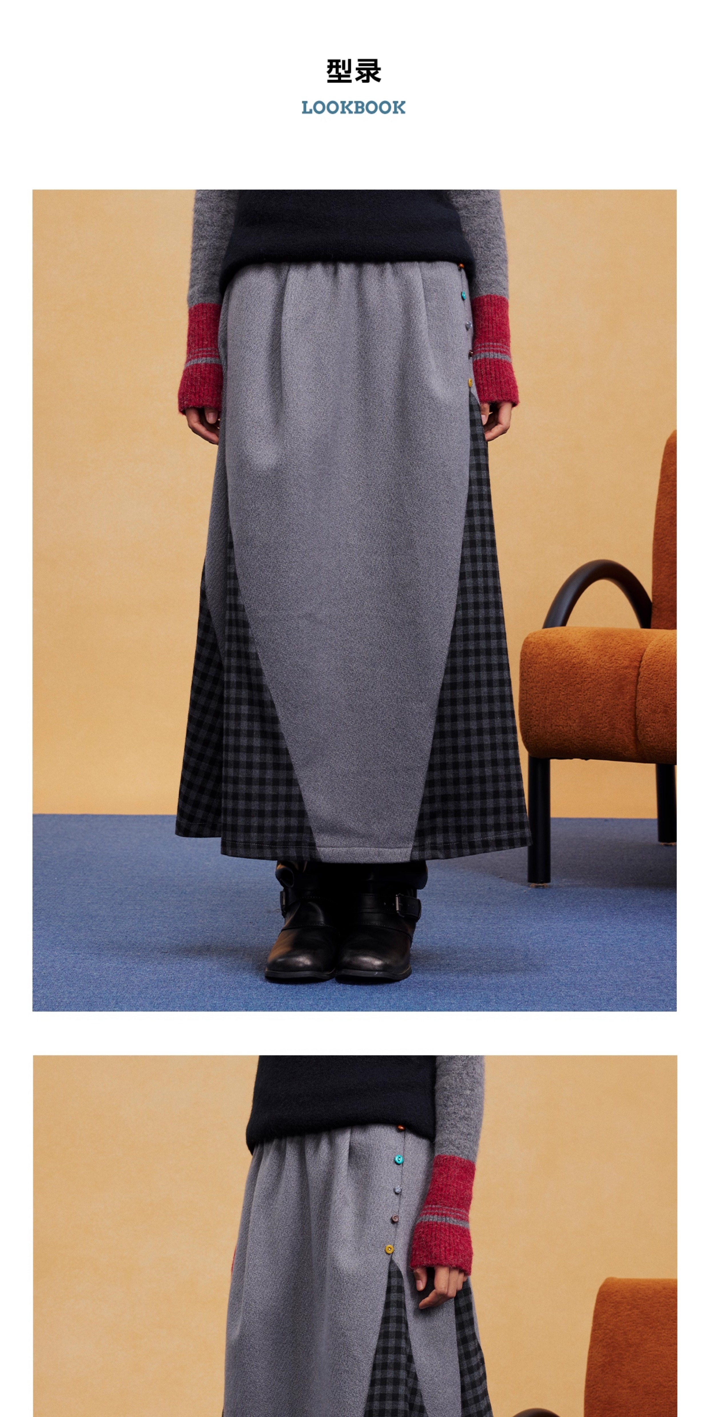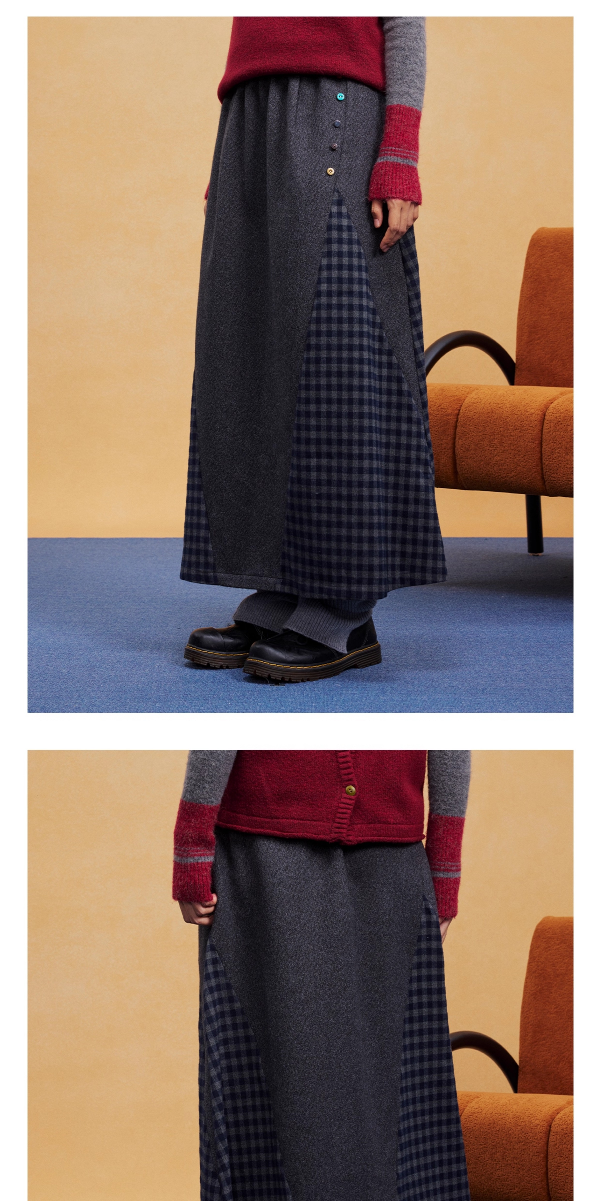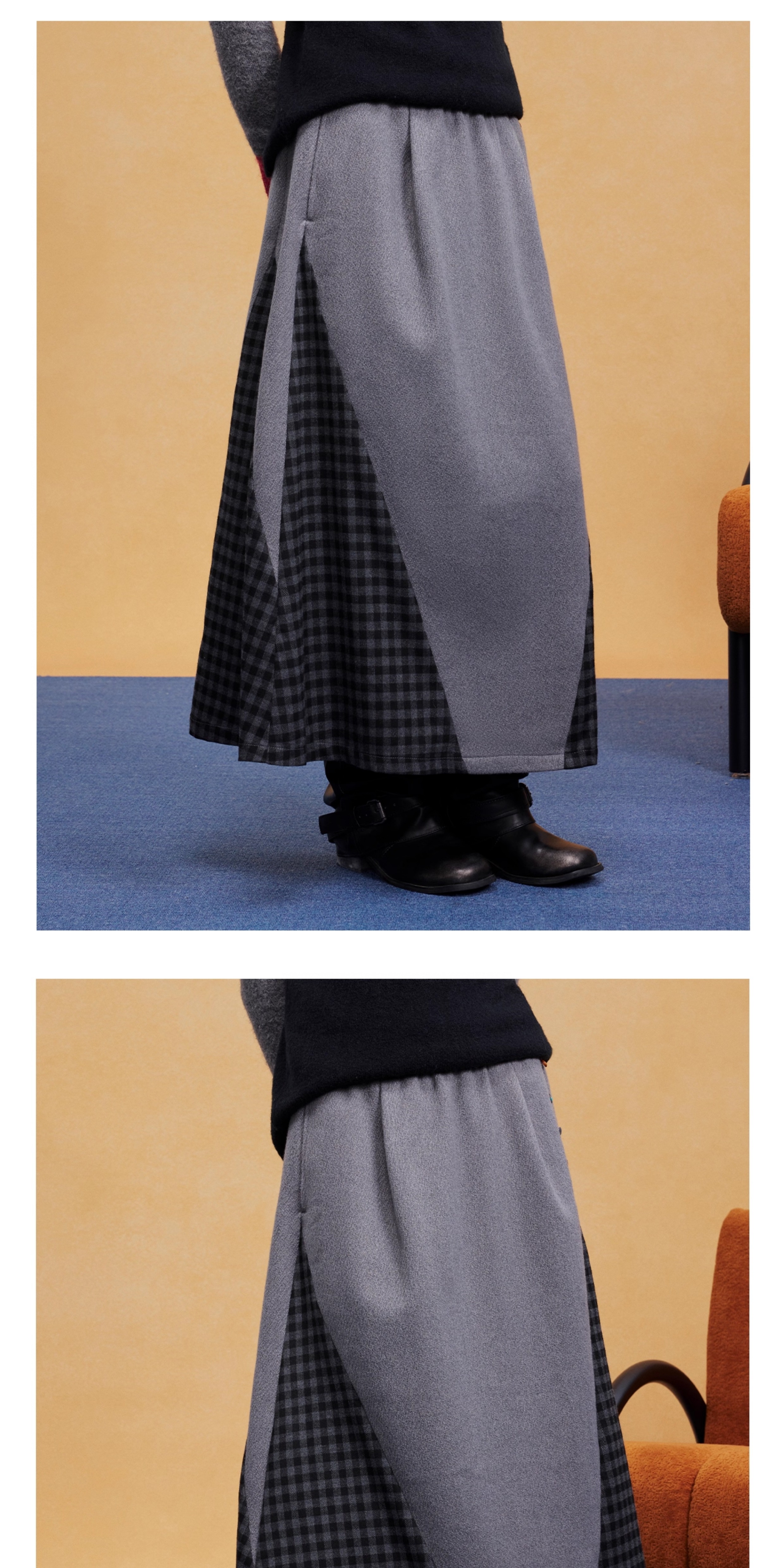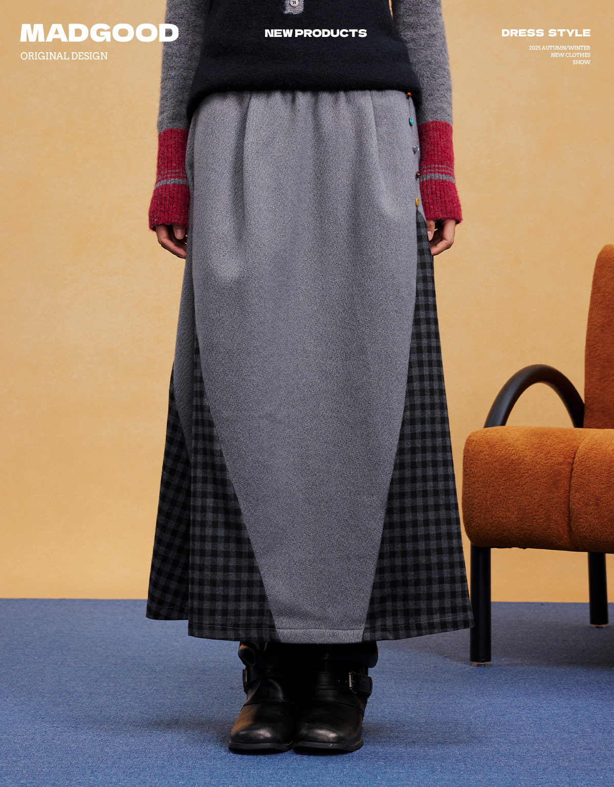 马得工地/MDGDBQ14984/拼接格子呢料半裙