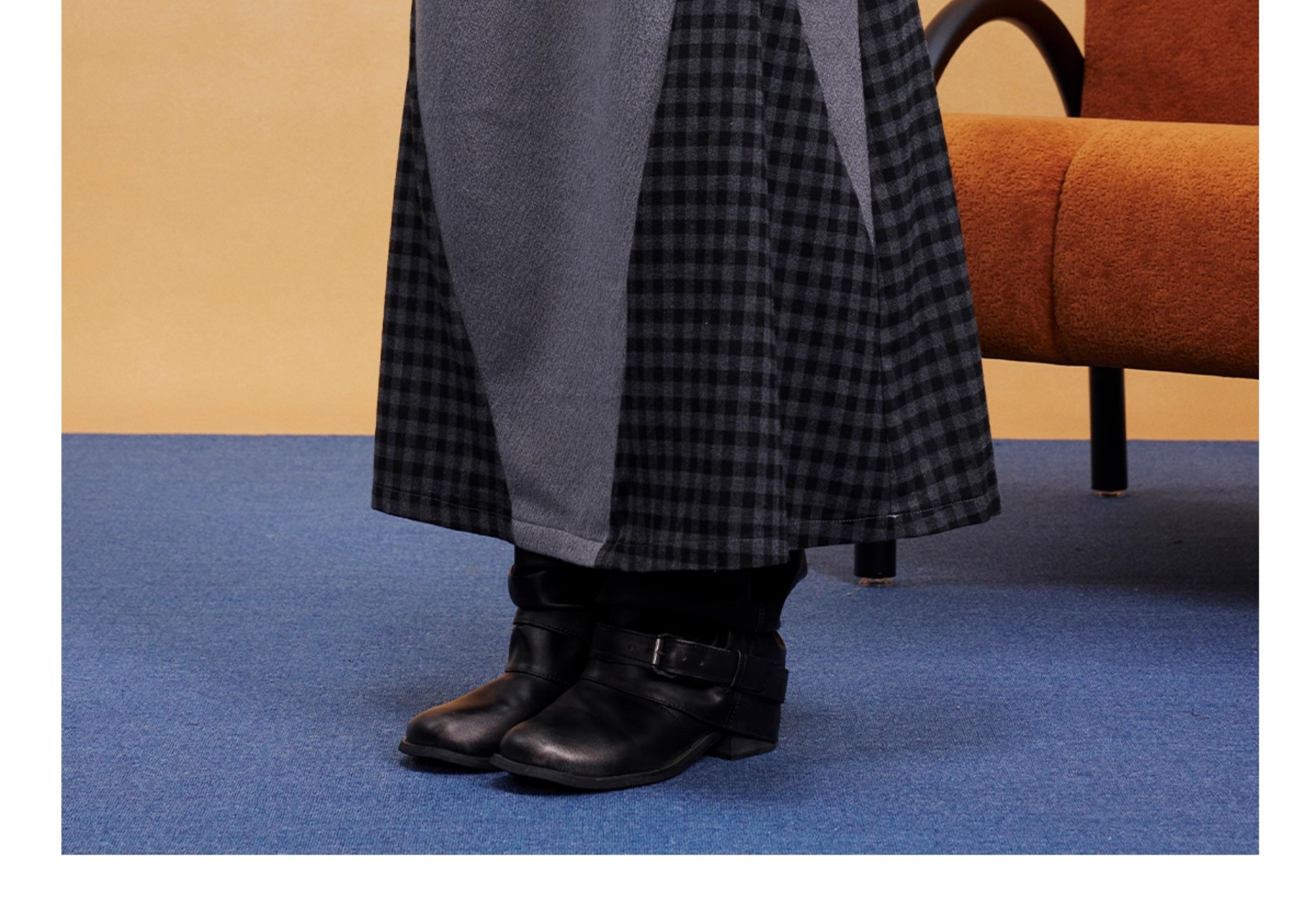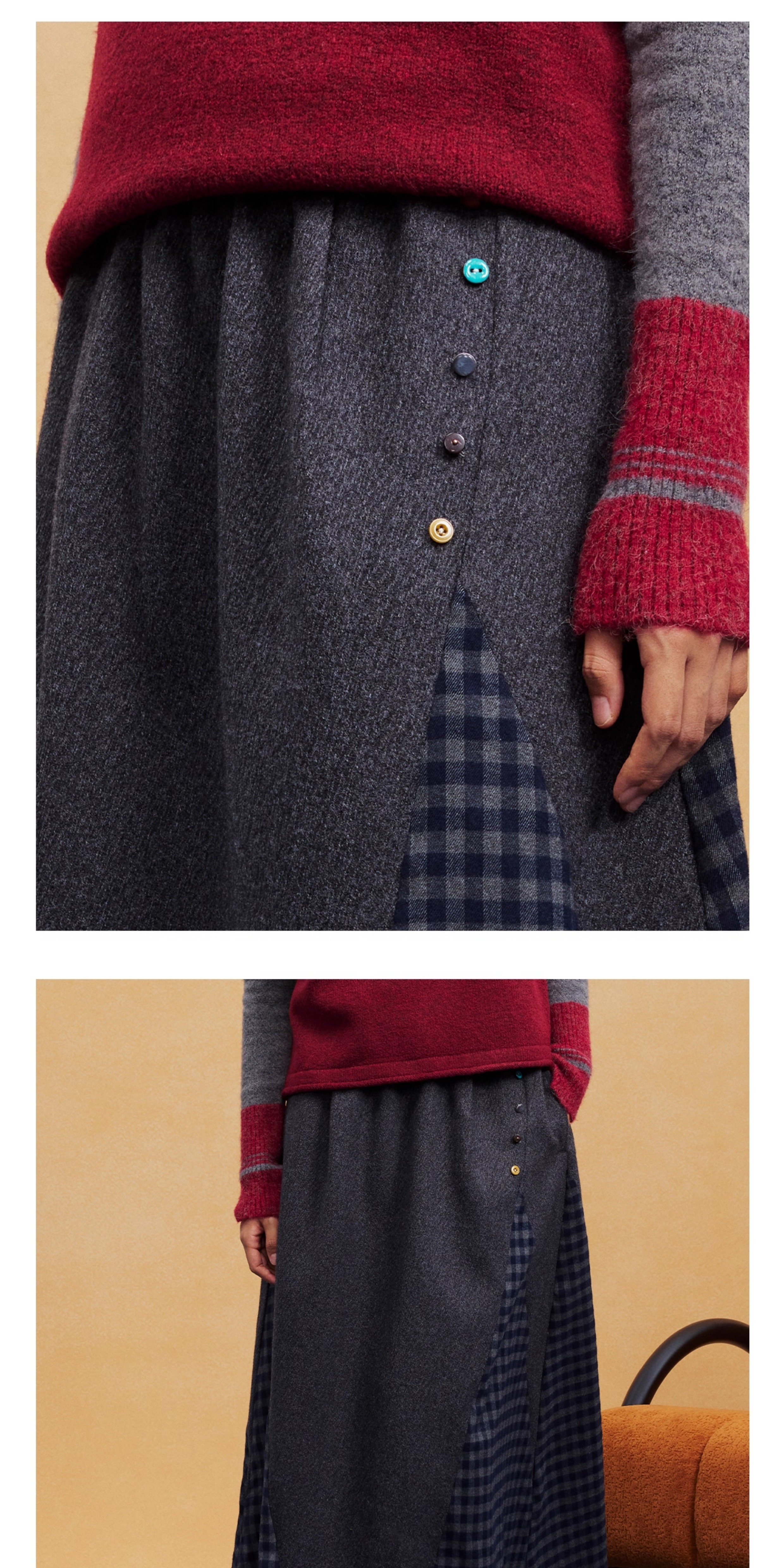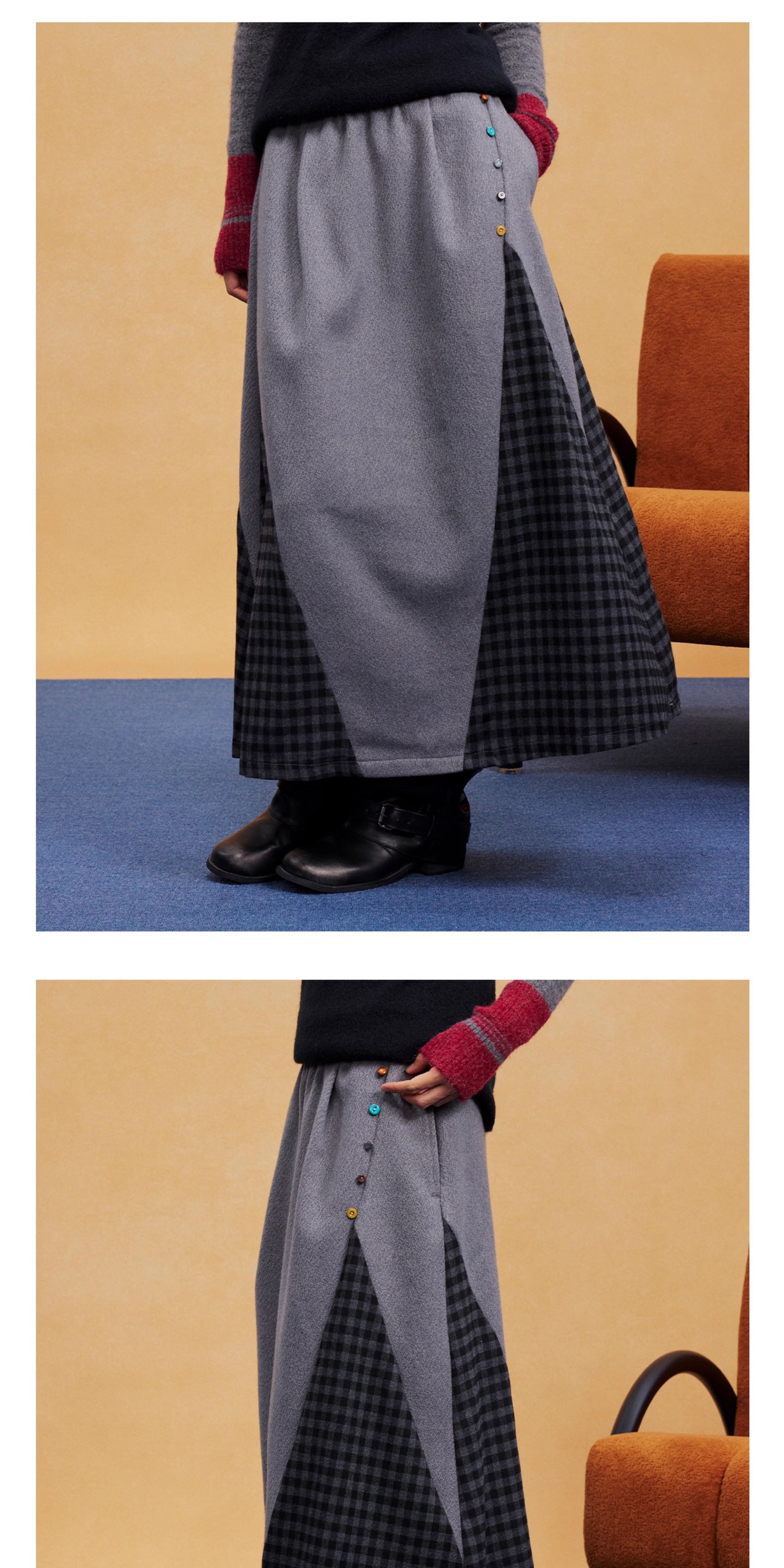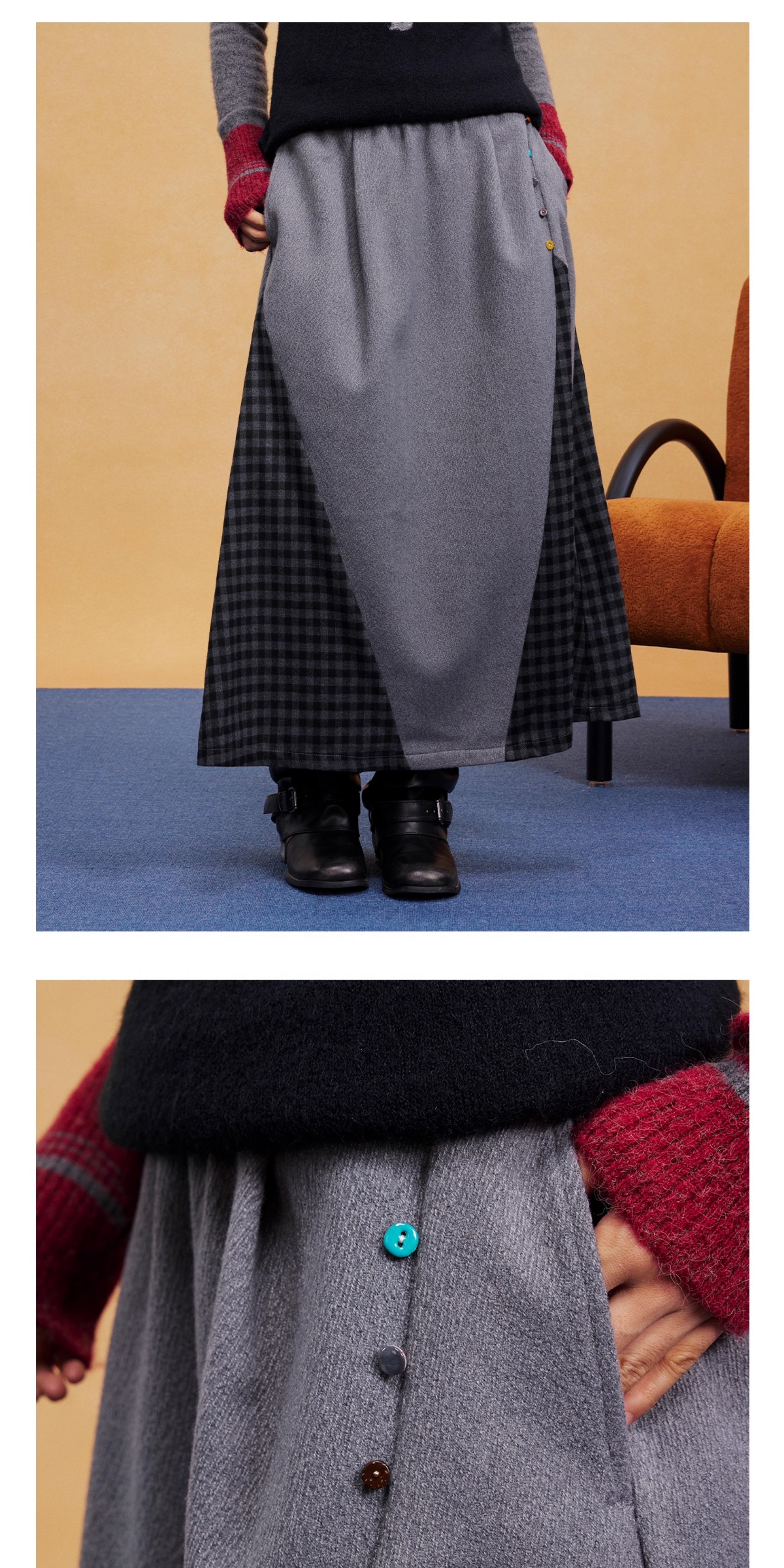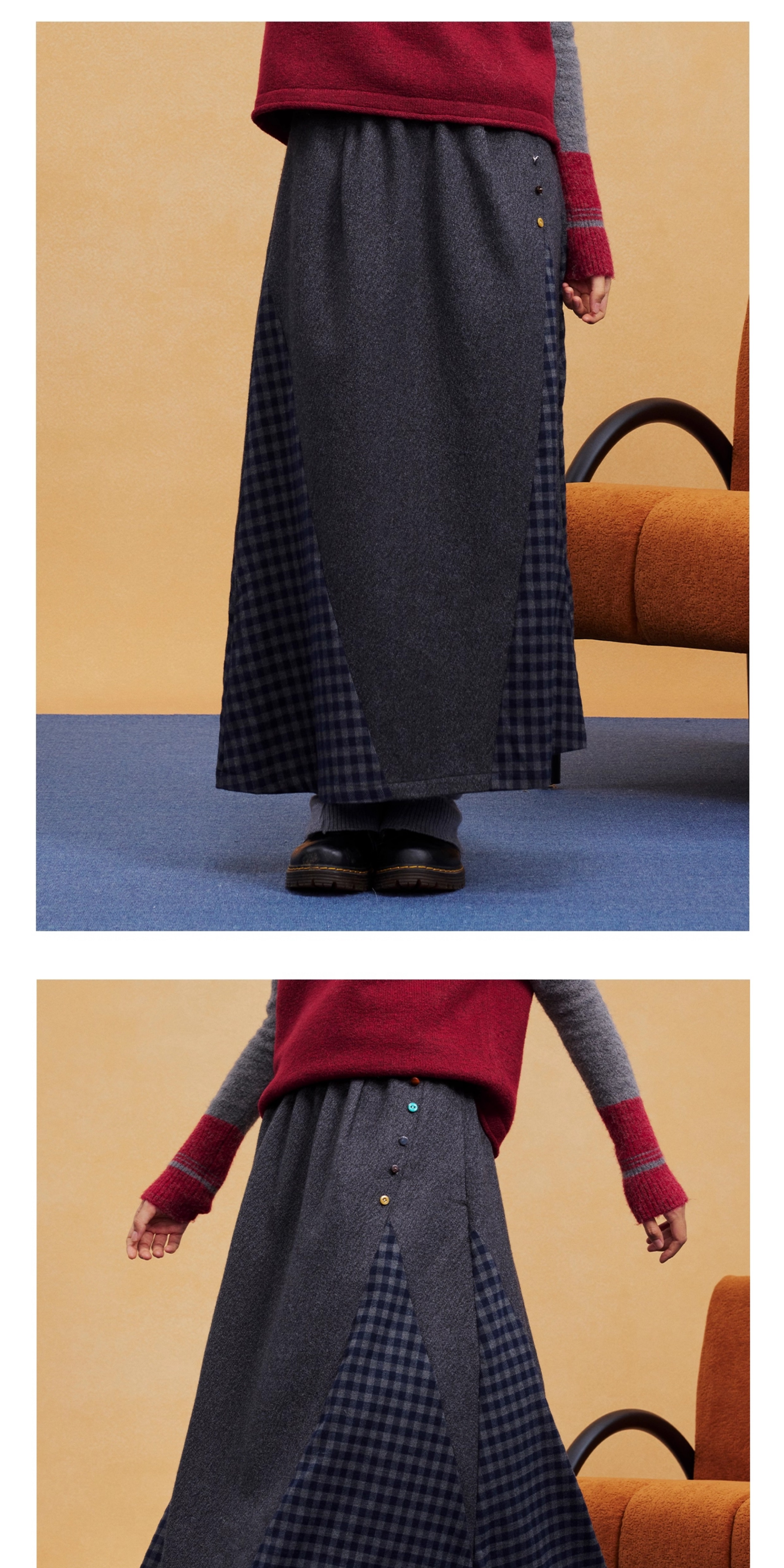 马得工地/MDGDBQ14984/拼接格子呢料半裙