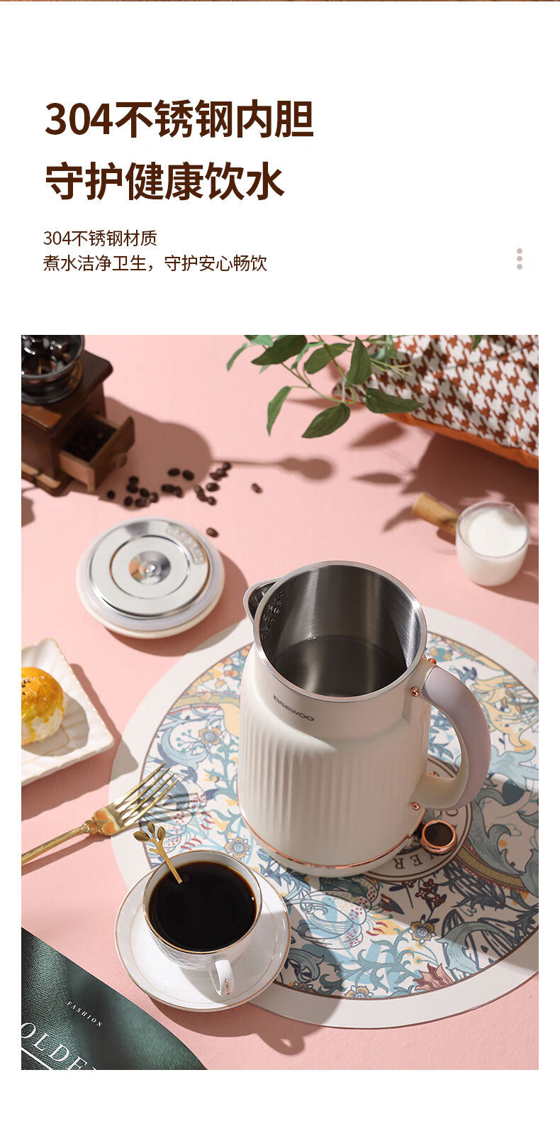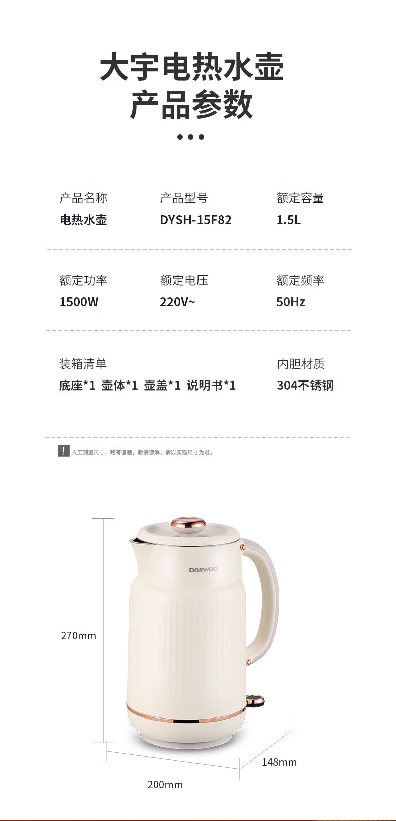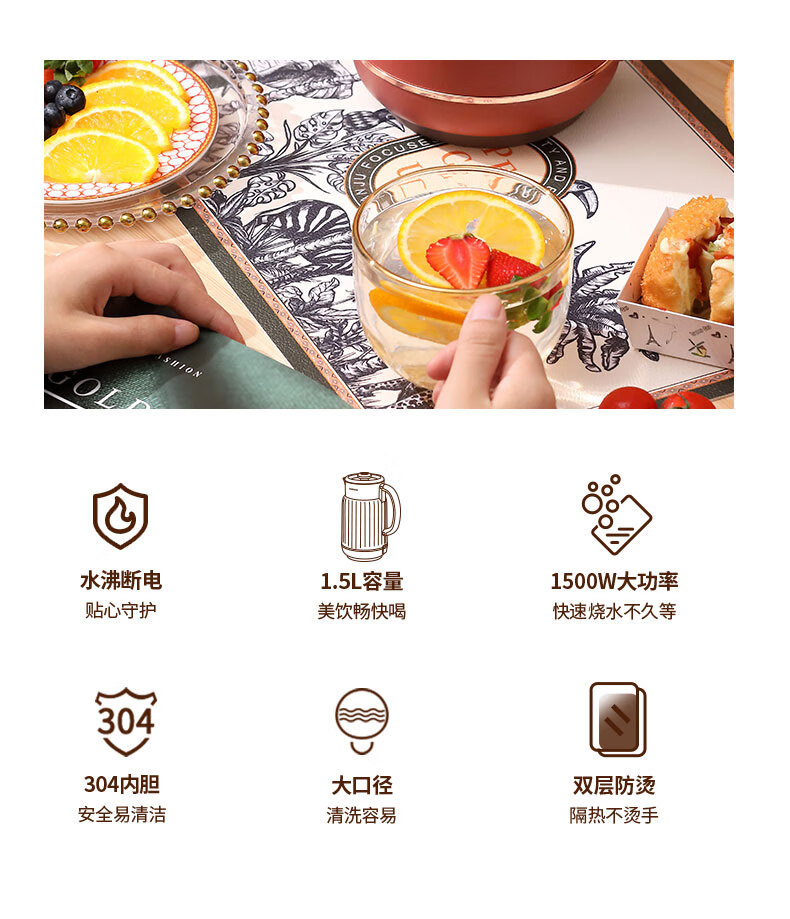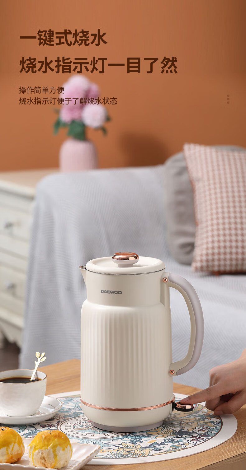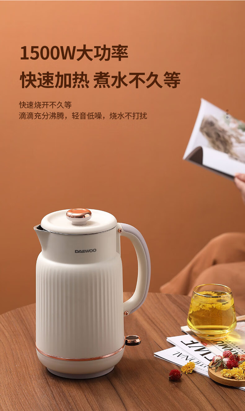 大宇(DAEWOO) 电热水壶家用双层防烫304不锈钢内胆开水壶_DYSH-15F82