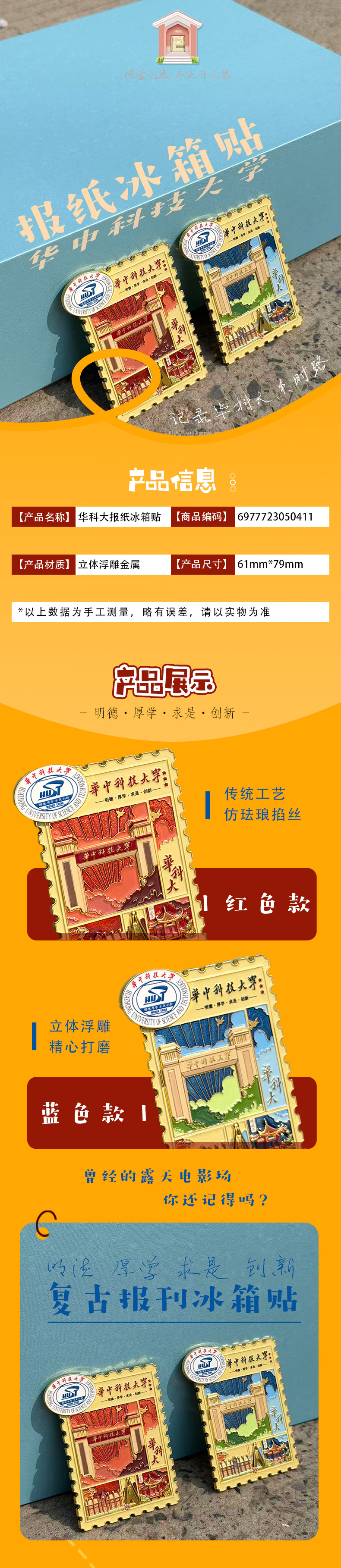 华科大报纸报刊校徽冰箱贴