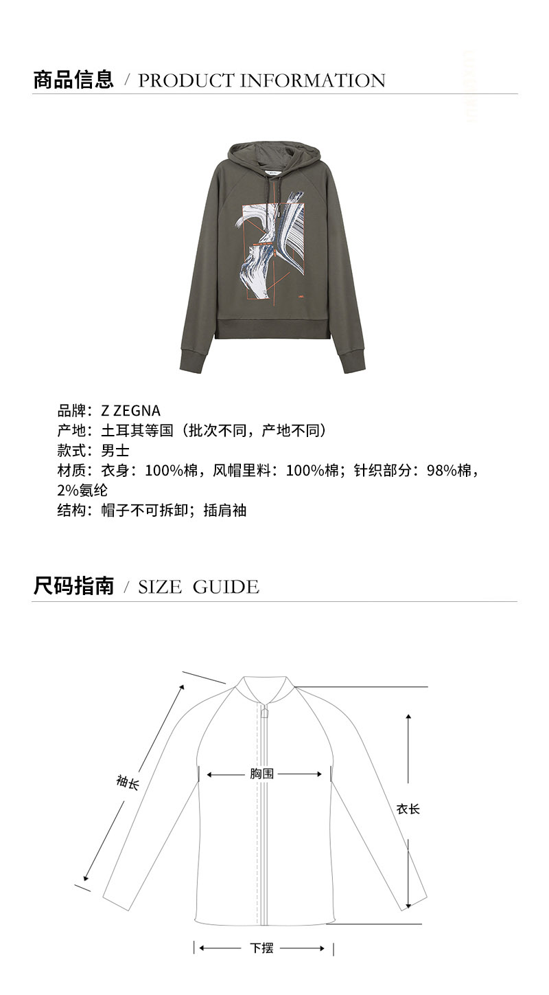 Z ZEGNA/杰尼亚 2021款 男卫衣 男士棉质连帽长袖卫衣运动衫 VW458 ZZ850G