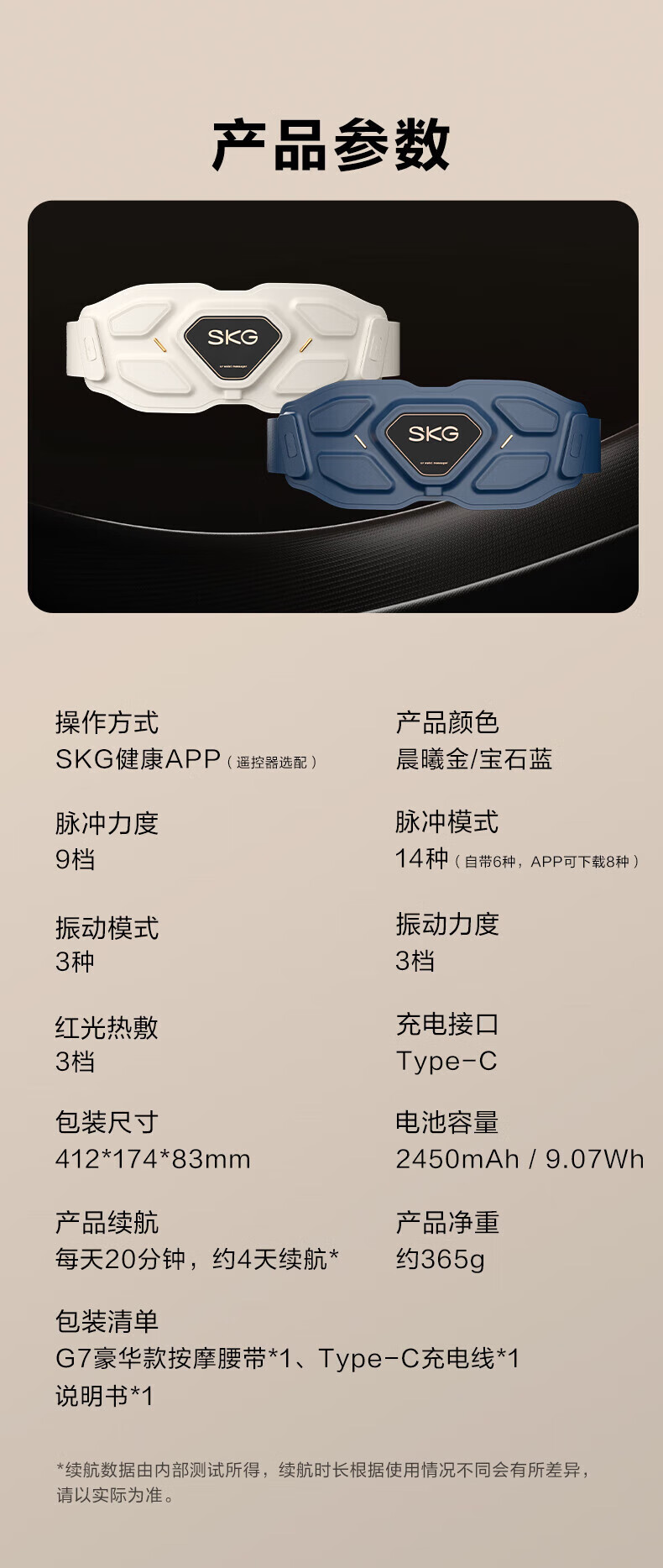 SKG G7系列2代 Ultra SKG腰部按摩仪 米金色 豪华款 S3656AA