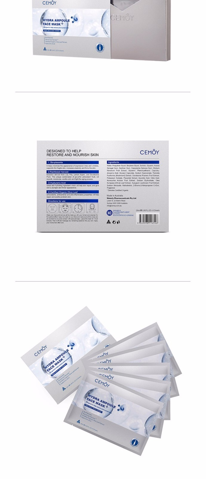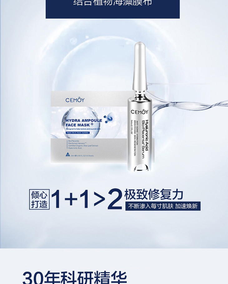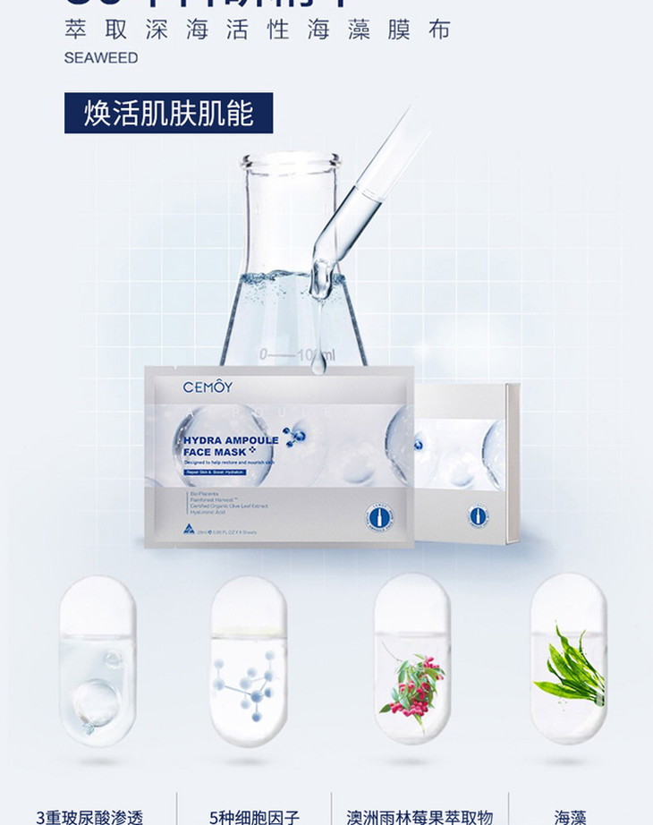 【香港直邮】澳洲cemoy安瓶补水精华海藻面膜 5片装