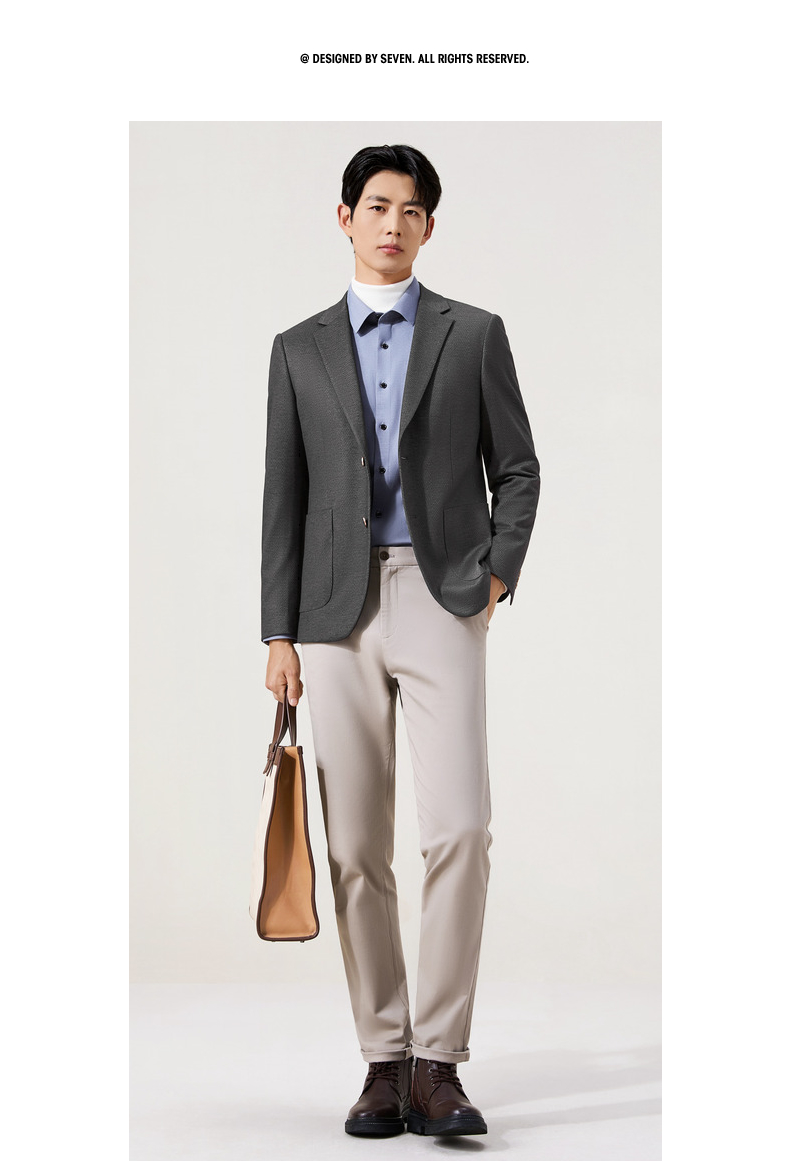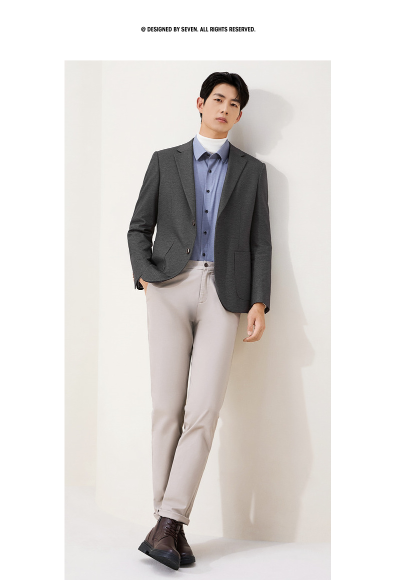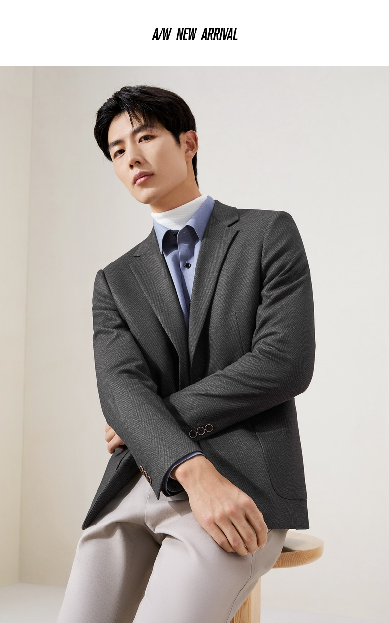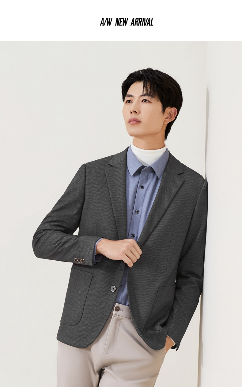 柒牌休闲西服外套2025秋冬修身平驳领二粒扣针织提花抗皱商务单西129C70240