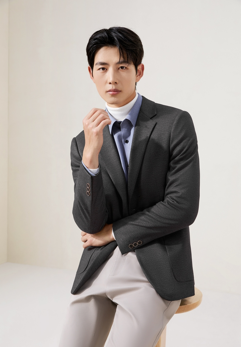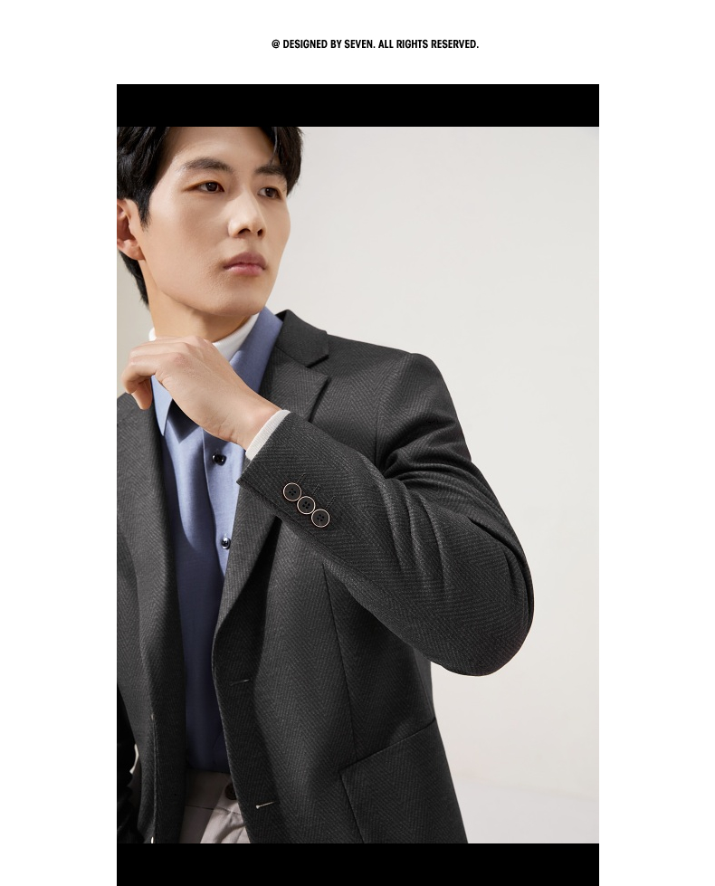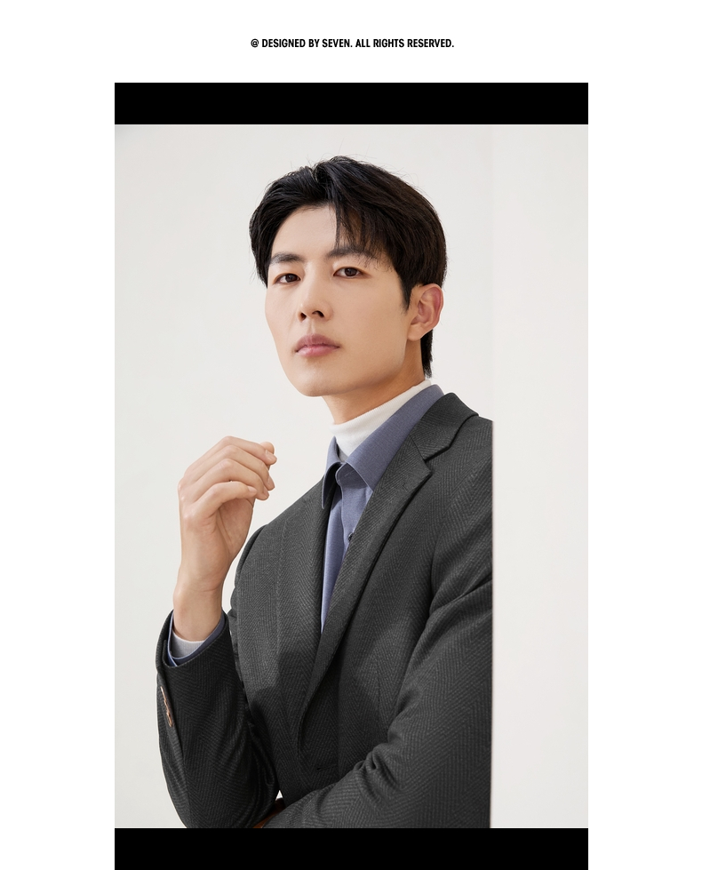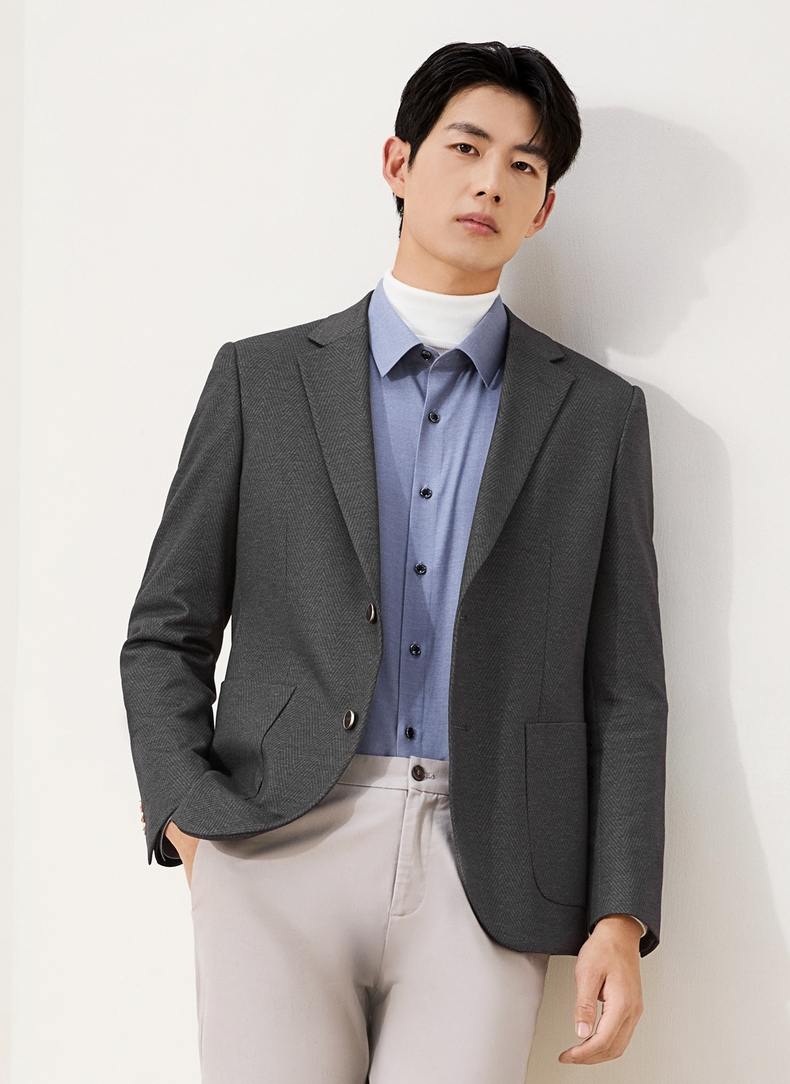 柒牌休闲西服外套2025秋冬修身平驳领二粒扣针织提花抗皱商务单西129C70240