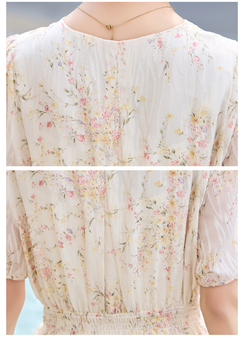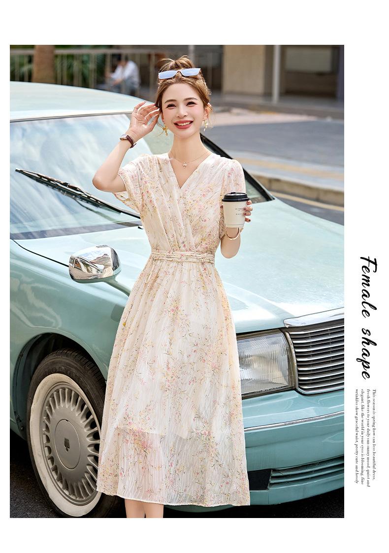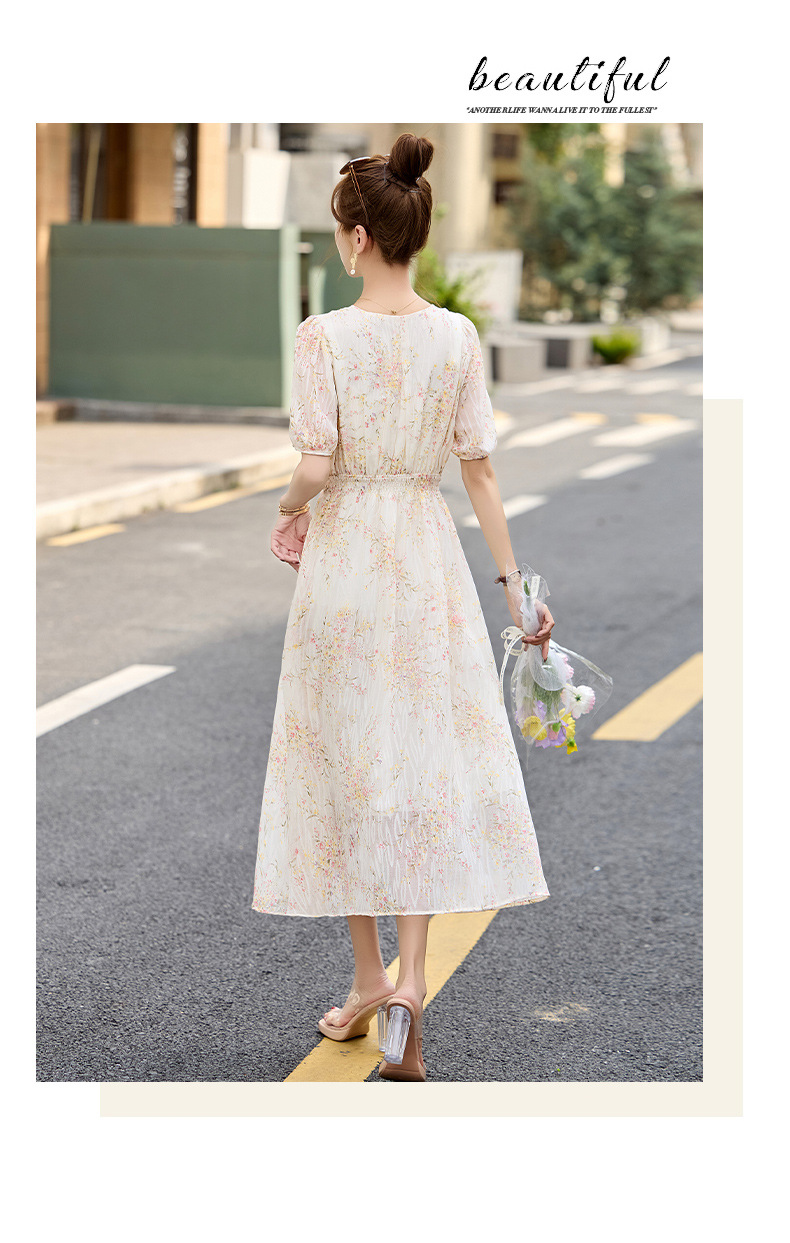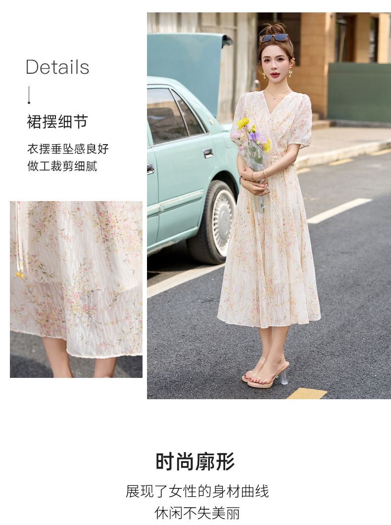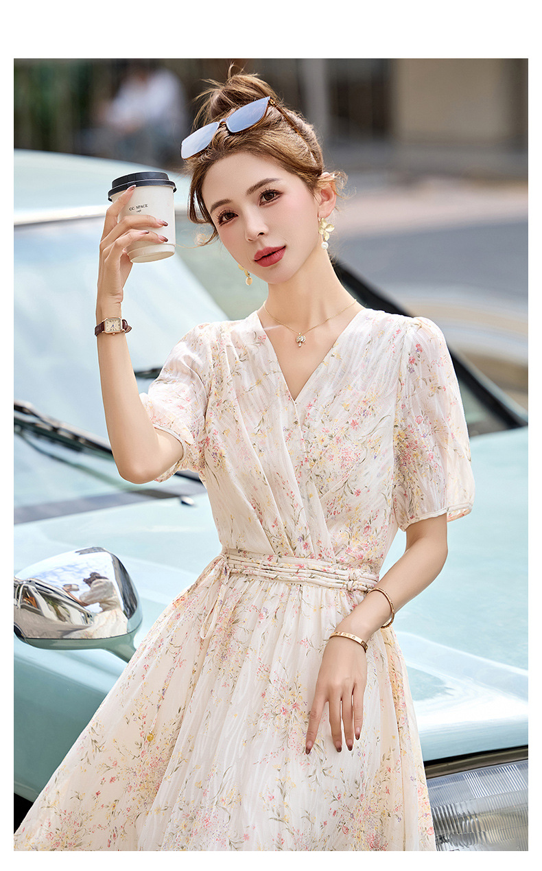 时尚法式收腰显瘦,新中式国风复古碎花连衣裙LJX-385