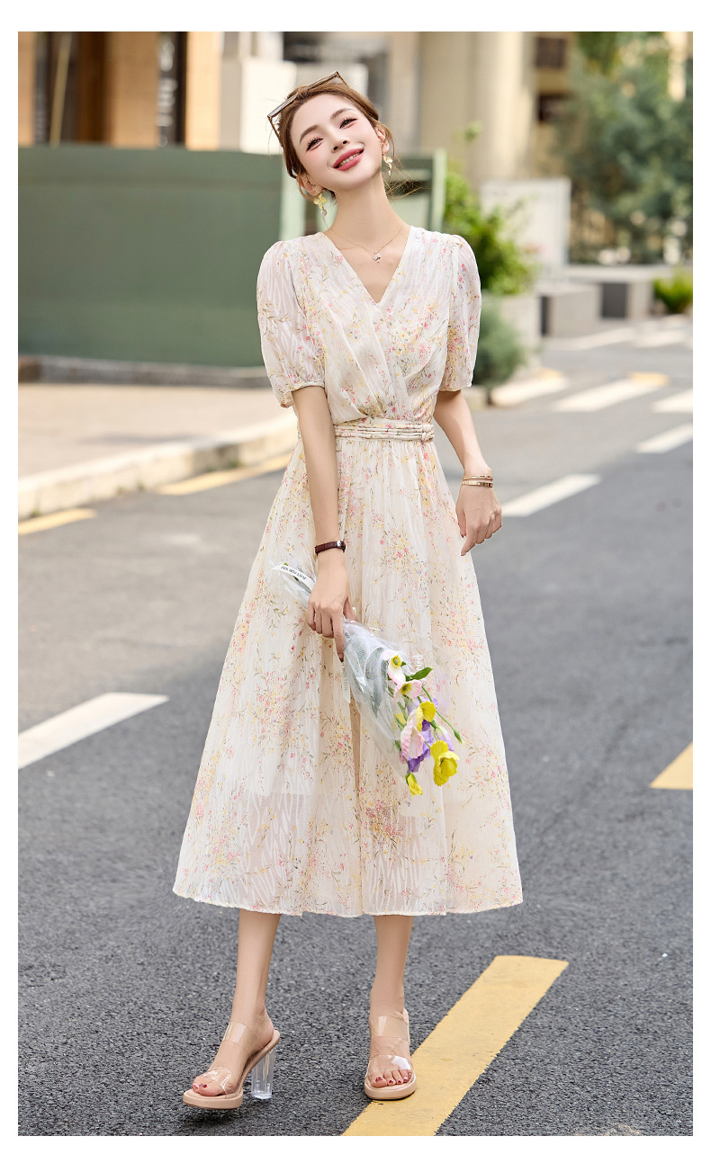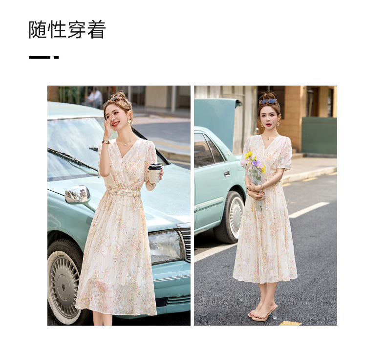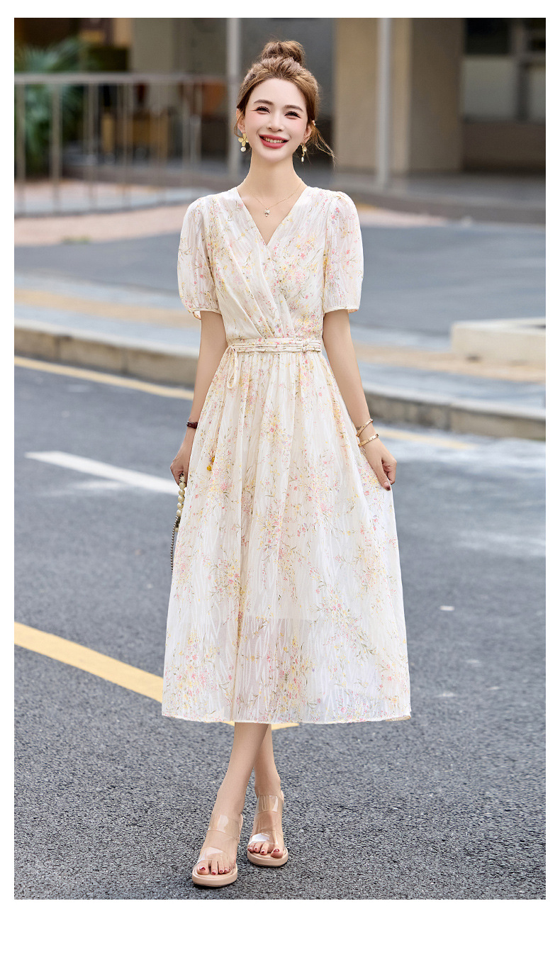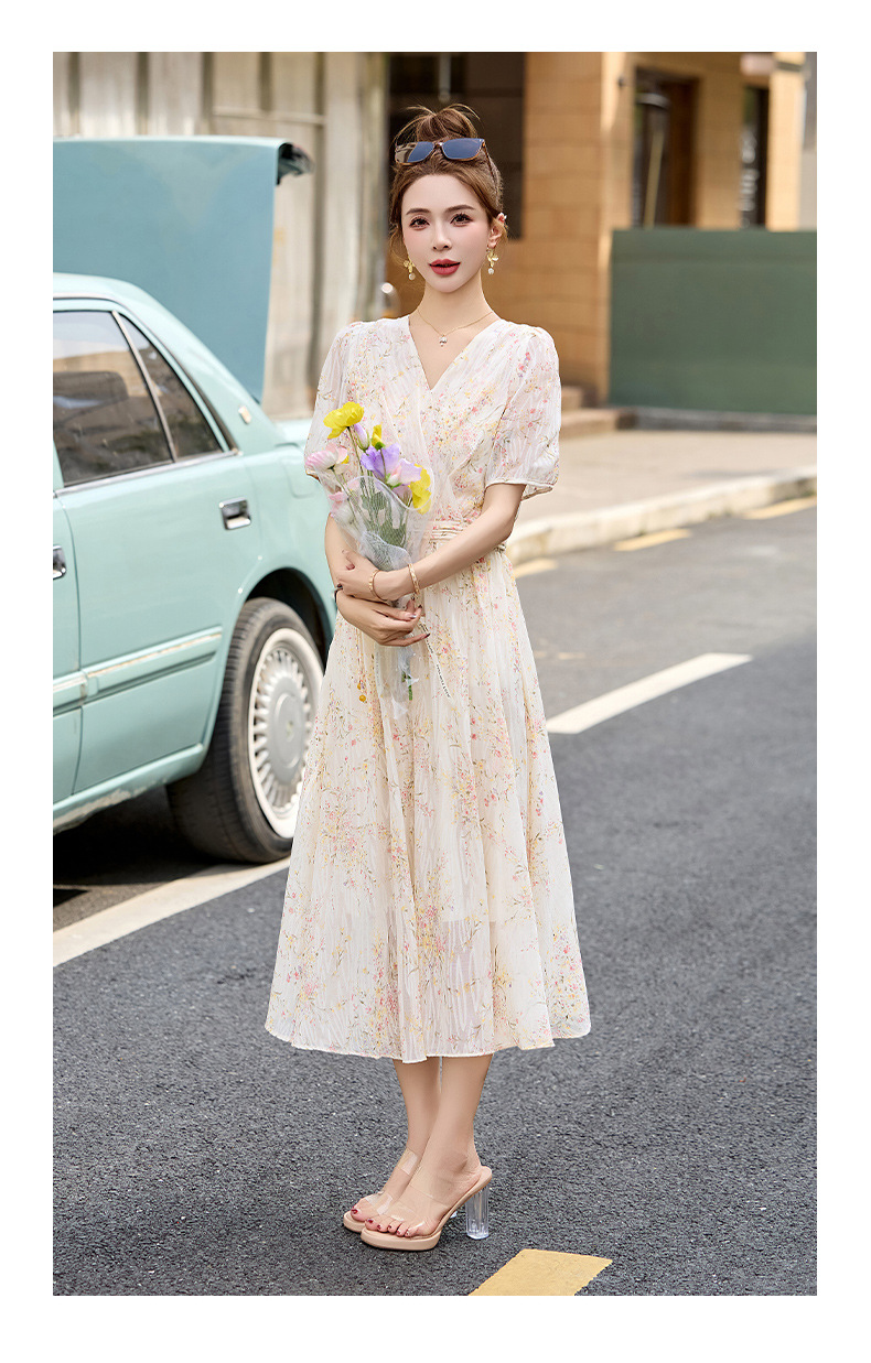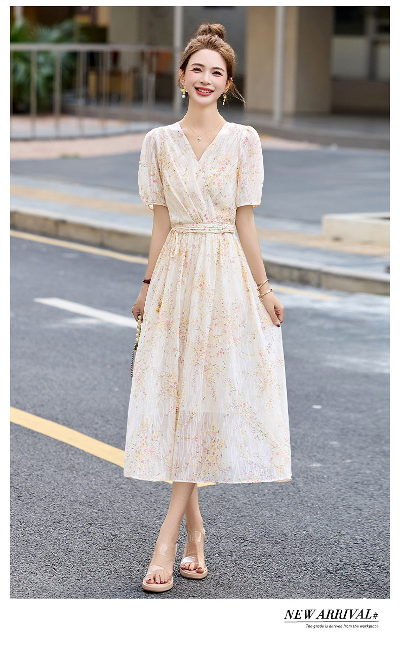时尚法式收腰显瘦,新中式国风复古碎花连衣裙LJX-385