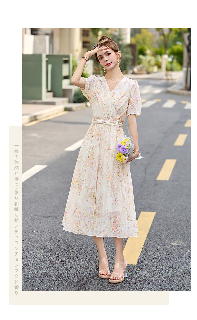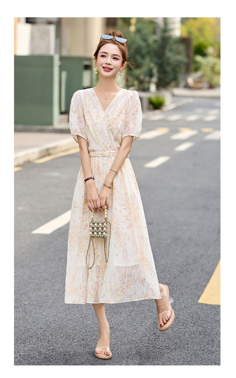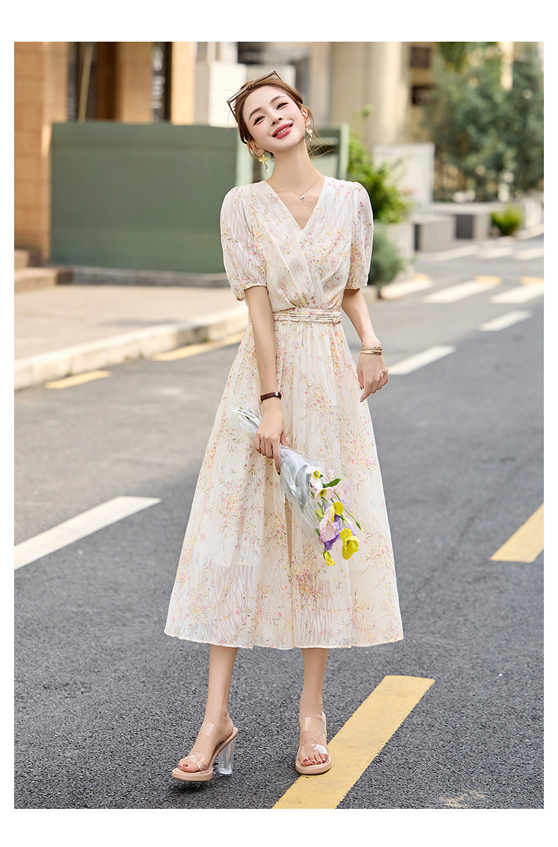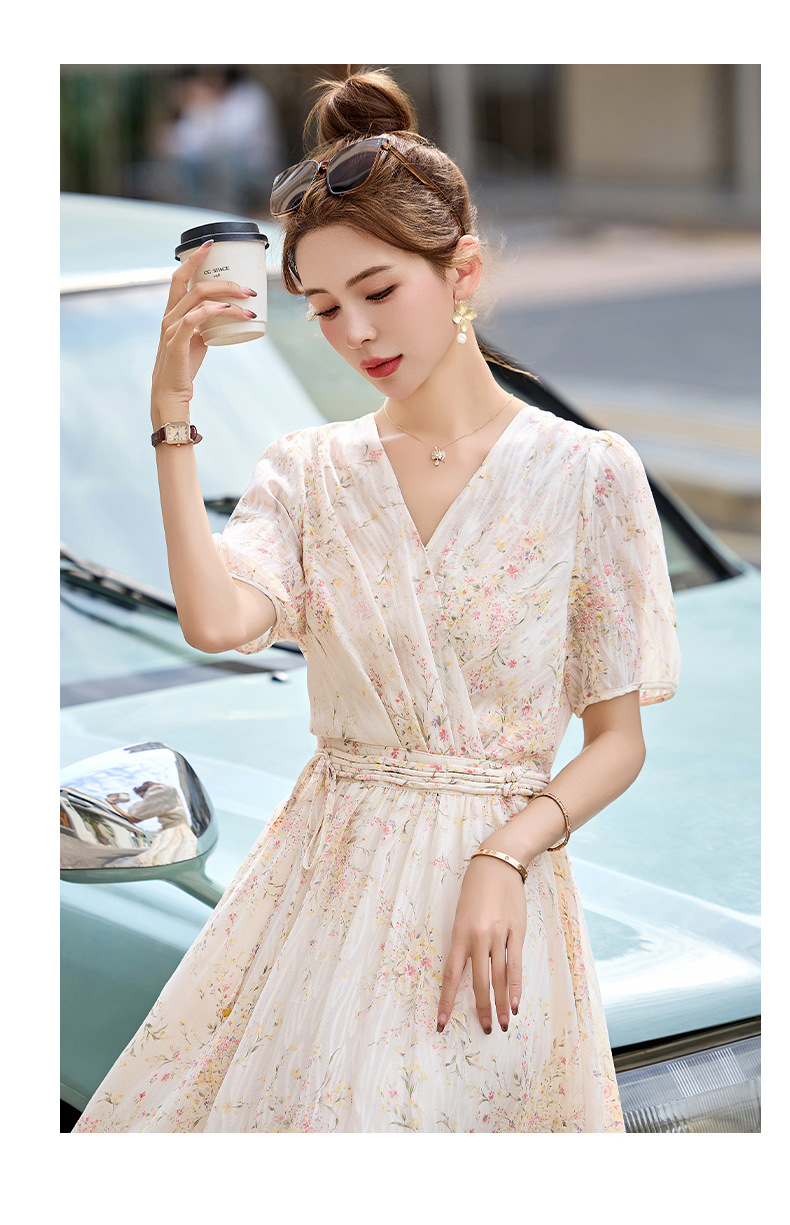 时尚法式收腰显瘦,新中式国风复古碎花连衣裙LJX-385