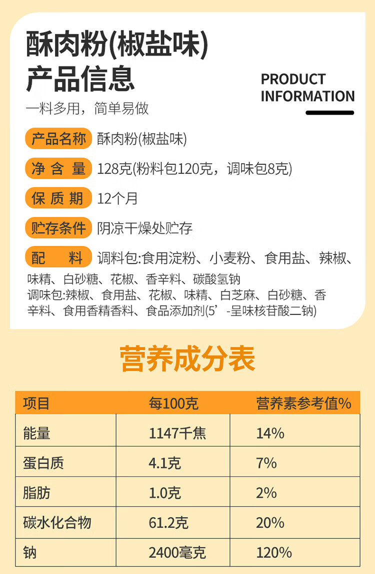 奥雅简厨 酥肉粉椒盐味128g/袋
