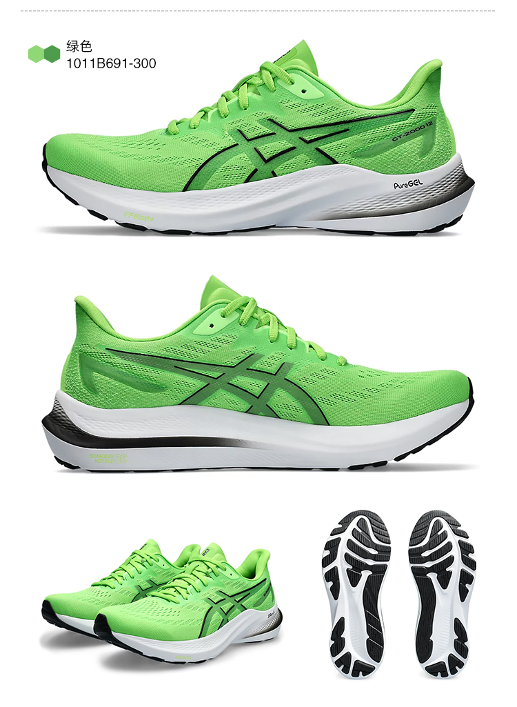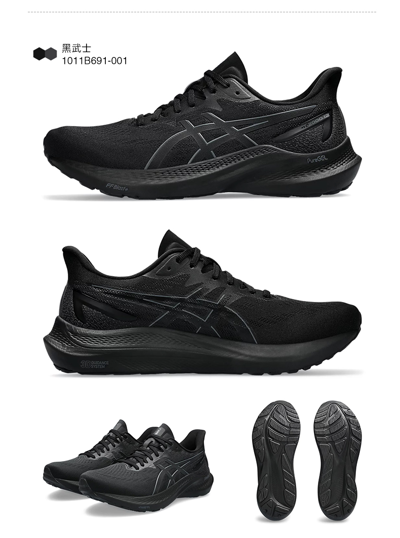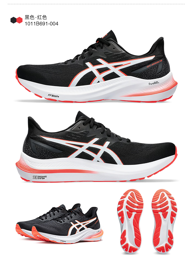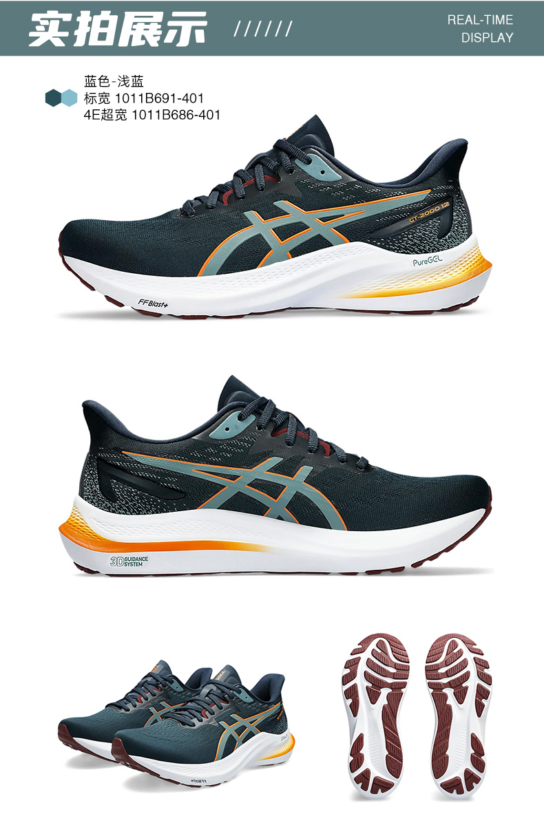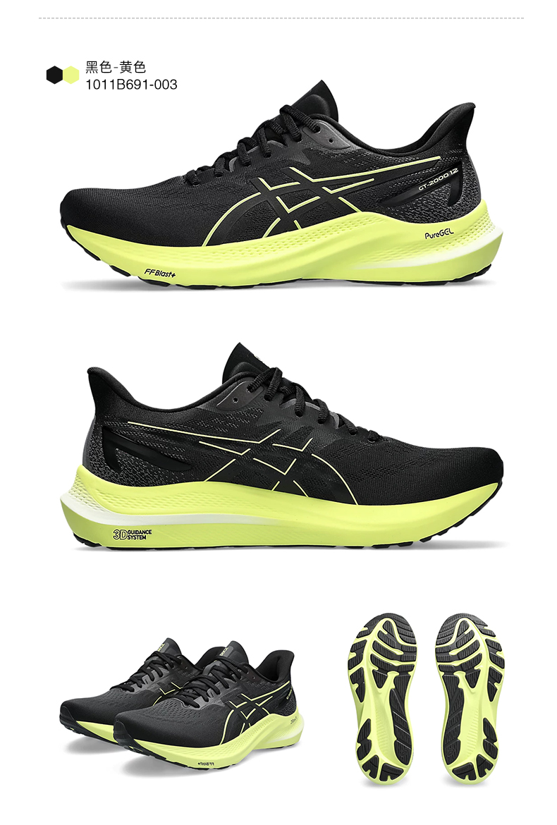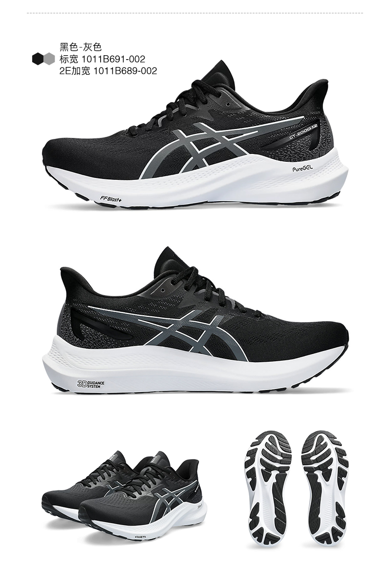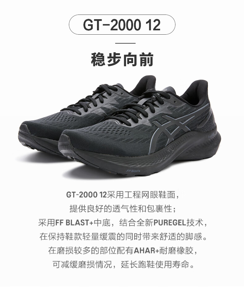 ASICS亚瑟士 GT2000 12男跑鞋黑武士轻量稳定支撑跑步鞋缓震运动鞋