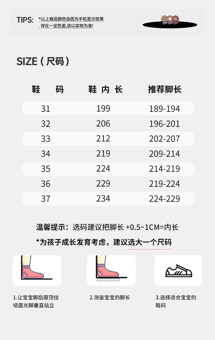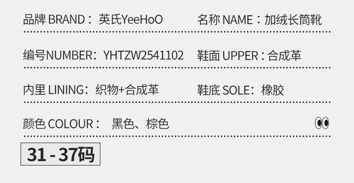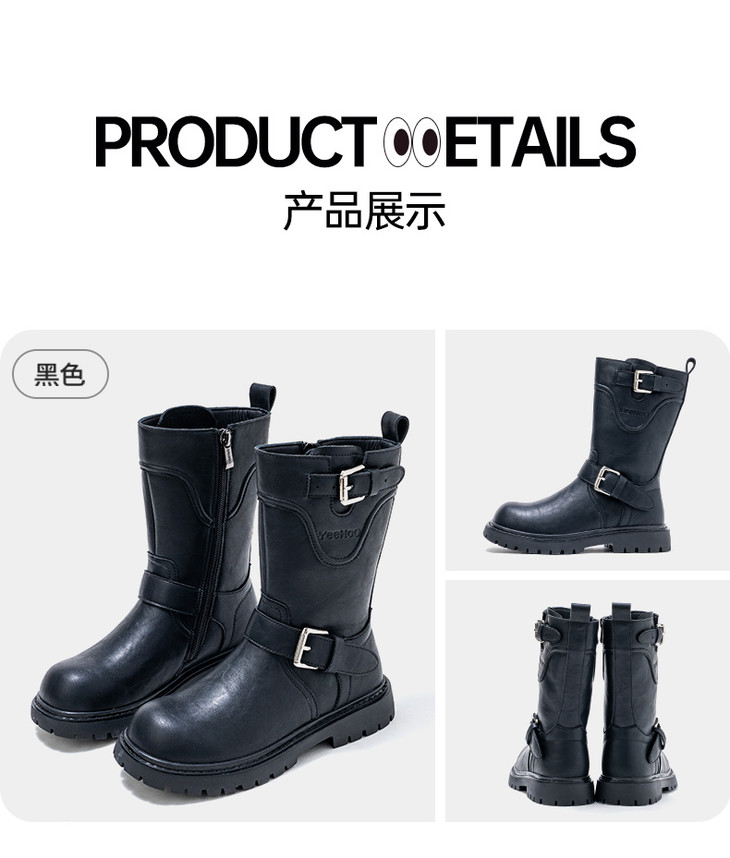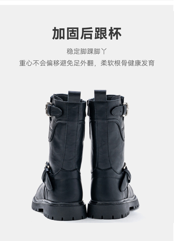 货号:YHTZW2541102 颜色:黑色、棕色 尺码:31-37 材质:鞋面 织物+合成革;鞋底 橡胶 皮质鞋面搭配潮酷外形,颜值真的很高,宝宝穿上超级有范~~ 高帮的设计不仅酷飒好看,还能保暖防风,真的集实用和美丽一体!! 鞋子里面有加绒超级保暖,脚丫伸进去,立马被温暖柔软包裹!! 侧面拉链设计,方便宝宝穿脱鞋子,不用为系鞋带而烦恼~ 鞋底采用高耐磨橡胶材质,搭配防滑纹设计,不仅耐穿,宝宝穿着跑跳也更加安全~~ 鞋头有加固设计,具有防撞耐踢的功能,能够保护宝宝娇嫩的脚趾!!
