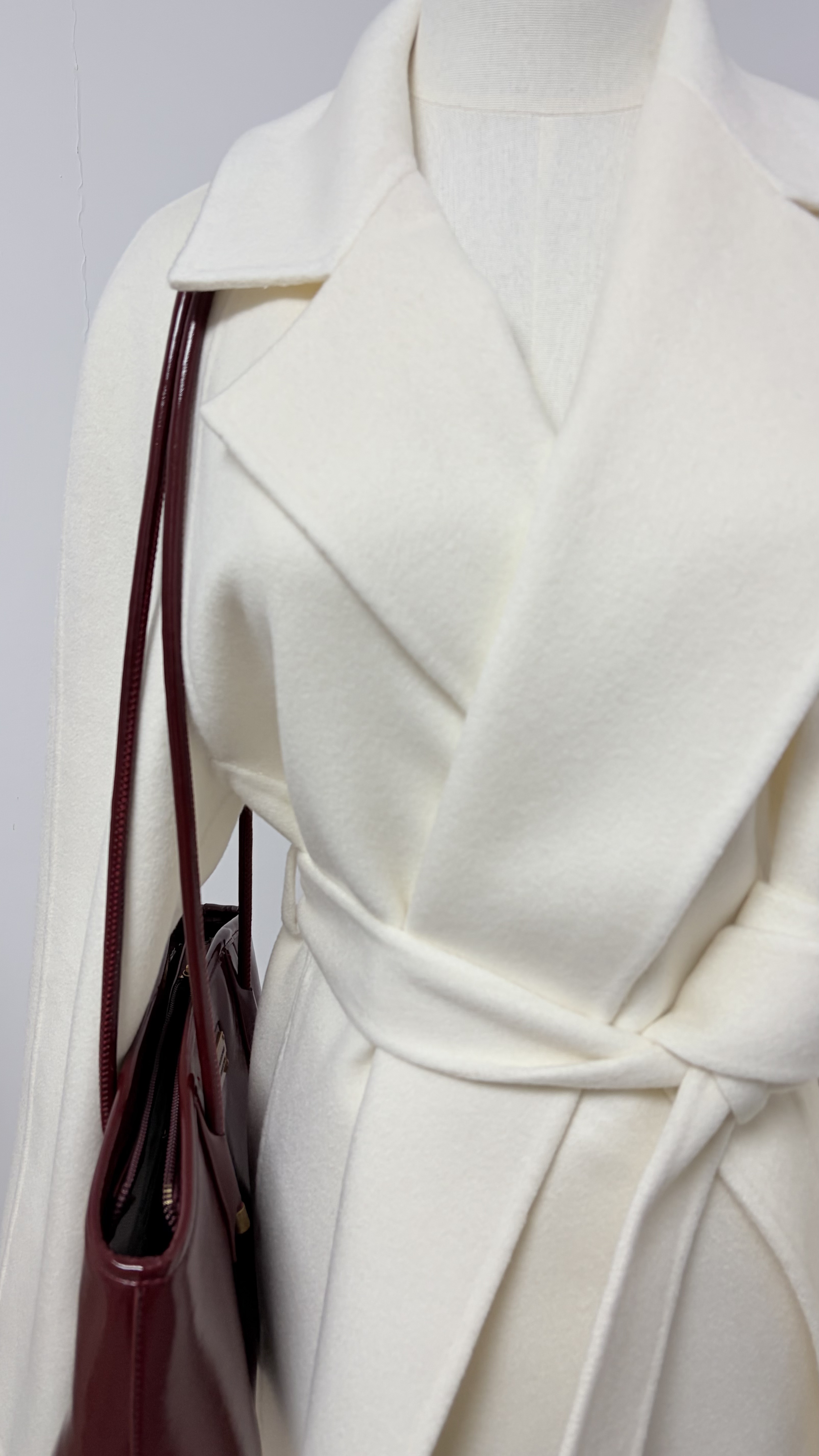 名称 :月光白 经典西装领浴袍式 羊绒大衣