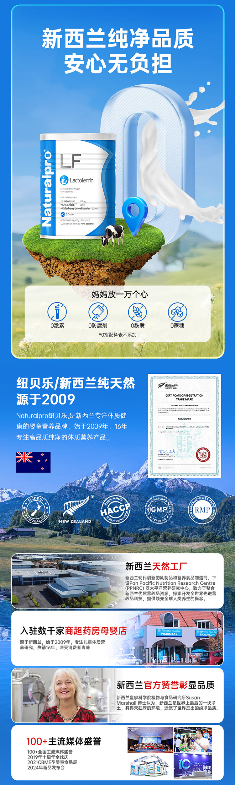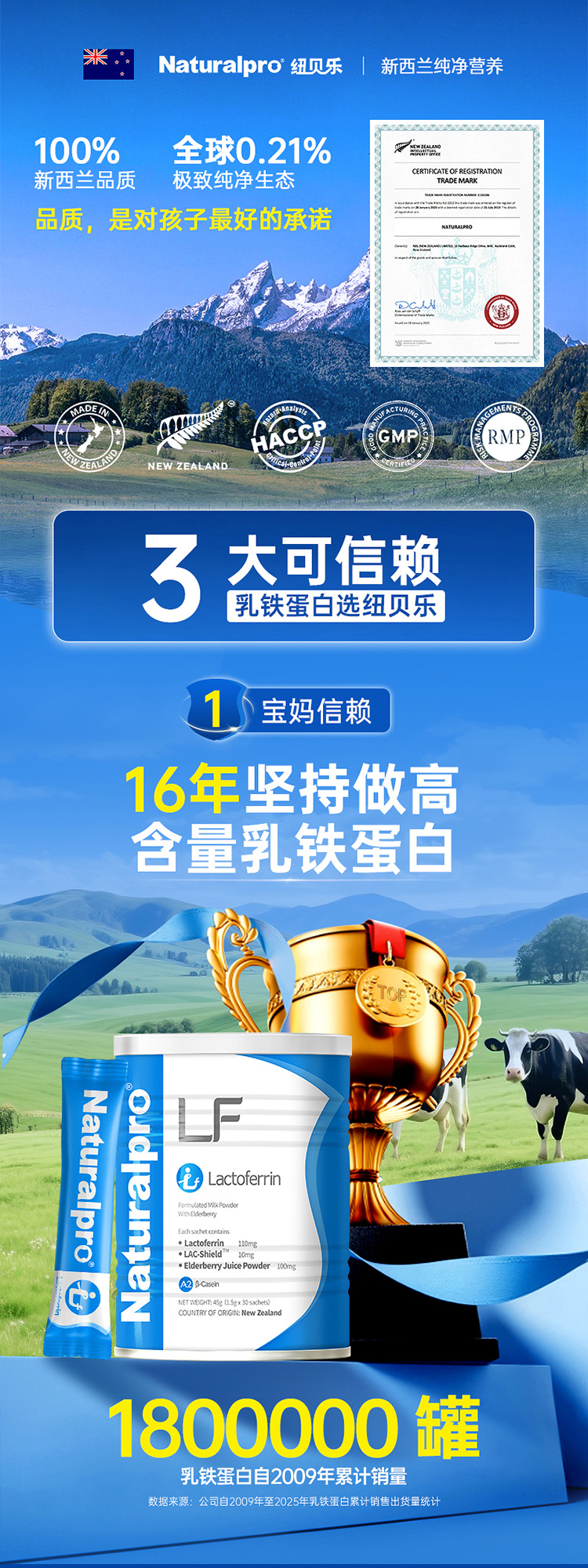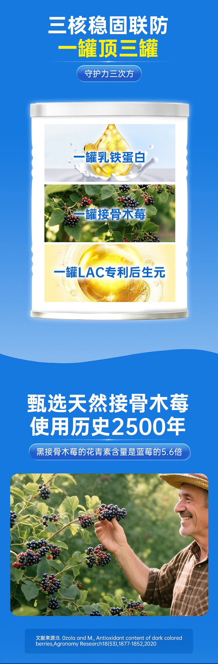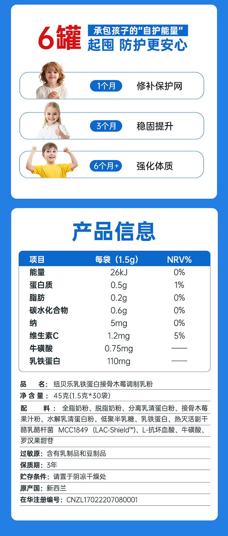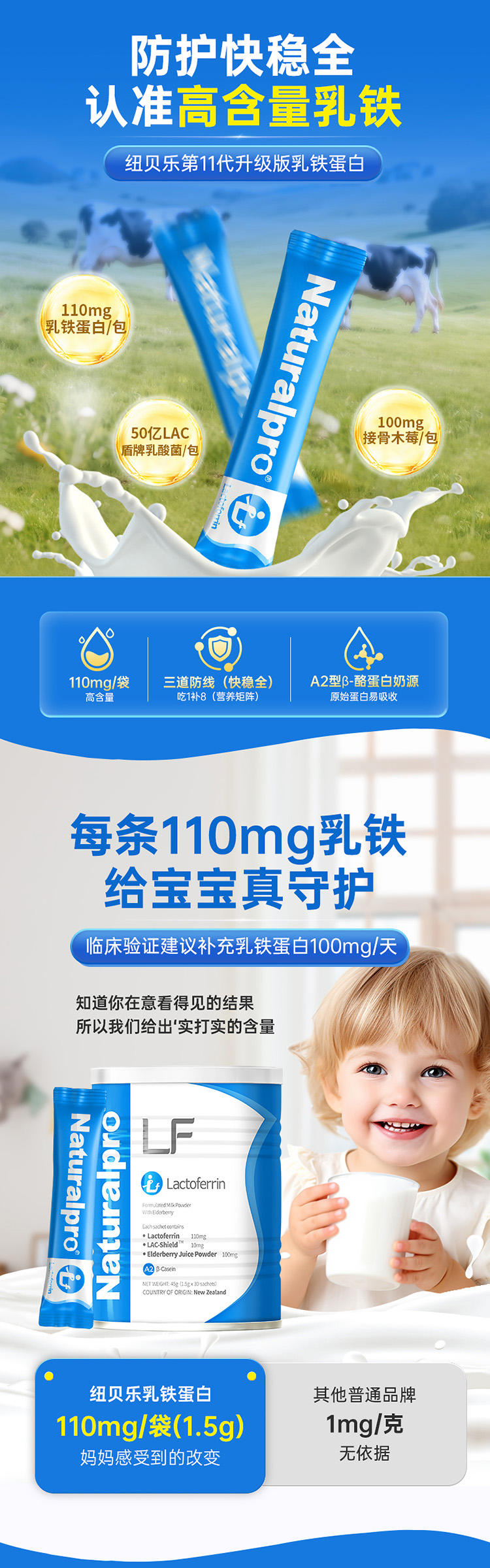 ⁵【蓝精灵乳铁蛋白】A2-β奶源 每包含乳铁蛋白110mg+ 水解乳清蛋白肽 50mg+接骨木莓100mg+后生元+益生元 1罐30小包 YY05-QTT-NBL