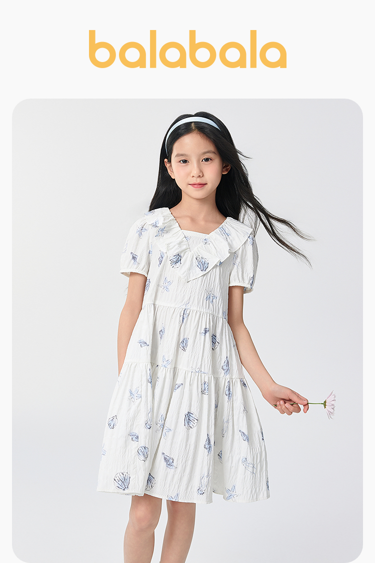 巴拉巴拉女童裙子儿童连衣裙2025新款夏泡泡袖公主裙