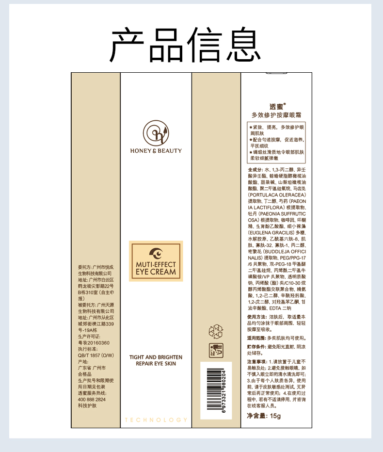 【蜜家特惠】 [下单立减40元]透蜜 多效莹润按摩眼霜15g 淡化细纹缓解干涩改善眼袋