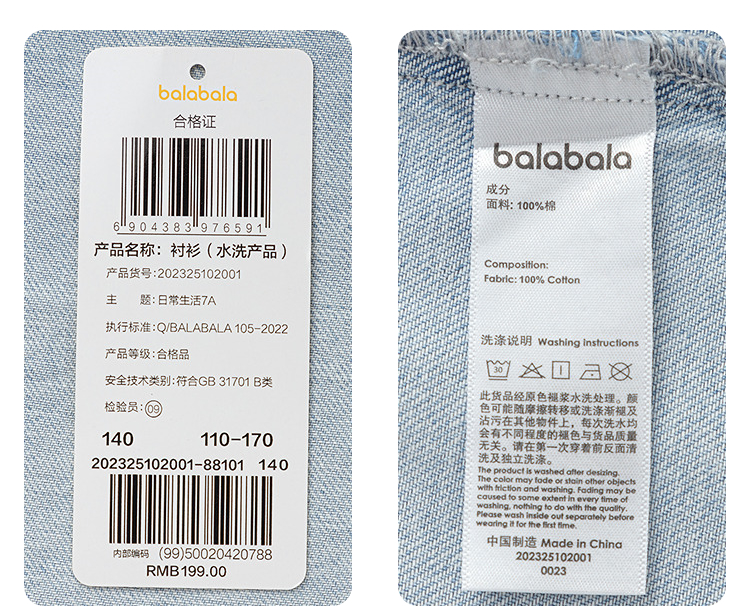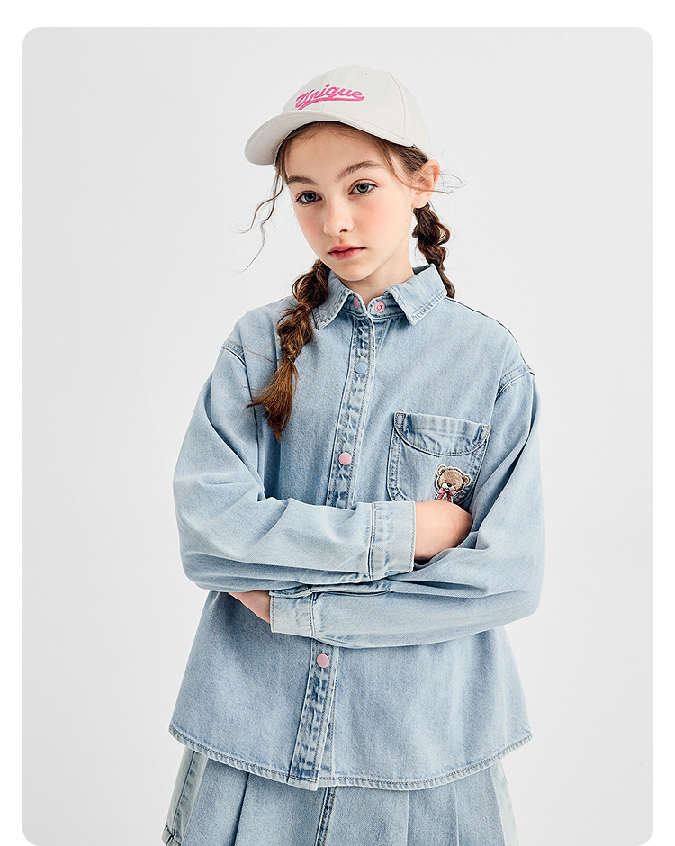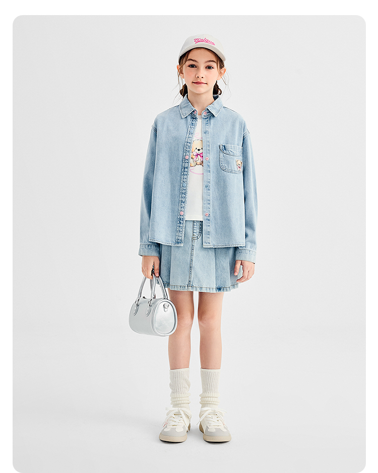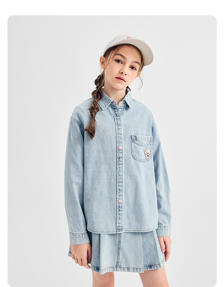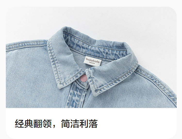 【商场同款】巴拉巴拉女童衬衫儿童长袖2025新款秋全棉牛仔衫舒适