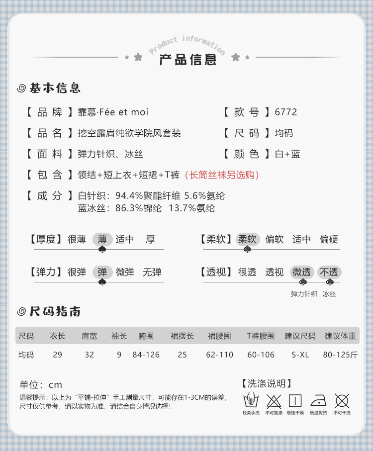 霏慕 挖空露肩纯欲学院风套装6772 角色扮演短裙性感情趣内衣夫妻刺激制服激情性感睡衣浴睡袍