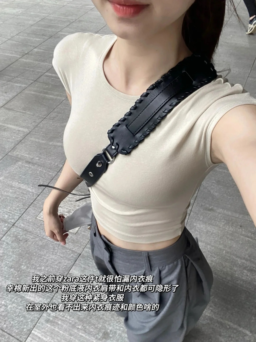 对内衣👙要求也变高了,很多上衣面料都比较薄, 在追求简约风的路上,像后背勒肉、尴尬的内衣印、 胸部垂到肚脐眼等影响穿搭质感的情况一定不能有! 幸棉真是很懂我们女生,新出的这款「幸棉 粉底液内⾐」 特调原⽣肤色的内⾐,穿上隐形看不⻅。搭配紧身白T, 站在阳光下☀️都看不见内衣印子, 感觉就和自己皮肤的颜色似的,真的牛!
