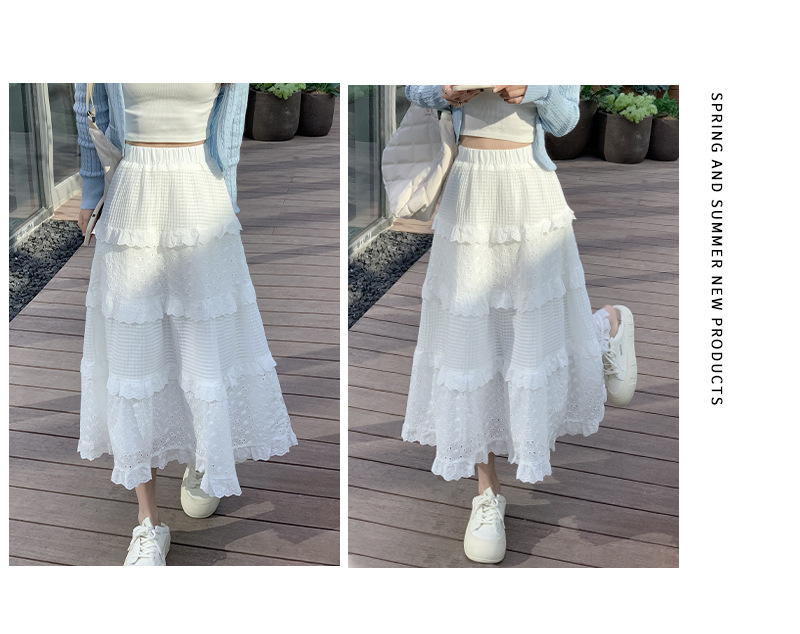 【法式蛋糕蕾丝裙】气质白色蕾丝花边半身裙 高腰A字中长款温柔风垂感蓬松半裙