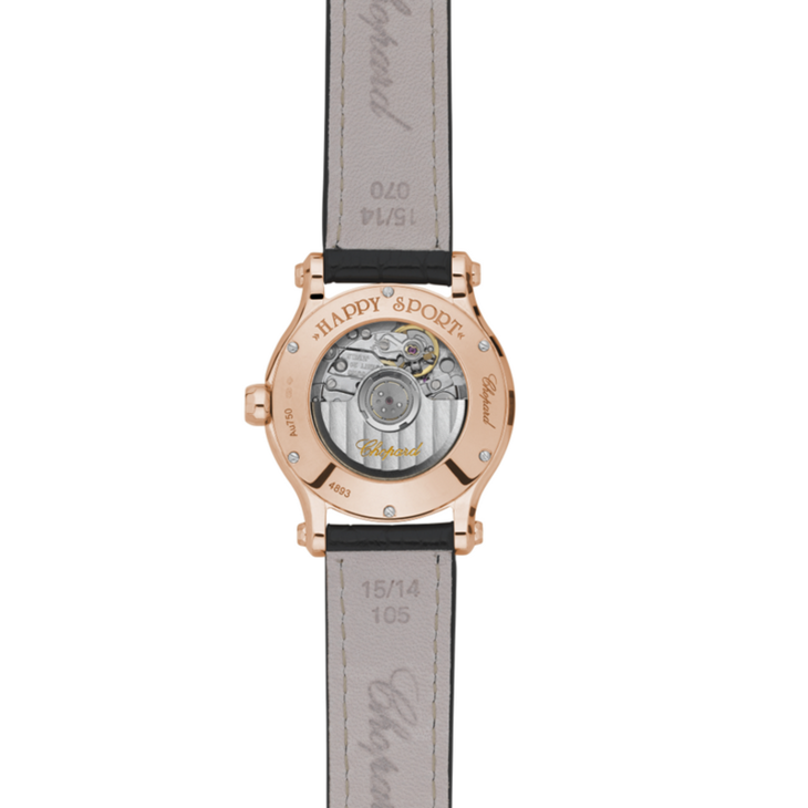 镜面材质 | 蓝宝石水晶玻璃 | 表盘 | 18K玫瑰金镶钻表壳 表圈镶嵌38颗钻石,总重1.12克拉 银色与玑镂饰纹中心表盘 罗马文及条形时标,5钻,钻石0.14克拉 18K玫瑰金表冠,镶嵌一颗蓝宝石(0.09克拉) 透底 |