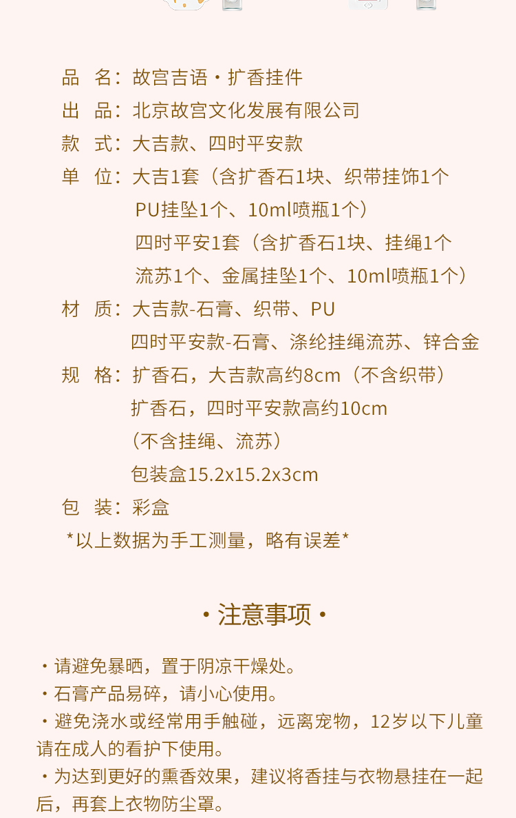 【故宫挂件】吉语香挂衣柜车载香薰扩香石生日礼物博物馆文创伴手礼