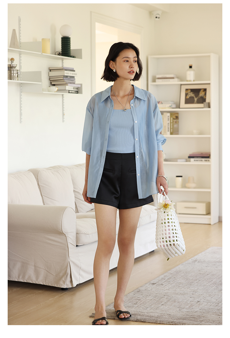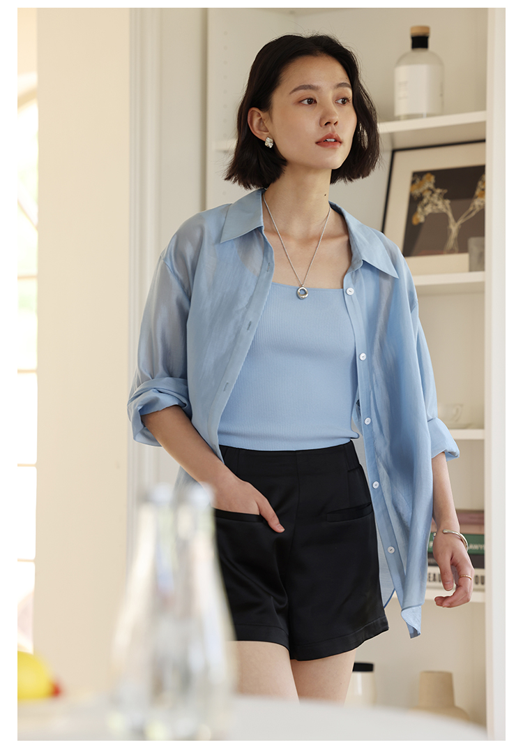 (合作款)天丝U领正肩宽松T恤yc0309026