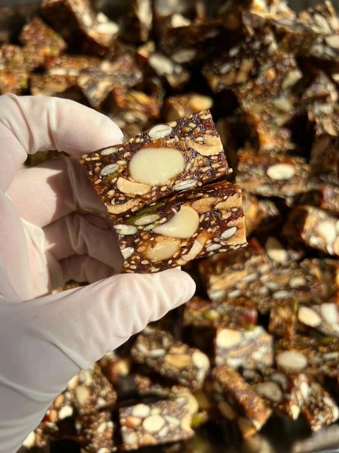 「食材」云南小黄姜,古法红糖,蔓越莓,巴旦木,夏威夷果,核桃,开心果,芝麻,南瓜籽,新西兰黄油,麦芽糖。
