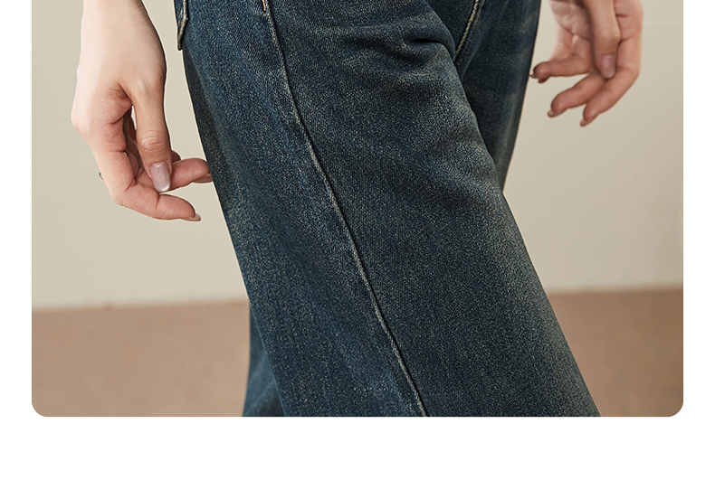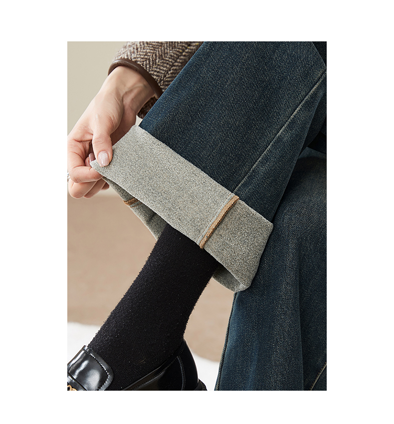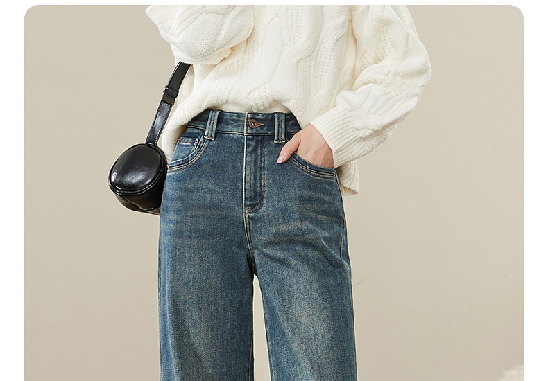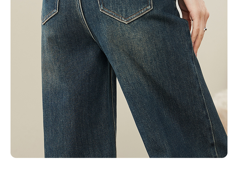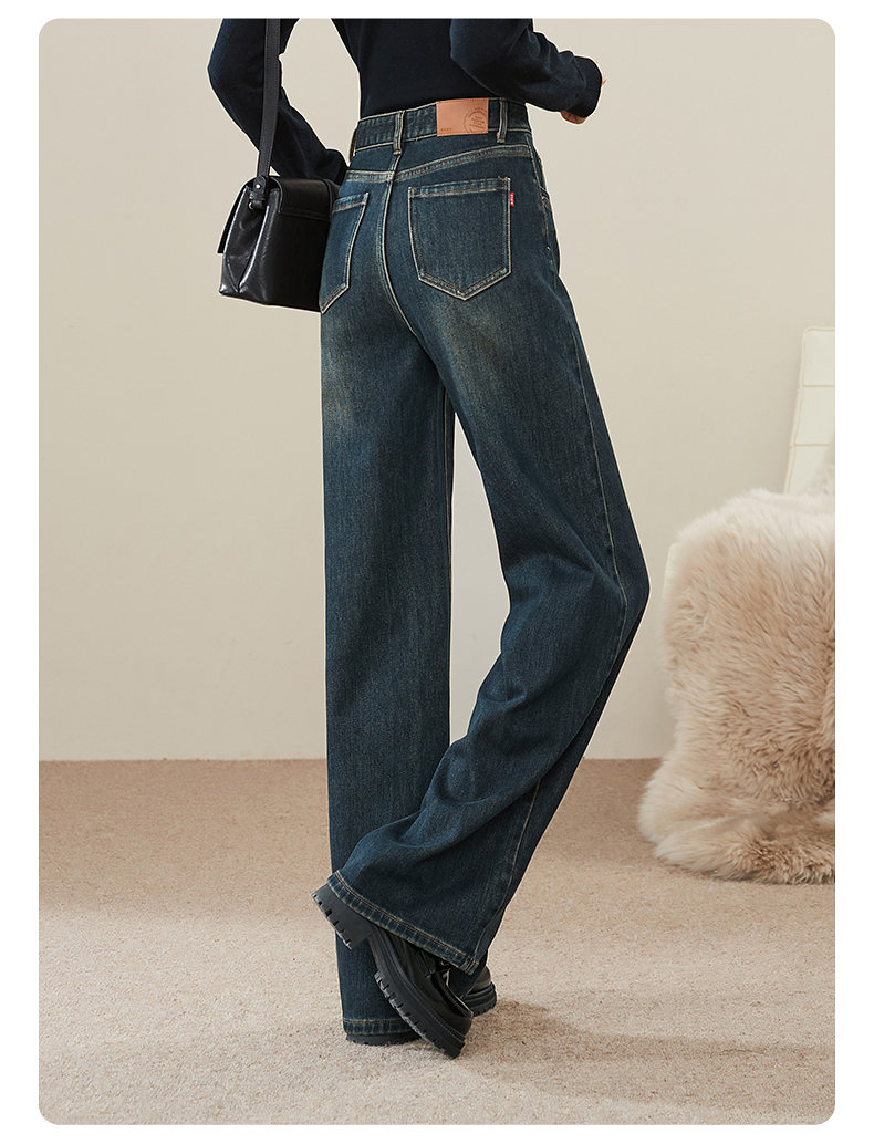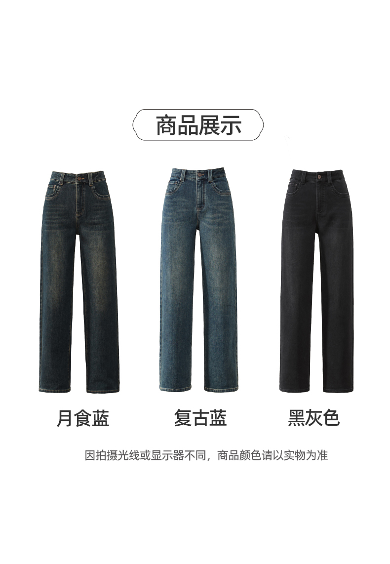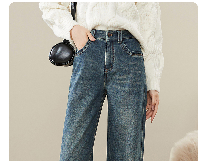 【拉绒-阔腿牛仔】逸阳秋冬复古加绒保暖宽松显瘦、阔腿牛仔裤1722