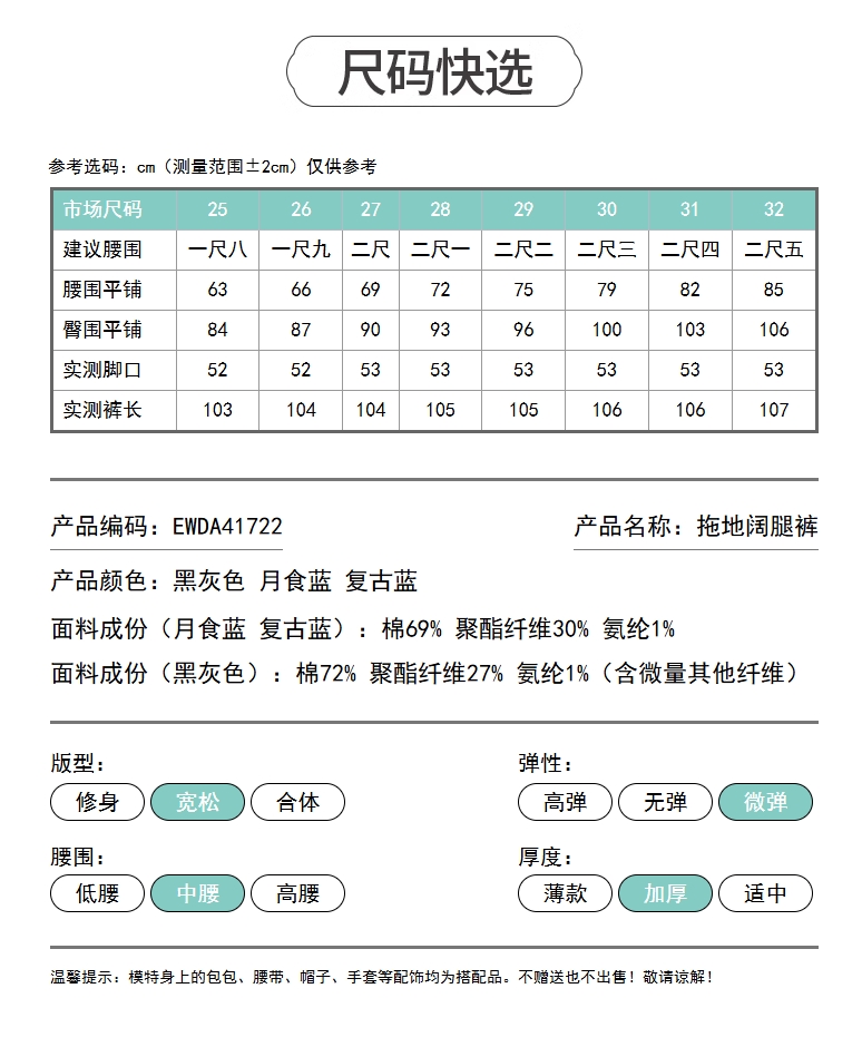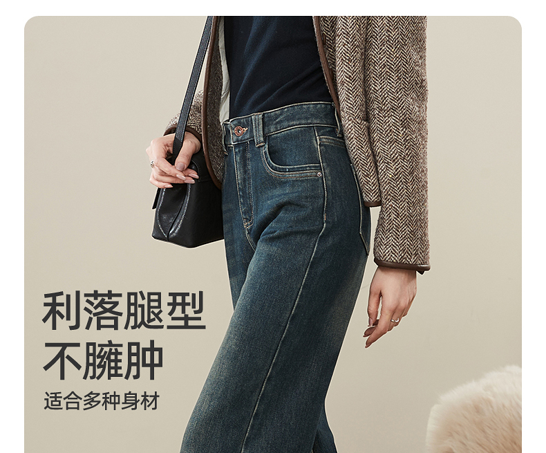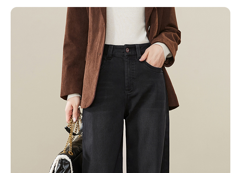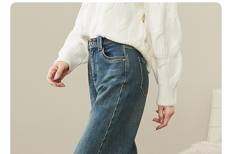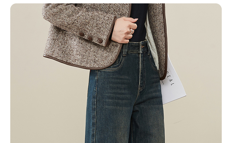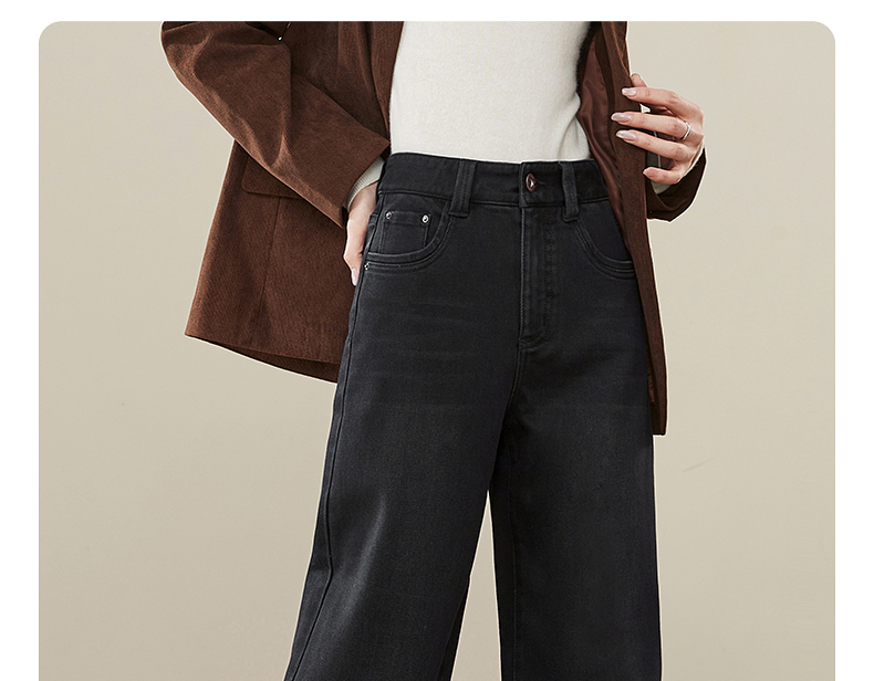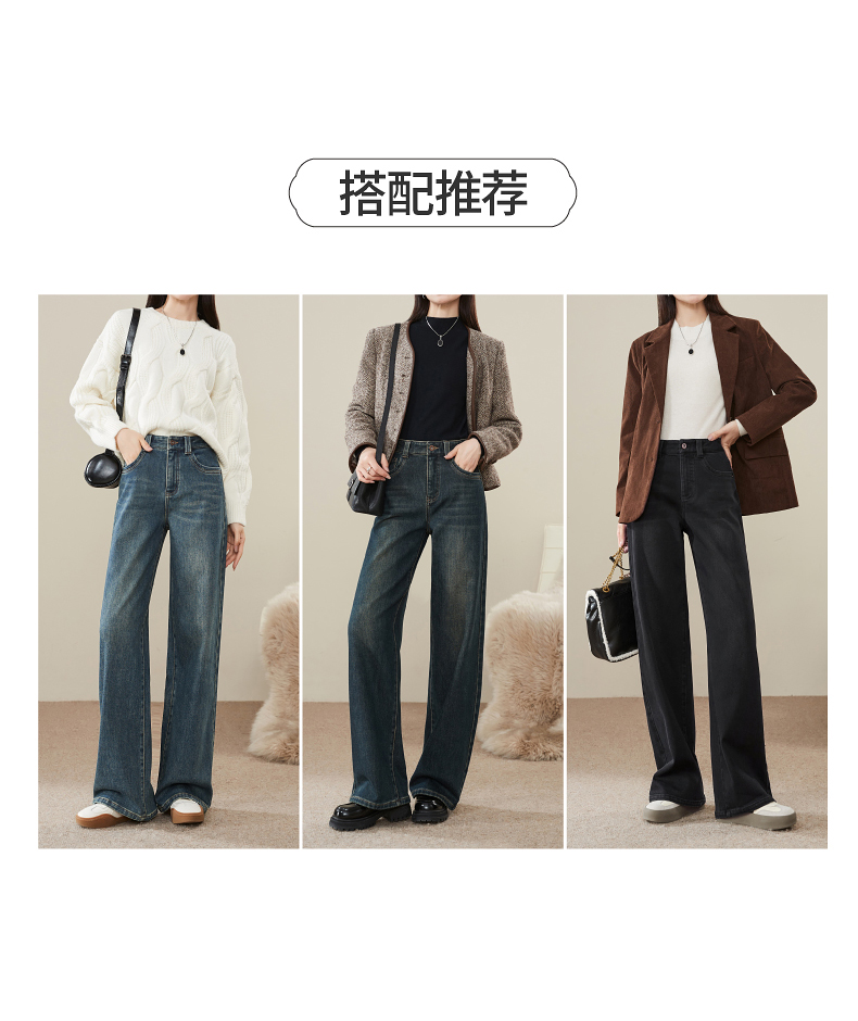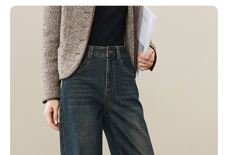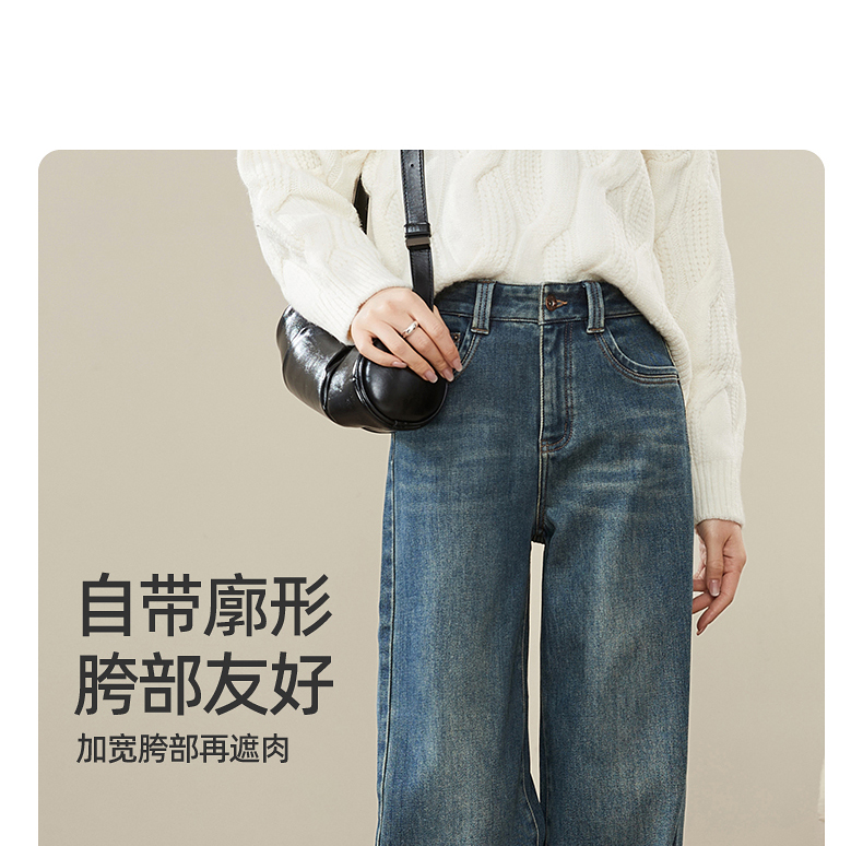 【拉绒-阔腿牛仔】逸阳秋冬复古加绒保暖宽松显瘦、阔腿牛仔裤1722