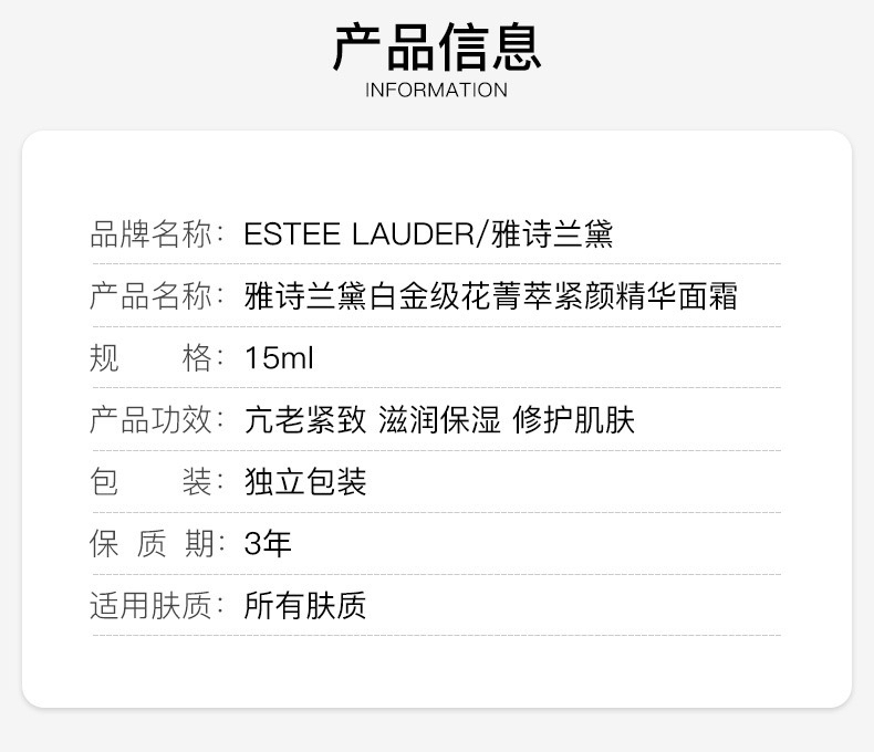 【专柜小样】美国 Estee Lauder雅诗兰黛 白金面霜 15ml