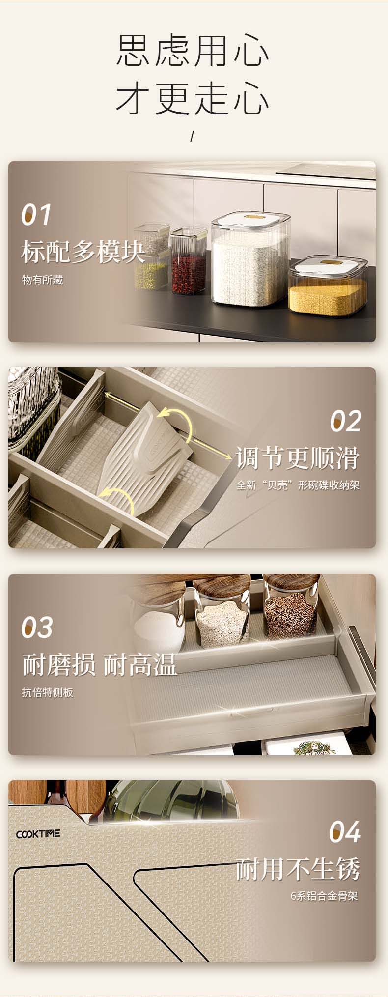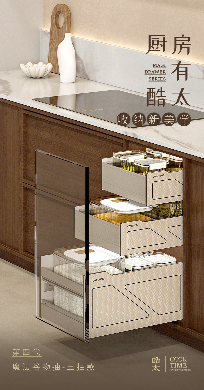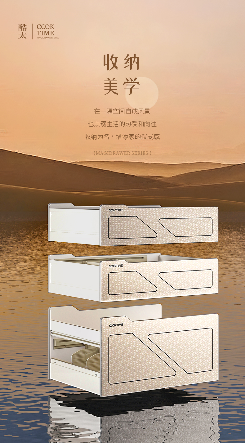 - 酷太坚持8年自主研发,已获得专利证书130项,拥有一套领先市场的厨房收纳系统,为千万中国家庭解决厨房脏乱差,缔造厨房新生活。
